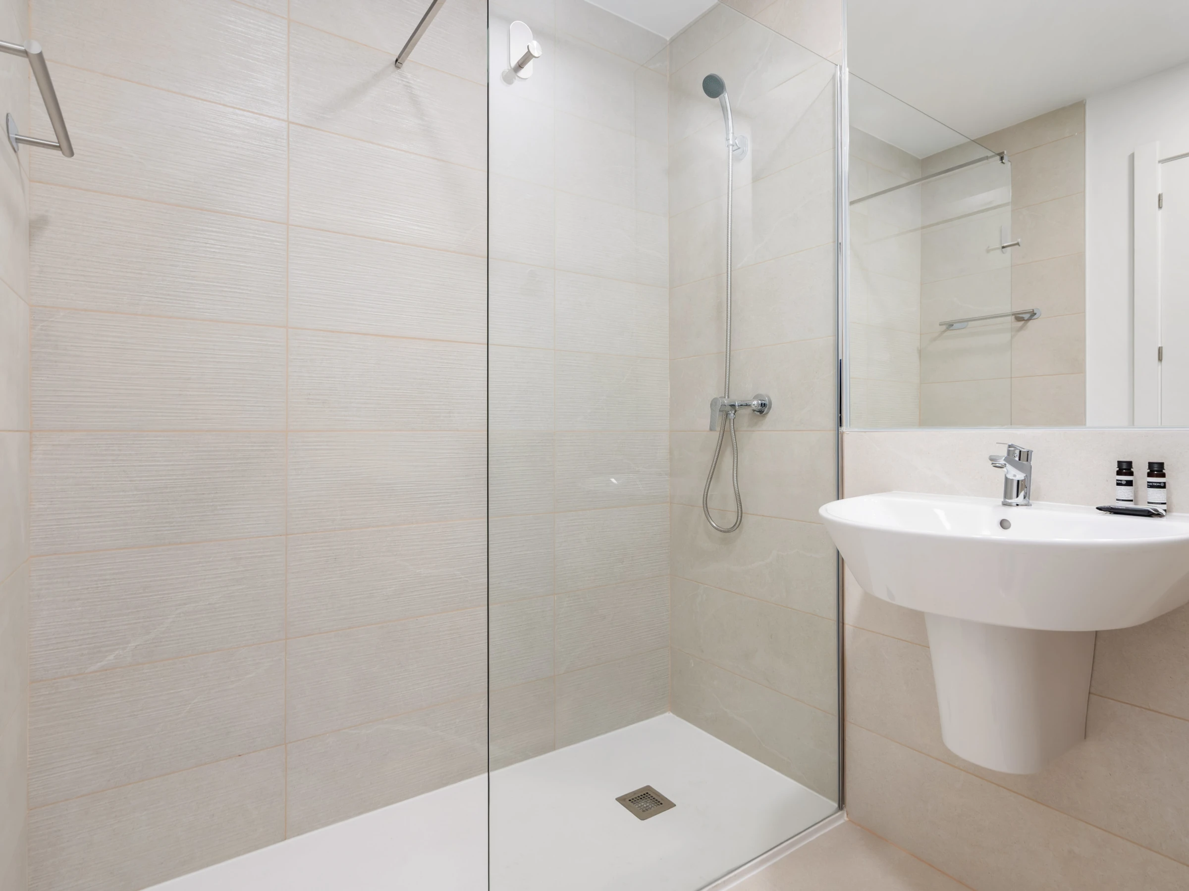 Die Wohnung verfügt über zwei Schlafzimmer, eines davon mit einem Doppelbett und das andere mit einem Schlafsofa, sodass bis zu 6 Personen mit vollem Komfort untergebracht werden können. Es gibt ein vollständiges Badezimmer mit Dusche, ideal zum Ausruhen nach einem arbeitsreichen oder touristischen Tag.
