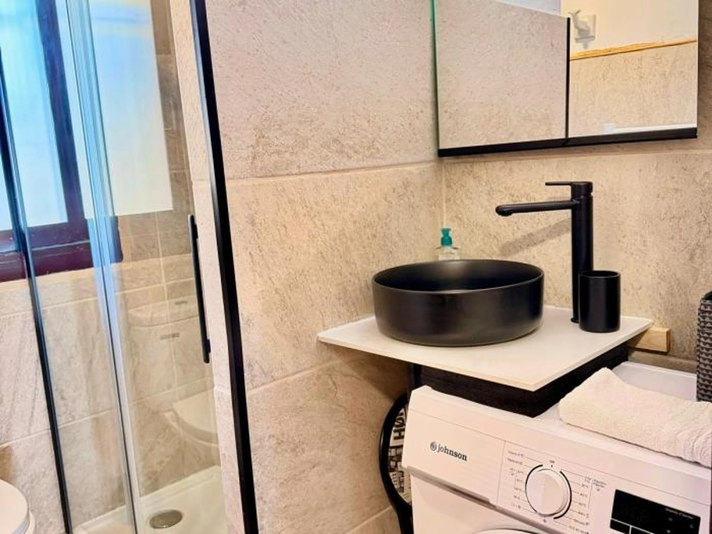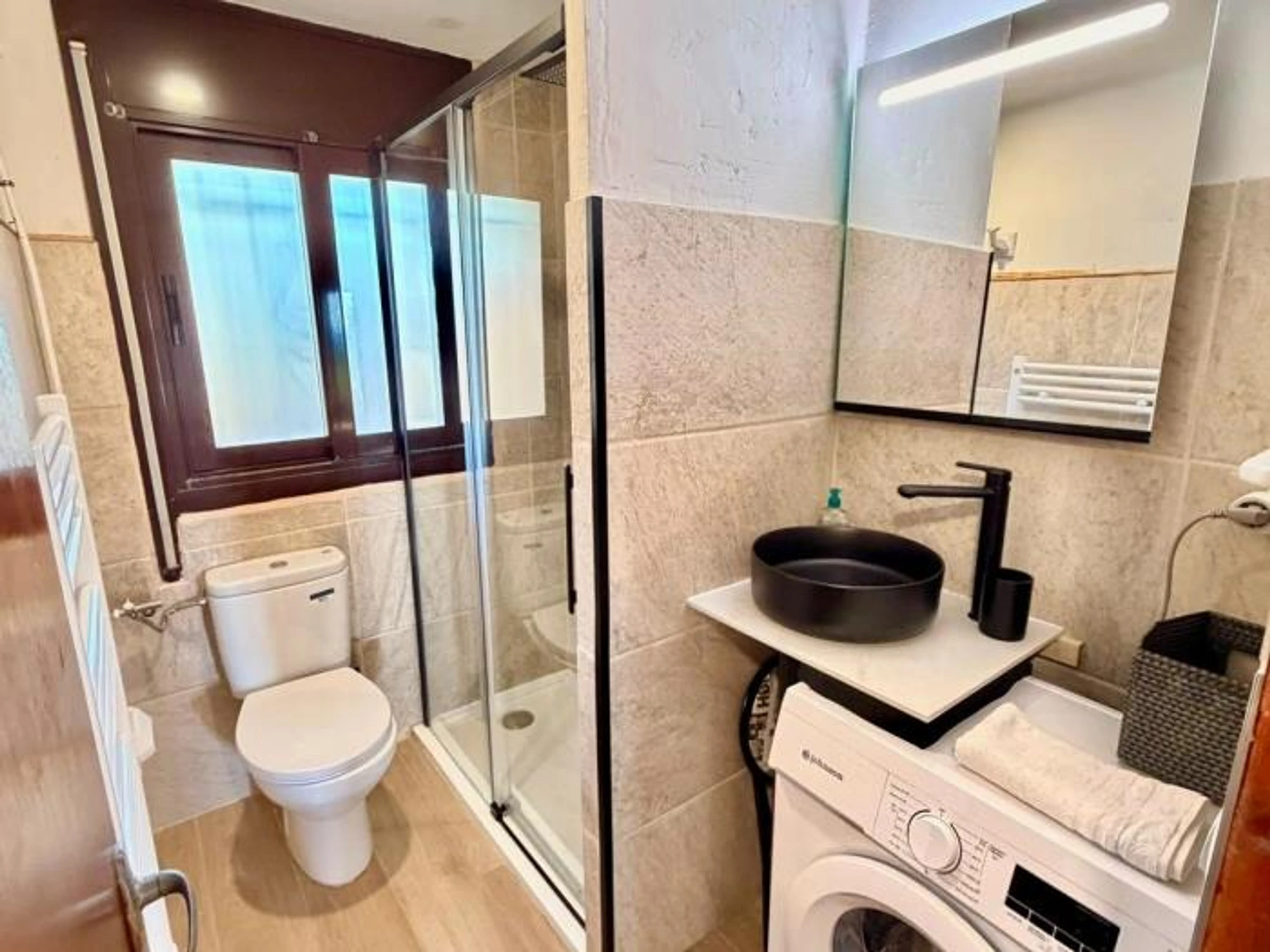 Das Badezimmer wurde kürzlich renoviert und verfügt über eine moderne Dusche, hochwertige Ausstattung sowie eine Waschmaschine für zusätzlichen Komfort.