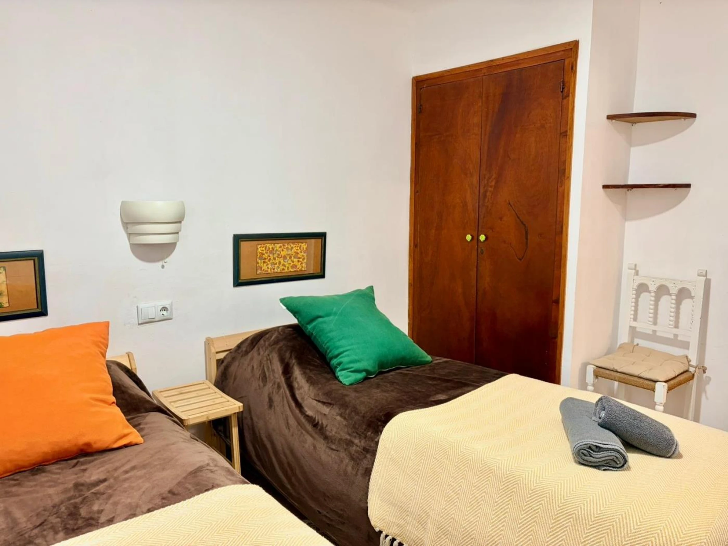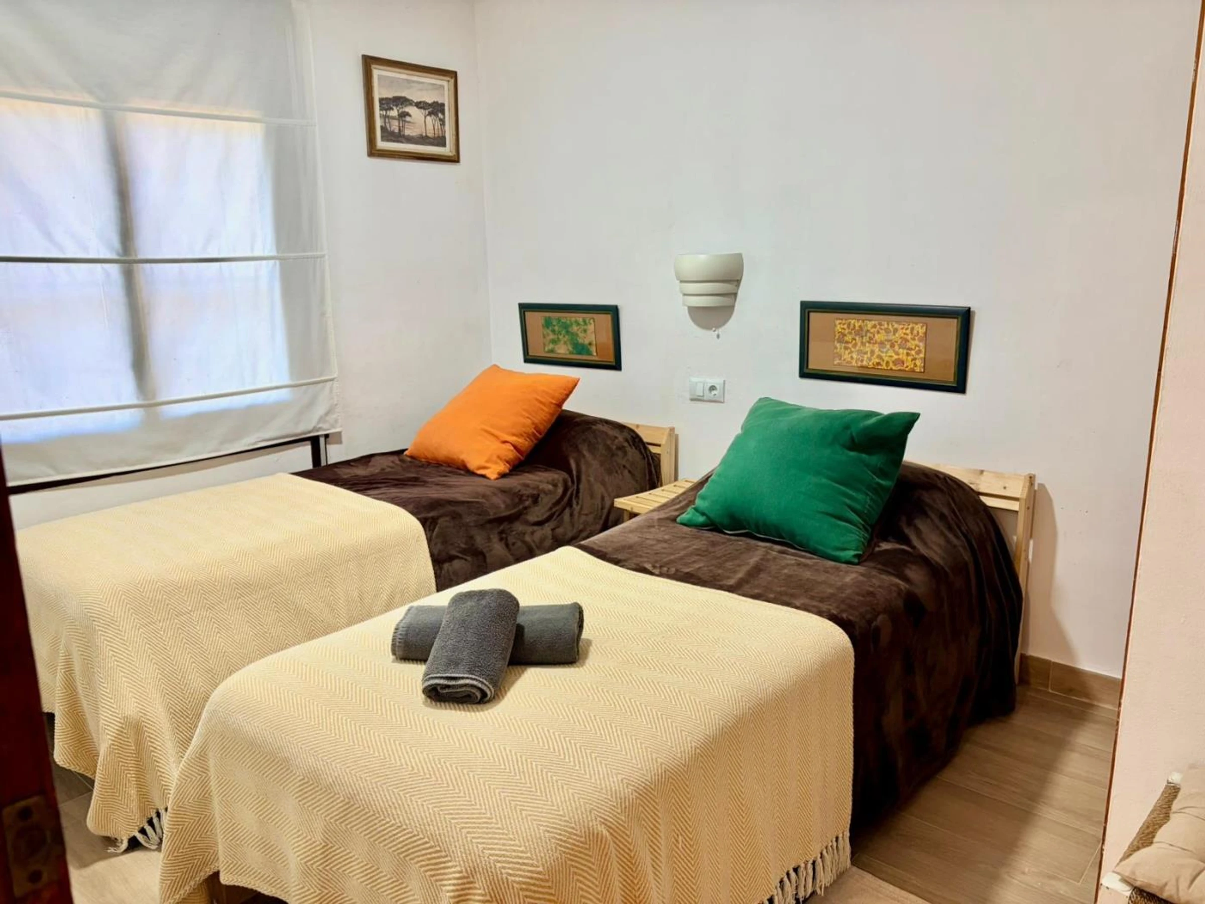 Das Apartment bietet Platz für bis zu 4 Personen und verfügt über zwei Schlafzimmer: ein Hauptschlafzimmer mit Doppelbett und ein weiteres mit zwei Einzelbetten, beide komfortabel und gut belüftet. Der Wohnbereich ist im warmen, funktionalen mediterranen Stil eingerichtet und verfügt über Sofa, Fernseher und Essbereich.