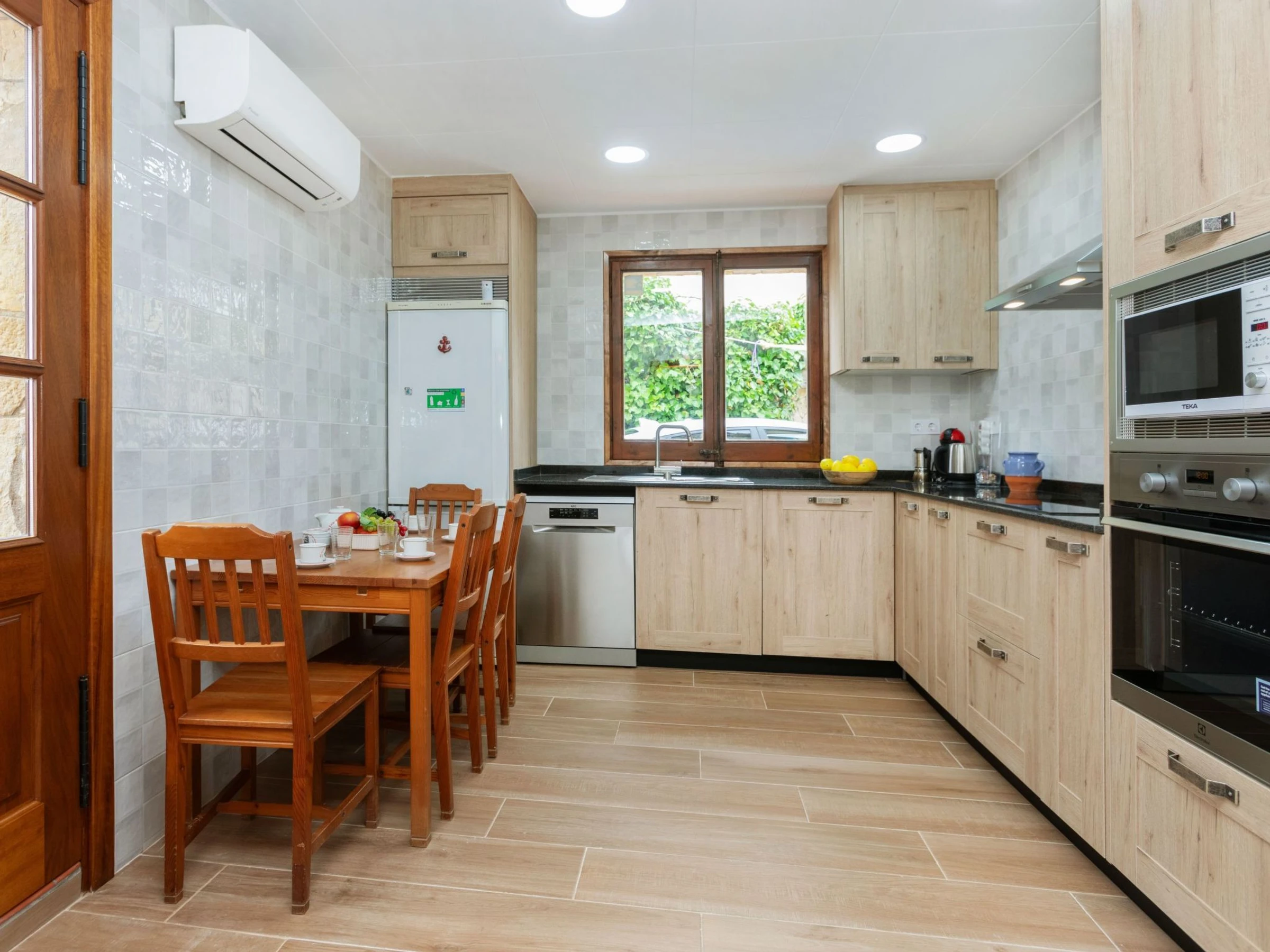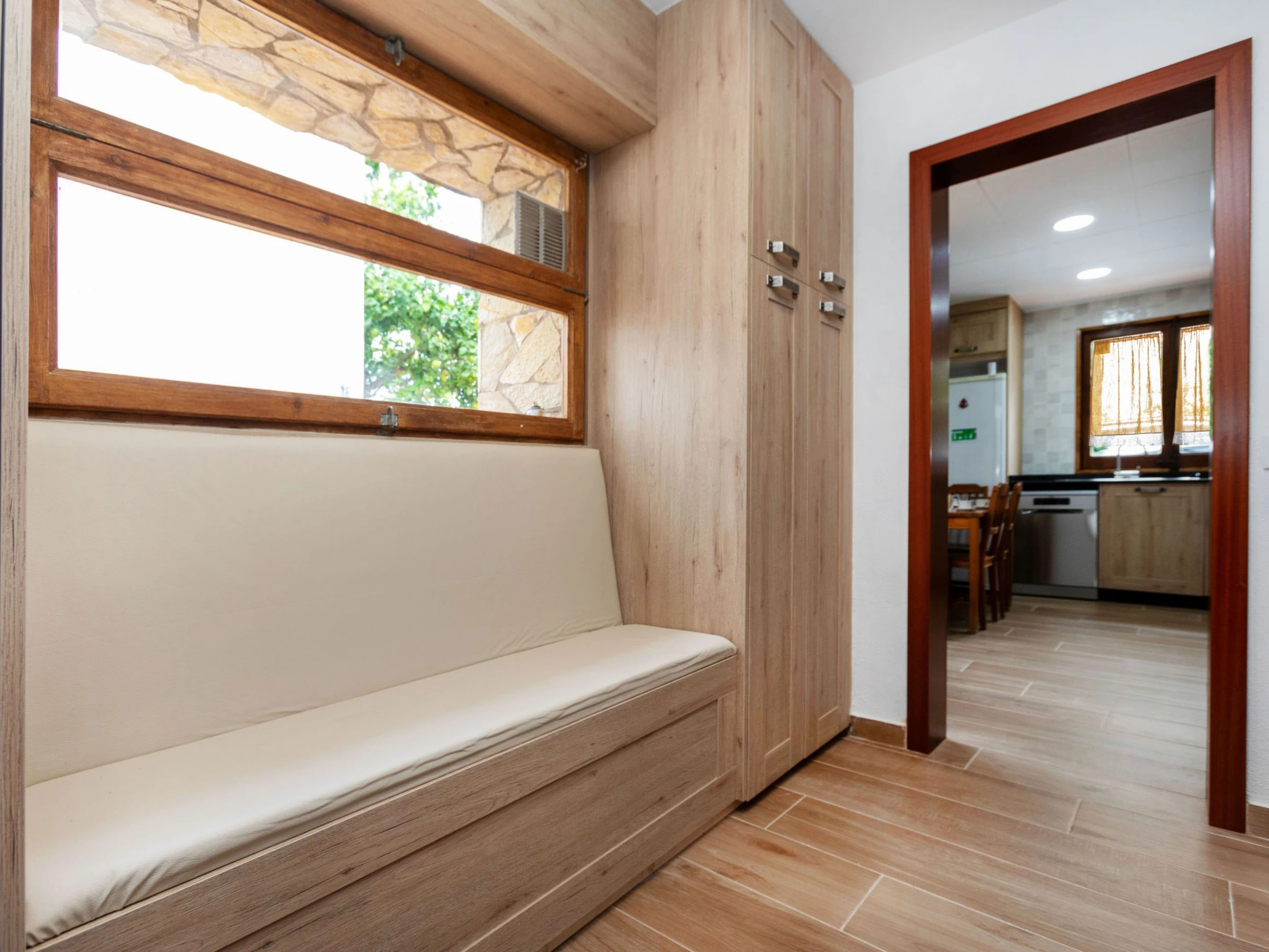 "El Raco", 4-Zimmer-Haus 90 m2, im ebenerdigen Untergeschoss. Zweckmässig eingerichtet: Wohn-/Esszimmer mit Digital-TV und Klimaanlage. 1 Zimmer mit 1 franz. Bett (135 cm, Länge 190 cm), TV. 1 Zimmer mit 2 Betten (90 cm, Länge 190 cm). 1 Zimmer mit 2 Betten (90 cm, Länge 190 cm). Küche (Backofen, Geschirrspüler, 3 Induktionskochplatten, Toaster, Wasserkocher, Mikrowelle, Tiefkühler, elektrische Kaffeemaschine) mit Klimaanlage. 2 Duschen/WC. Grosse Terrasse, Gartensitzplatz. Terrassenmöbel, Gartengrill. Zur Verfügung: Waschmaschine, Bügeleisen, Kinderhochstuhl, Babybett, Haartrockner. Internet (WLAN, gratis). Bitte beachten: geeignet für Familien. TV nur ES. [hidden] ESFCTU[hidden][hidden]00000000[hidden]-683