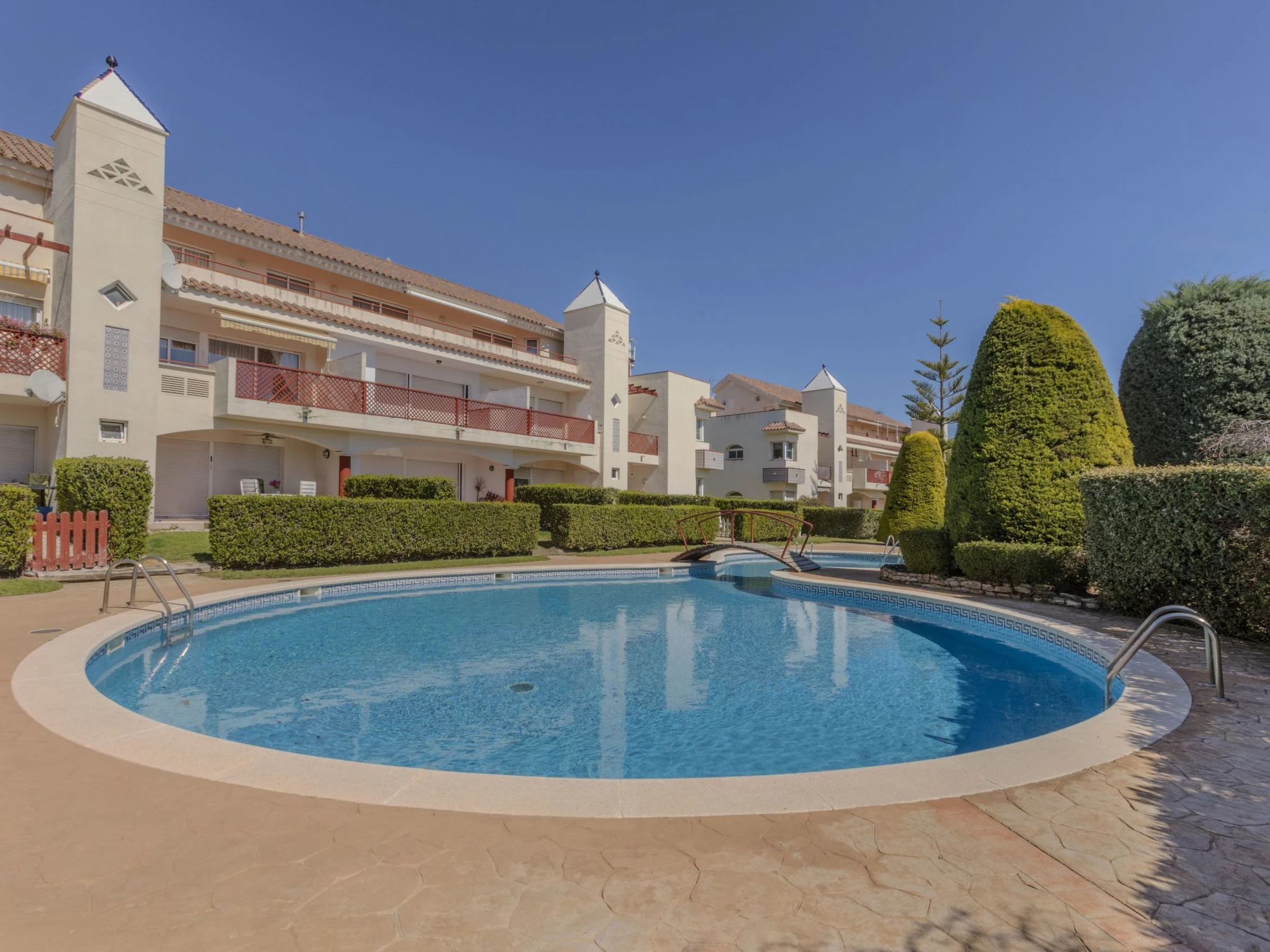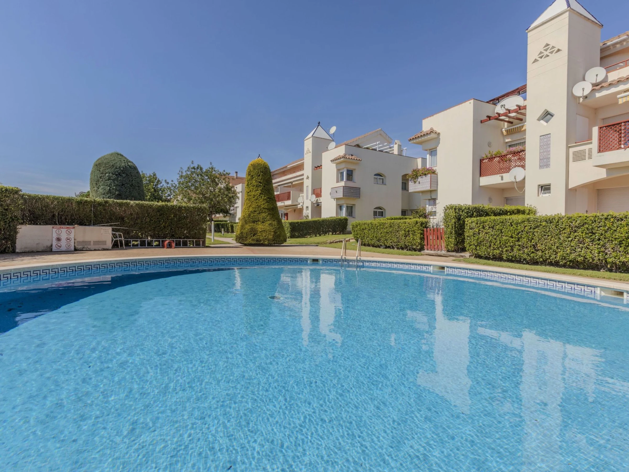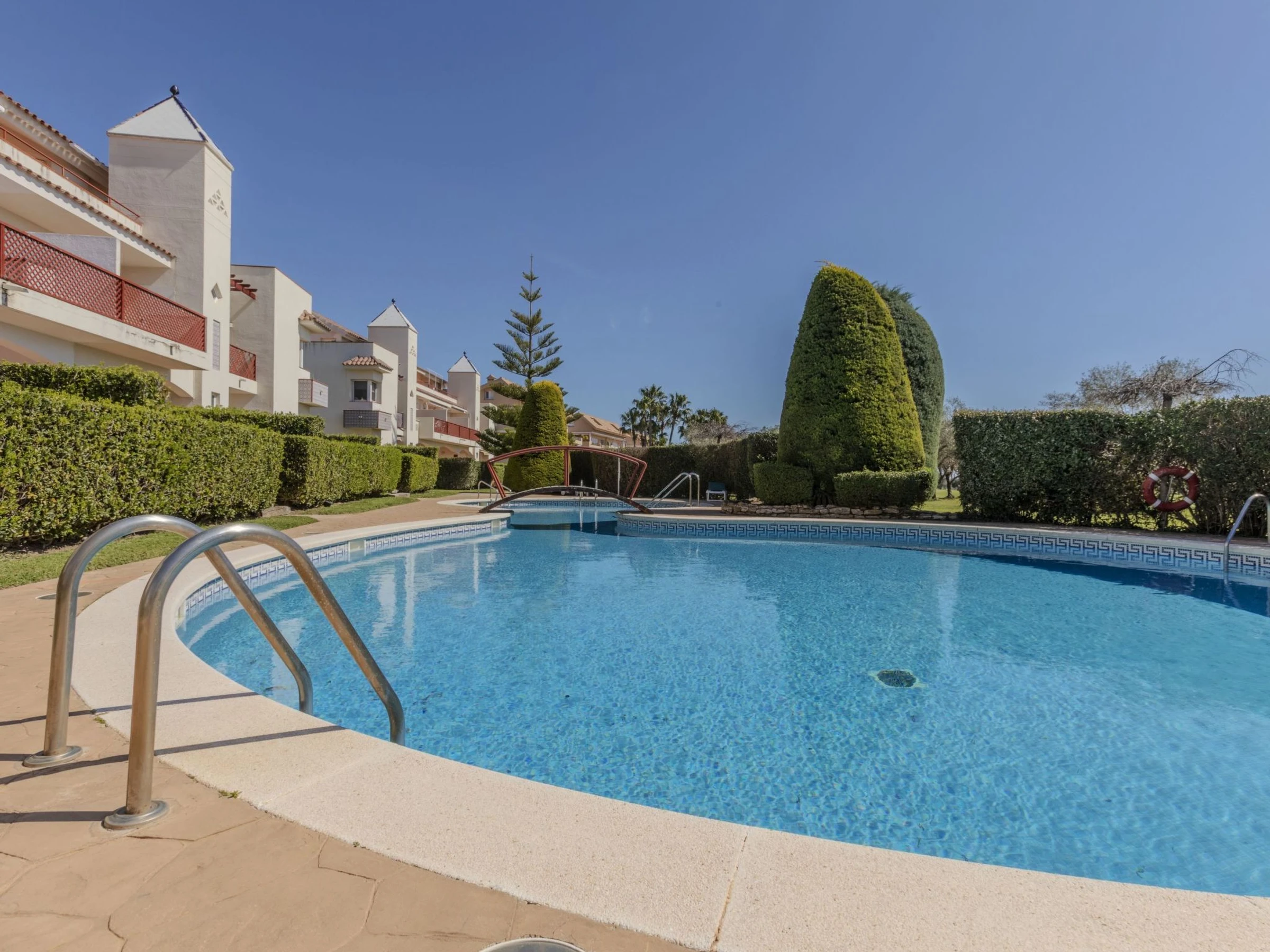 Panorámica Golf: Gemütliches, komfortables Appartementhaus "Coco Golf", auf 3 Stockwerken, umgeben von Bäumen. 22 Wohnungen im Ferienhaus. Ruhige Lage, 15 km vom Meer, 15 km vom Strand, am Golfplatz. Zur Mitbenutzung: Garten, Schwimmbad (6 x 18 m, 40 - 200 cm tief, saisonale Verfügbarkeit: [hidden] - [hidden] Öffnungszeiten Schwimmbad: 10:00-20:00). Ungleichmässige Schwimmbadform, Kinderbecken, Aussendusche. Im Hause: Klimaanlage. Treppenweg (14 Stufen) bis zum Haus. Parkplatz beim Haus. Lebensmittelgeschäft 300 m, Supermarkt 4 km, Einkaufszentrum 15 km, Restaurant, Bar 300 m, Bushaltestelle "Sant Jordi" 7 km, Bahnstation "Vinaroz" 15 km, Sandstrand "Vinaroz" 16 km. Golfplatz (18 Loch) 200 m. Nahe gelegene Sehenswürdigkeiten: Peñiscola 30 km, Morella 50 km, Vinaroz 18 km, Port Aventura 100 km, Delta del Ebro 35 km, Ciutat de les Arts i les Ciències 160 km. Bekannte Seen in der Umgebung sind gut erreichbar: Pantano La Senia 12 km. Wandergebiete: Parque Natural Sierra de Irta 32 km, Ruta Olivos Milenarios 18 km. Bitte beachten: Fahrzeug empfohlen, kein Fahrstuhl vorhanden. Jugendgruppen nur auf Anfrage. Be- und Entladen am Ferienhaus möglich. Residenz ist 24 Std. überwacht. Die Nachbarschaft ist sehr lärmempfindlich. Ruhe und gutes Benehmen wird erwartet.