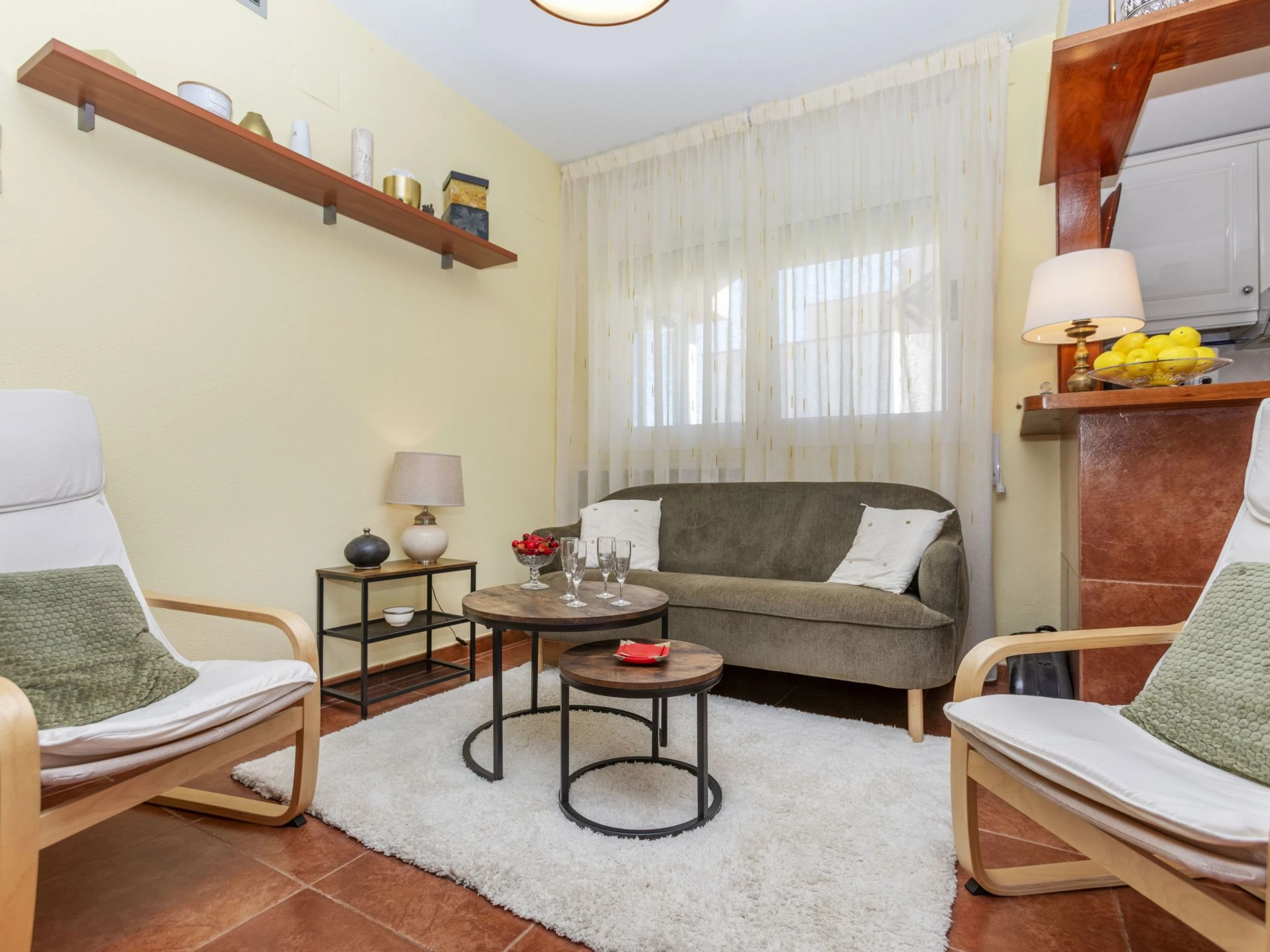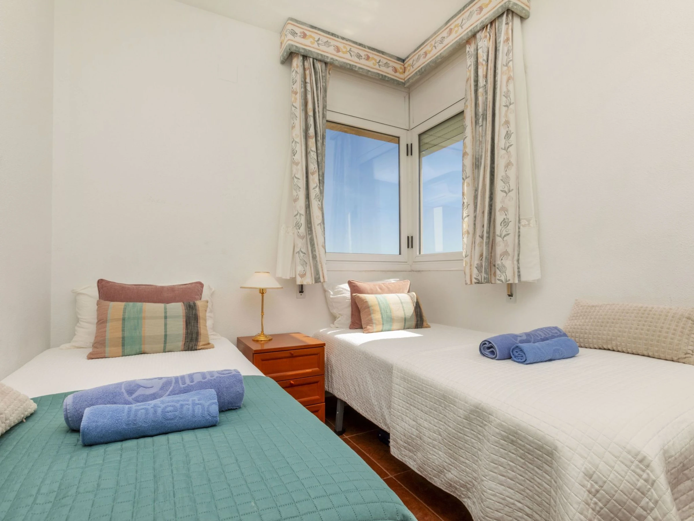 "Coco Golf", 3-Zimmer-Wohnung 70 m2 im 1. Stock. Zweckmässig und komfortabel eingerichtet: Wohn-/Esszimmer mit Esstisch, Digital-TV, Klimaanlage und Warmluftheizung. Ausgang zur Terrasse. 1 Zimmer mit 1 franz. Bett (1 x 150 cm, Länge 190 cm), Klimaanlage und Warmluftheizung. 1 Zimmer mit 1 Doppelbett (2 x 80 cm, Länge 190 cm), Klimaanlage und Warmluftheizung. Grosse, offene Küche (Backofen, Geschirrspüler, 3 Glaskeramikplatten, Toaster, Wasserkocher, Mikrowelle, Tiefkühler, elektrische Kaffeemaschine, Kapseln für die Kaffeemaschine (Nespresso) extra) mit Bar. Bad/WC, sep. WC, Doppelwaschbecken. Boiler (150 Liter). Kleine Terrasse, grosse Terrasse, Laube. Terrassenmöbel, Liegestühle (2), Sitzplatz. Herrliche Sicht auf das Schwimmbad, den Golfplatz und Loch 15. Zur Verfügung: Waschmaschine, Wäschetrockner, Bügeleisen, Fliegengitter, Haartrockner. Internet (WLAN, gratis). Parkplatz. Bitte beachten: Nichtraucher-Unterkunft. TV nur ES, FR, DE. Kein Fahrstuhl. [hidden] // Reg. Nr.: ESFCTU000012009001142547000000000000CV-VUT0039568-CS1