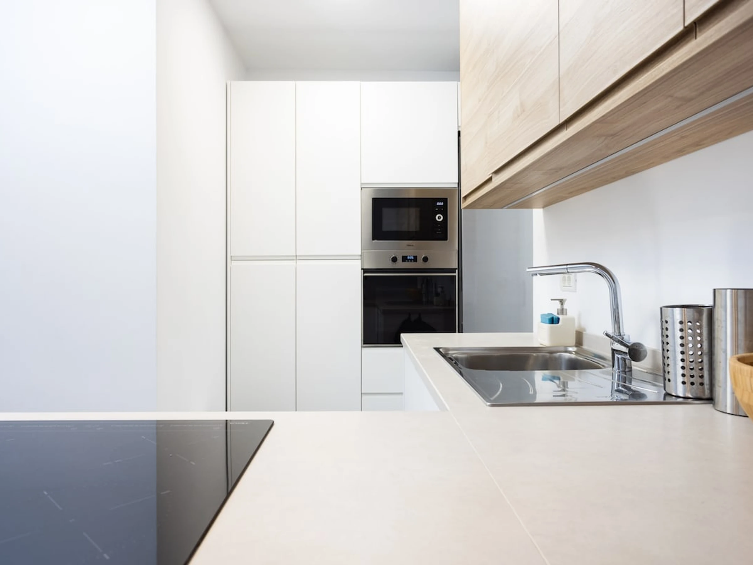 Dieses küche, ist ausgestattet in mikrowelle, backofen, spülmaschine, kochutensilien und kaffeemaschine.