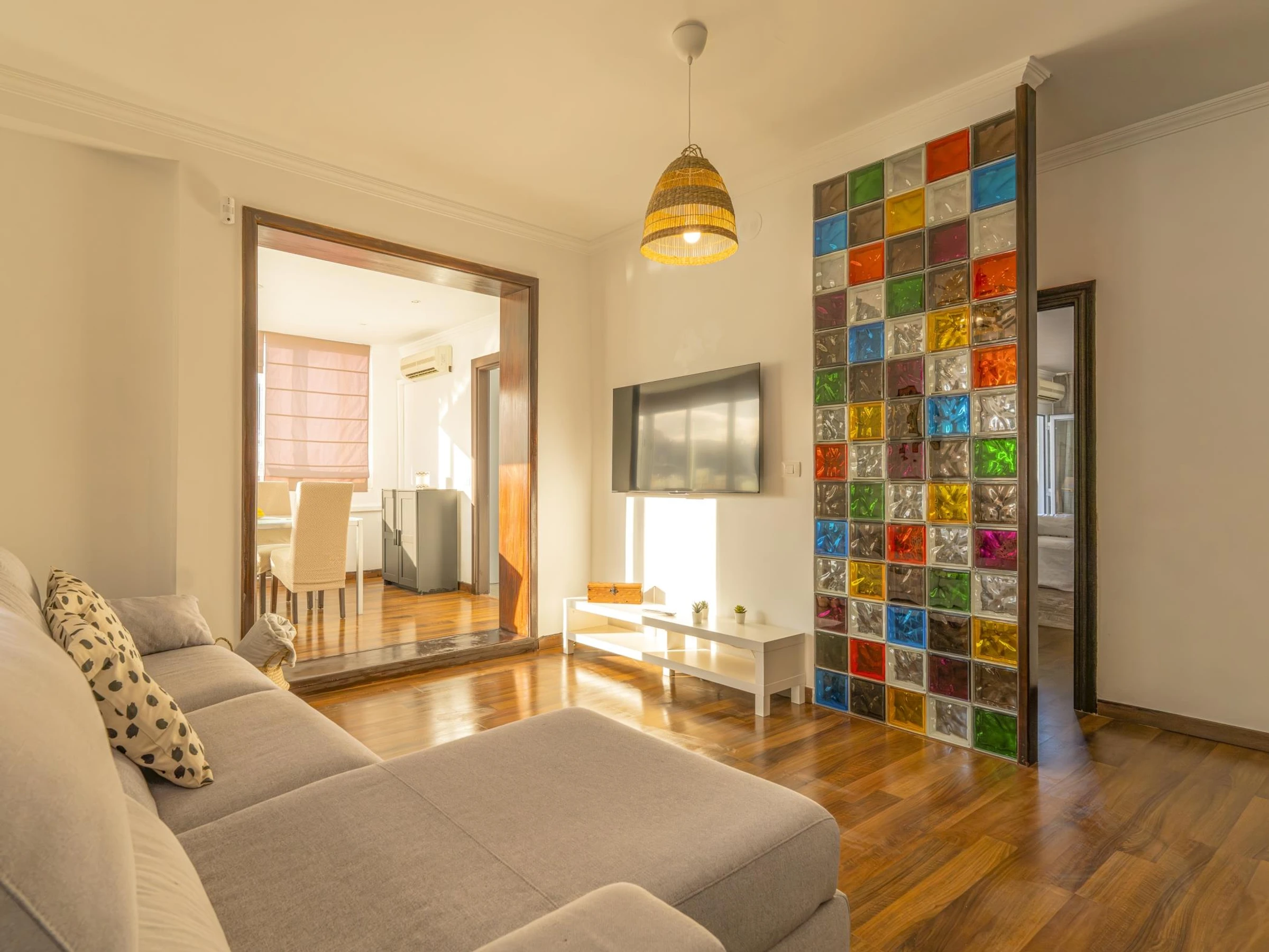 Die Unterkunft bietet Platz für bis zu 4 Personen und verfügt über ein stilvolles Schlafzimmer mit Kingsize-Bett, Klimaanlage und TV, ein weiteres Schlafzimmer mit Einzelbett sowie ein bequemes Schlafsofa im Wohnbereich. Das Badezimmer ist voll ausgestattet und mit einer Hydromassage-Dusche versehen – ideal, um nach einem langen Tag zu entspannen.