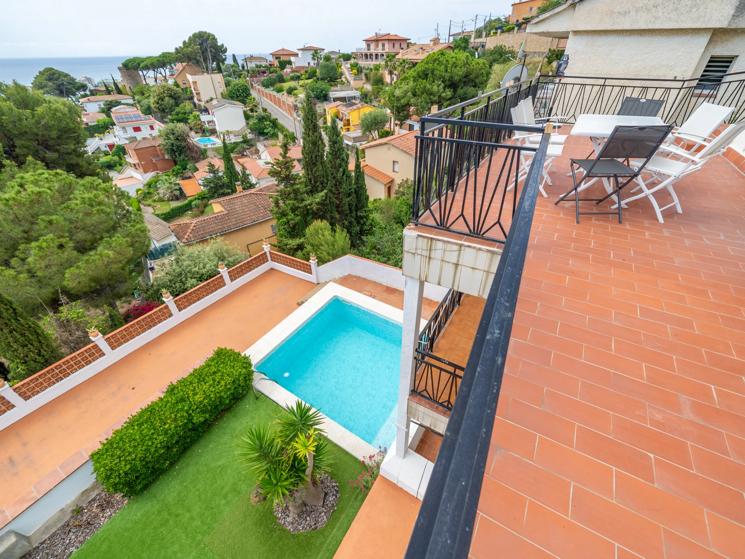 Die Unterkunft verfügt über garten, gartenmöbel, umzäuntes grundstück, terrasse, waschmaschine, grill, bügeleisen/-brett, internet (WLAN), haartrockner, balkon, zentralheizung, swimming-pool privater pool, parkplatz im freien in auf dem grundstück, 3 ventilatoren, 1 Fernseher, radio.