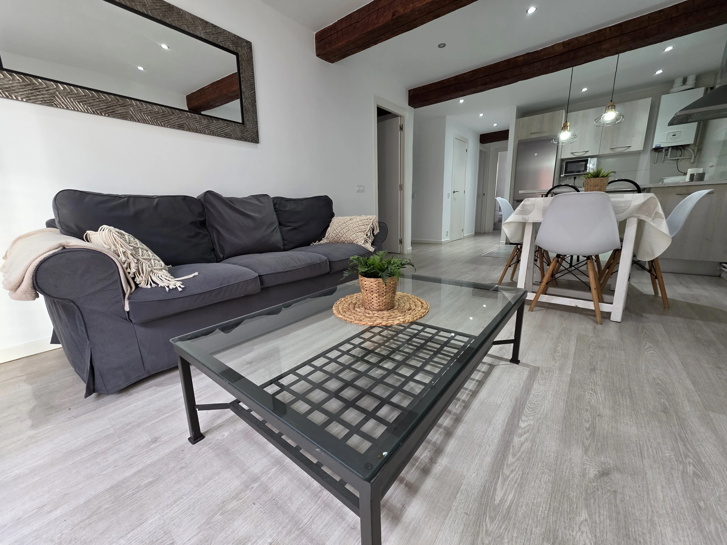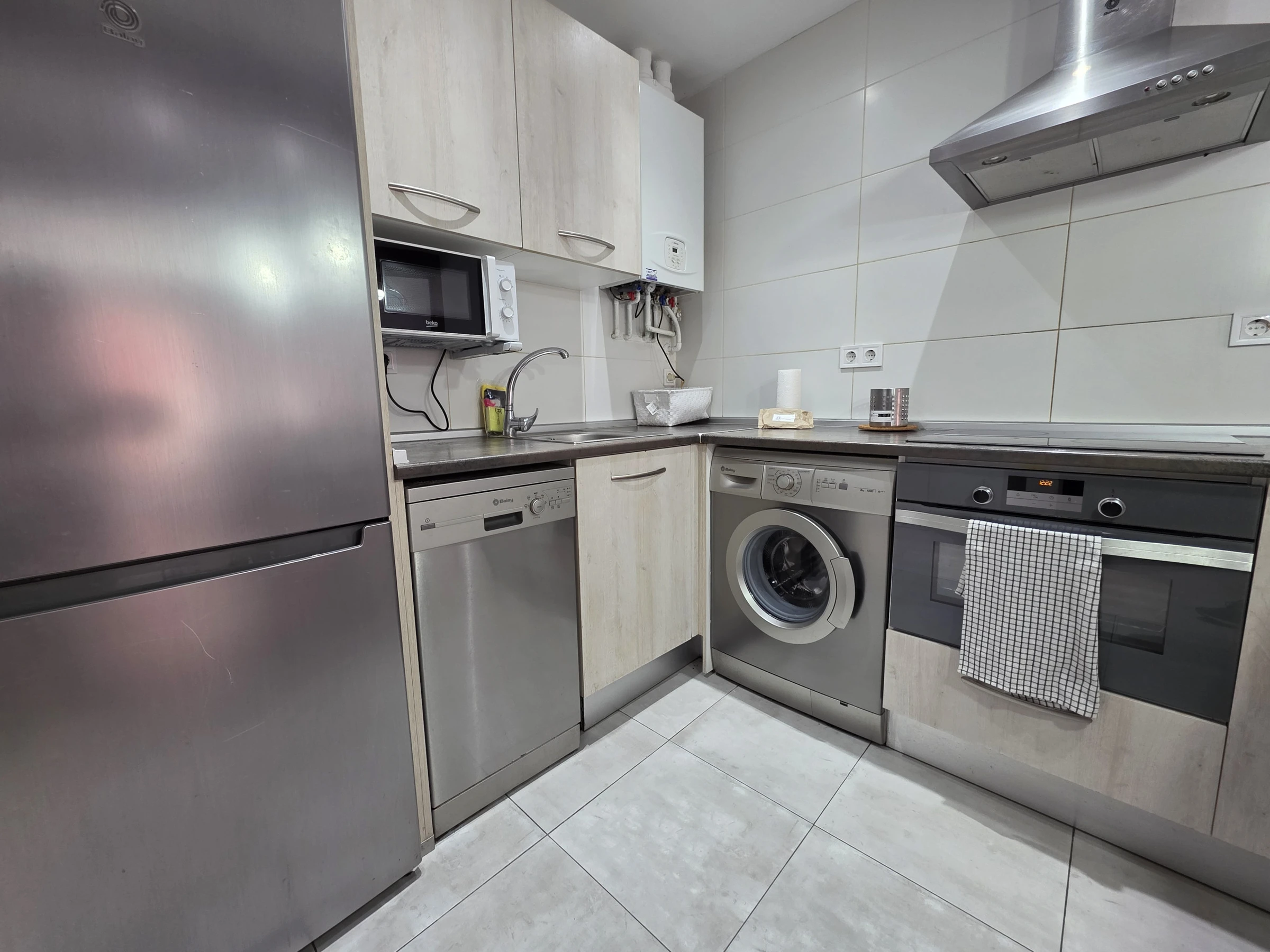 Cuenta con 3 dormitorios, baño con bañera, salón acogedor y cocina totalmente equipada con horno, microondas y lavavajillas. Espacios funcionales pensados para una estancia confortable.