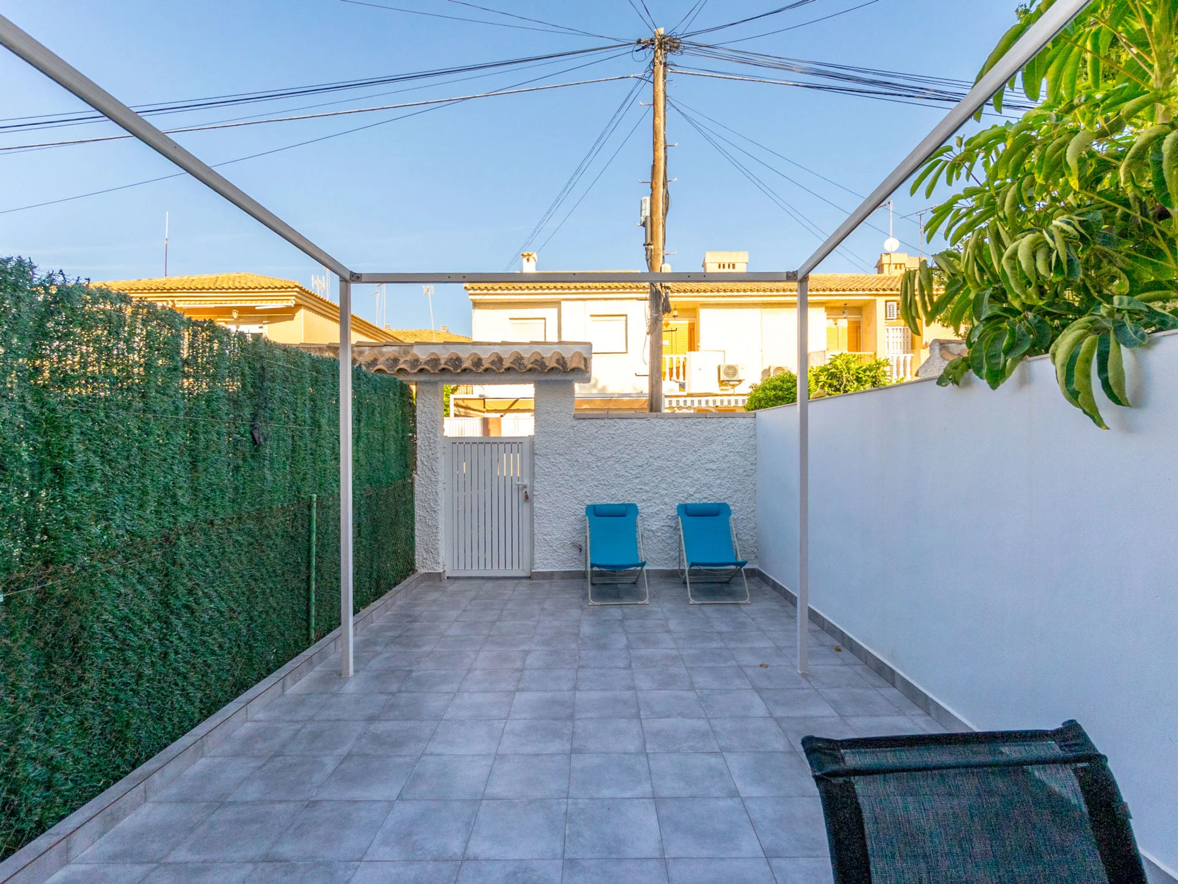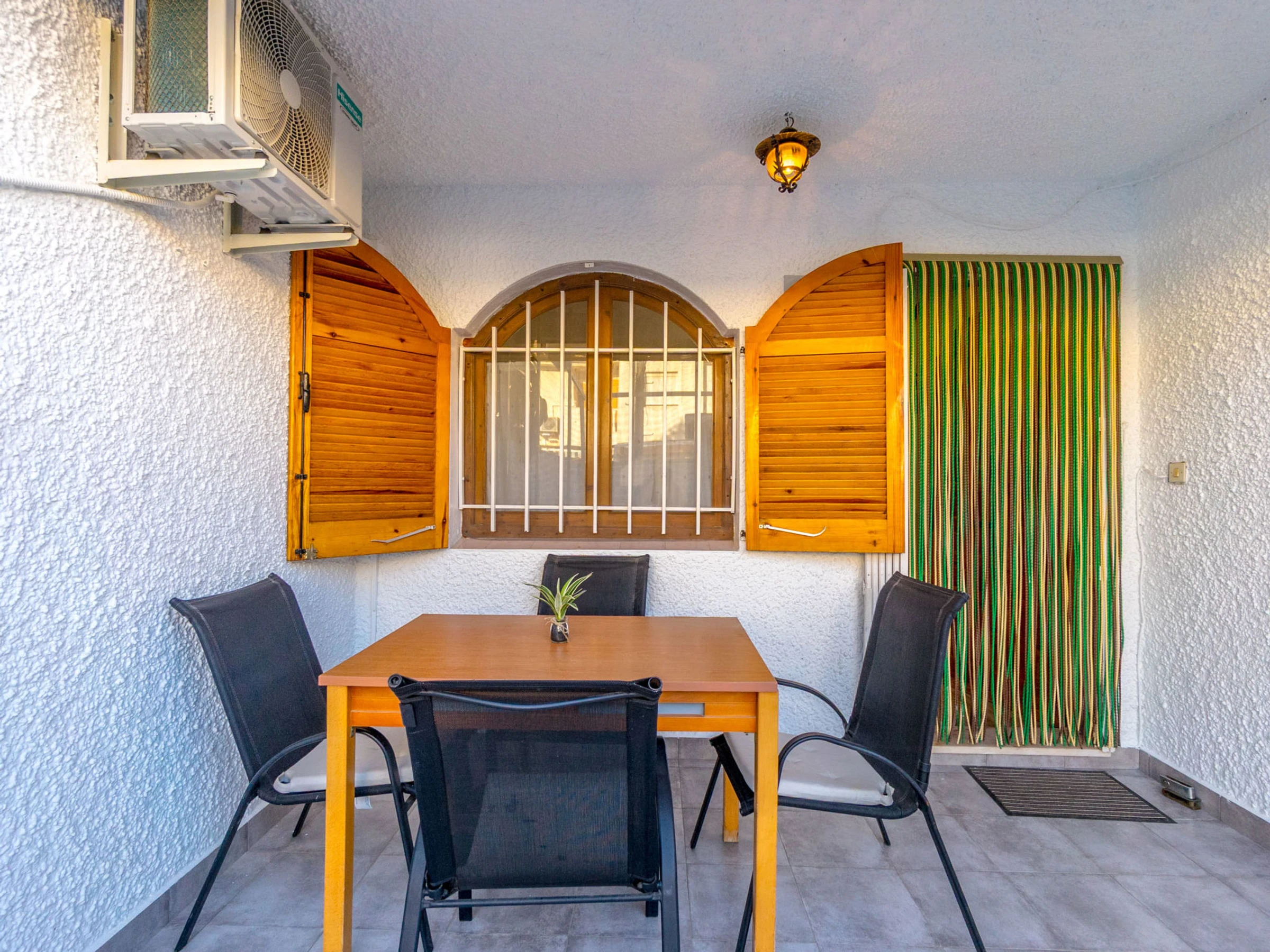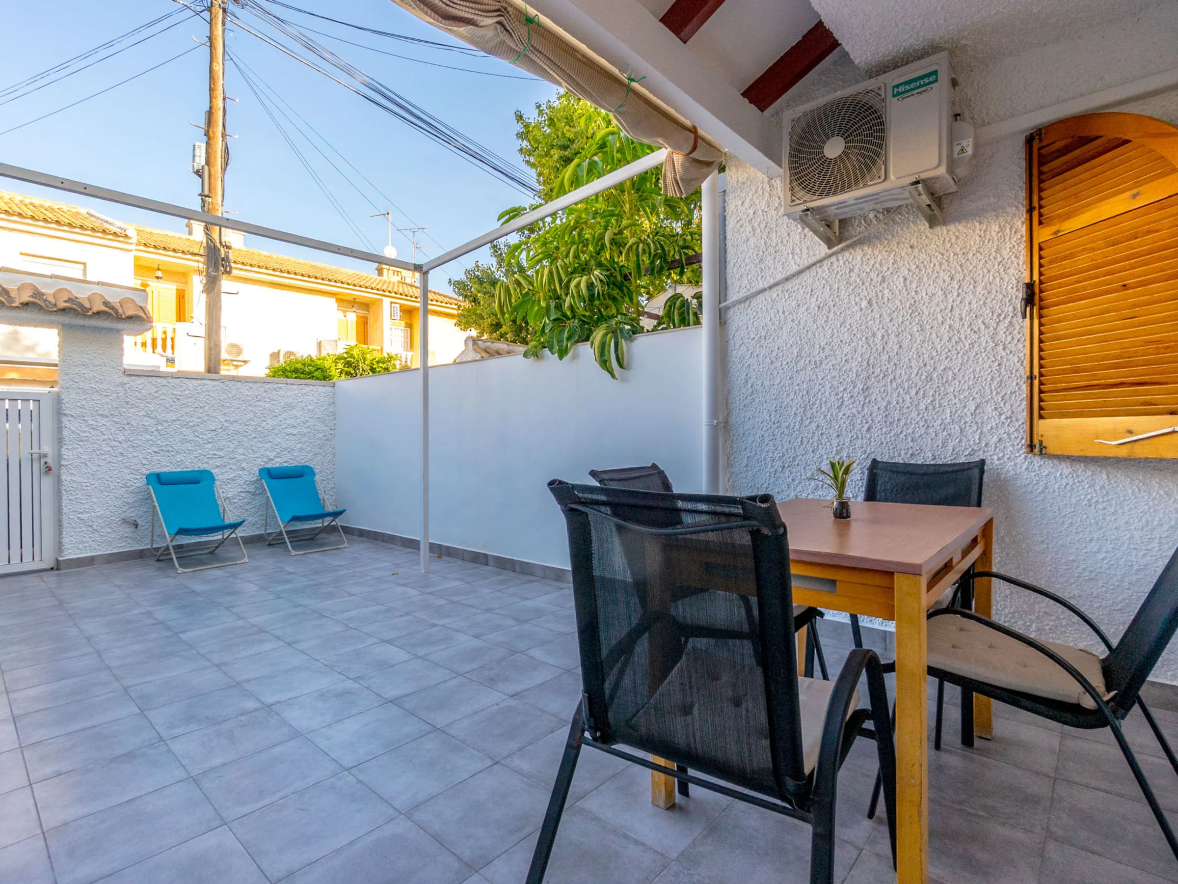 Reihenhaus "Carpa". Exzellente Lage: Absolut zentral und dennoch ruhig, 400 m vom Meer, 400 m vom Strand. Zur Alleinbenutzung: kleiner Garten 27 m2. Sitzplatz (11 m2), Gartenmöbel. Lebensmittelgeschäft 100 m, Supermarkt 1 km, Restaurant, Bar, Café 150 m, Bushaltestelle 250 m, Bahnstation 20 km, Fähre 1.5 km. Golfplatz (9 Loch) 10 km.