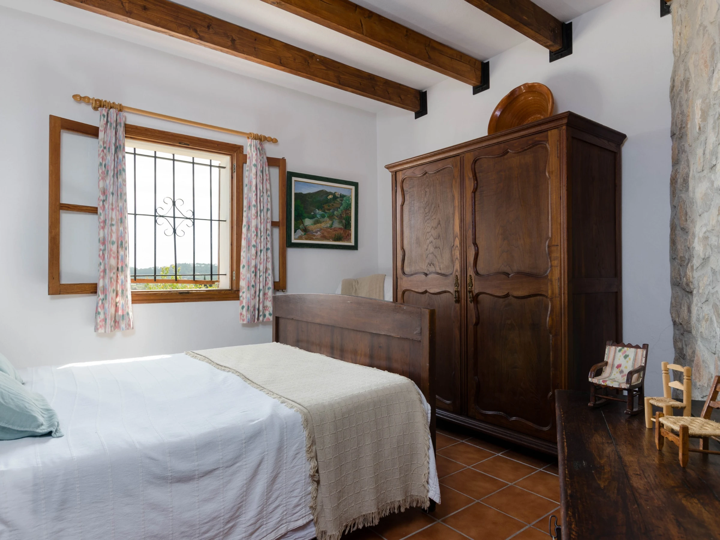 Die Finca zeichnet sich durch ihre ruhige Lage, die wunderschöne Aussicht und den privaten Chlorpool von 40 m2 mit einer Tiefe zwischen 0,6 und 1,7 Metern aus. Drumherum erstreckt sich eine möblierte Terrasse mit Hängematten, Gartenstühlen, einem Tischtennistisch und einem Sonnenschirm. Sie verfügt über eine wunderbare Außenküche mit Herd und einer unvergleichlichen Aussicht. Anschließend finden wir die möblierte Veranda und auf der anderen Seite die Grillzone für große Abende. Die Veranda führt zum gemütlichen und warmen Wohn-Essbereich mit bequemen Sofas und einem Satelliten-Fernseher. Unsere Gäste können zwischen 3 Schlafzimmern wählen, eines mit einem Doppelbett von 1,35 Metern, Kleiderschrank und Ventilator sowie einem Badezimmer mit Badewanne und Haartrockner. Im Obergeschoss befinden sich 2 weitere Zimmer, eines mit einem Doppelbett von 1,5 Metern und ein anderes mit 2 Einzelbetten; diese beiden Schlafzimmer verfügen über Klimaanlage. Die Zimmer im Obergeschoss bieten einen spektakulären Blick auf die Berge. Die Ausstattung des Hauses umfasst WLAN, eine Waschmaschine, ein Bügeleisen/Bügelbrett und auf Anfrage ein Kinderbett/Hochstuhl.
