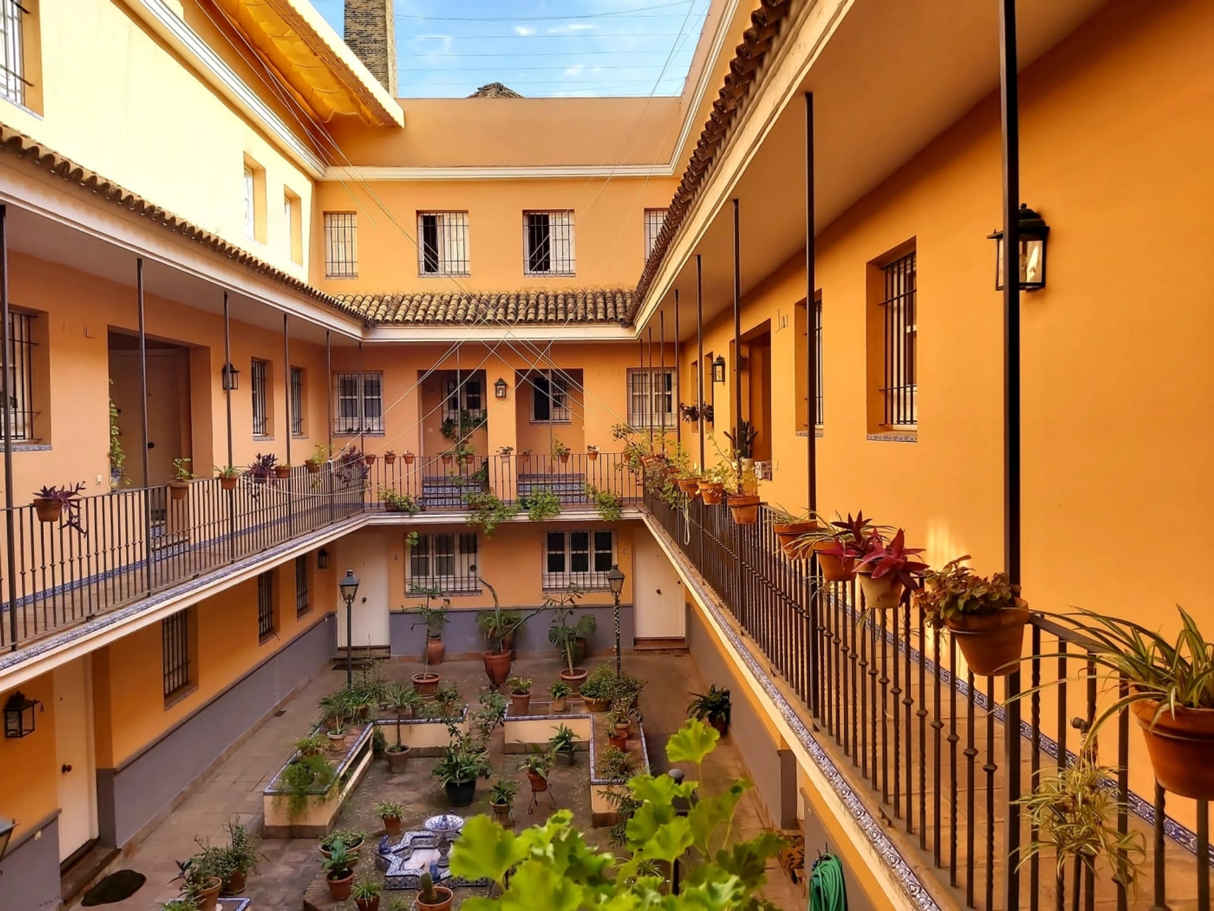 Elegante und funktionale Maisonette-Wohnung mit Tageslicht. Die Wohnung befindet sich im ersten Stock mit voll ausgestatteter Küchenzeile und Wohnzimmer mit Doppelschlafcouch sowie im zweiten Stock mit zwei Schlafzimmern und einem Badezimmer. Die Wohnung befindet sich im ruhigen und berühmten Viertel San Bernardo. Beim Betreten des schönen, traditionellen Sevillano-Gebäudes müssen Sie 17 Stufen hinaufsteigen, um zur Wohnung zu gelangen. Die Fenster blicken auf einen wunderschönen sevillanischen Innenhof. Eine Oase der Ruhe und des Friedens, nur 15 Gehminuten von den wichtigsten Sehenswürdigkeiten der Stadt entfernt. Kostenlose Parkplätze sind im Preis inbegriffen. Diese befinden sich in der Garage des Gebäudes. Es gibt keinen Aufzug in der Wohnung.