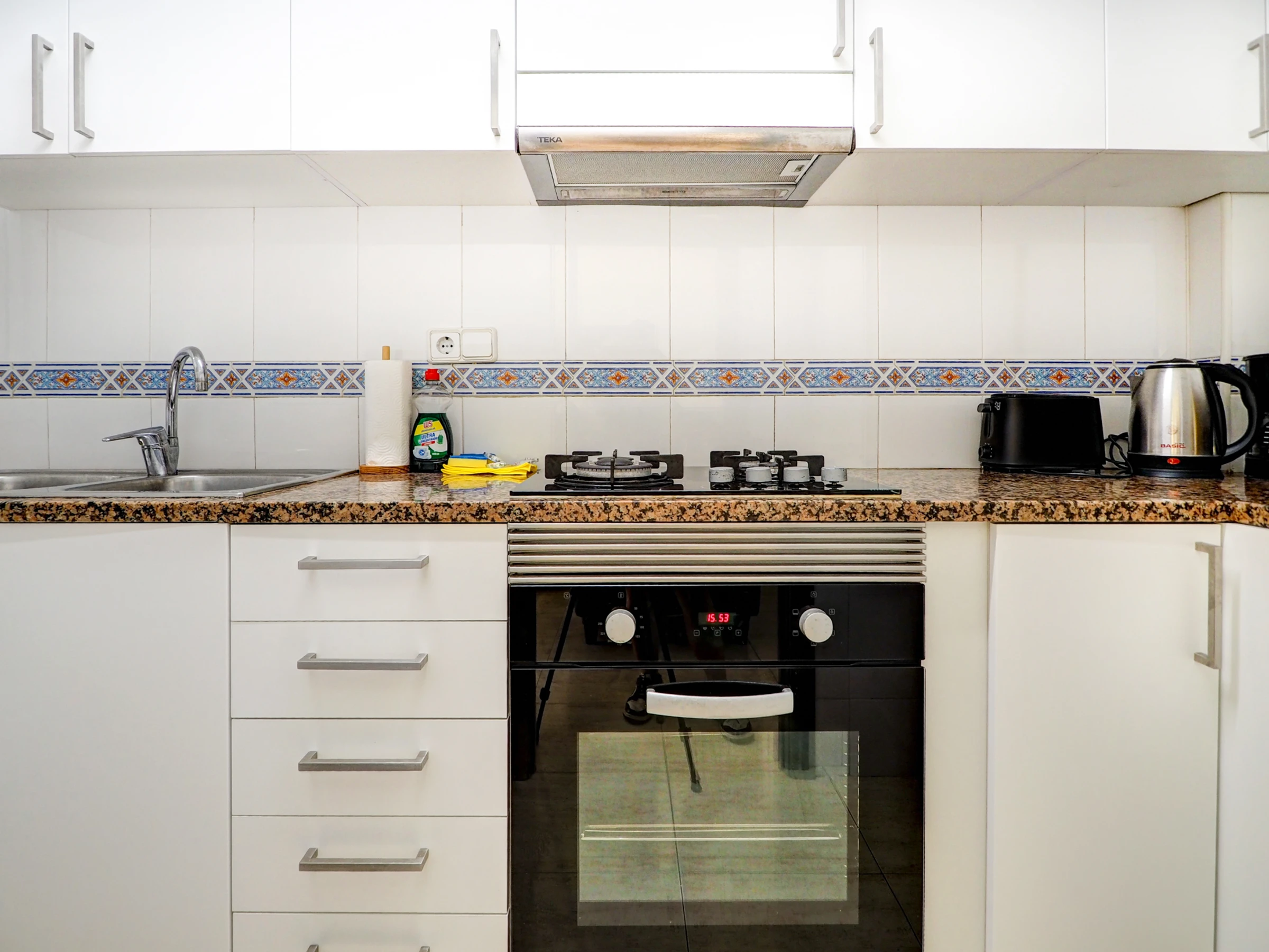 Dieses küche, ist ausgestattet in kühlschrank, mikrowelle, backofen, gefrierschrank, spülmaschine, geschirr/besteck, kaffeemaschine, toaster und wasserkocher.