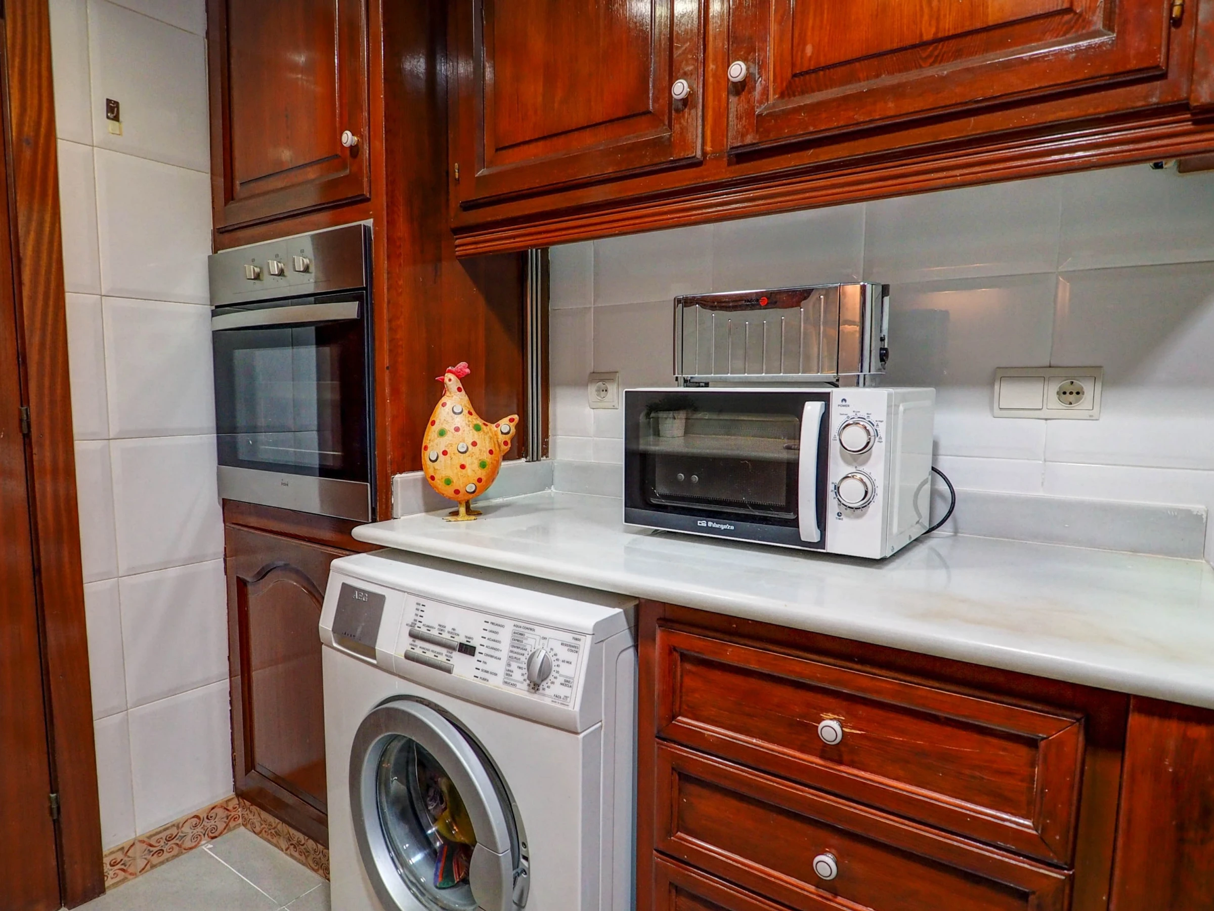 Dieses küche, ist ausgestattet in kühlschrank, mikrowelle, backofen, gefrierschrank, spülmaschine, geschirr/besteck, kochutensilien, kaffeemaschine, toaster und wasserkocher.