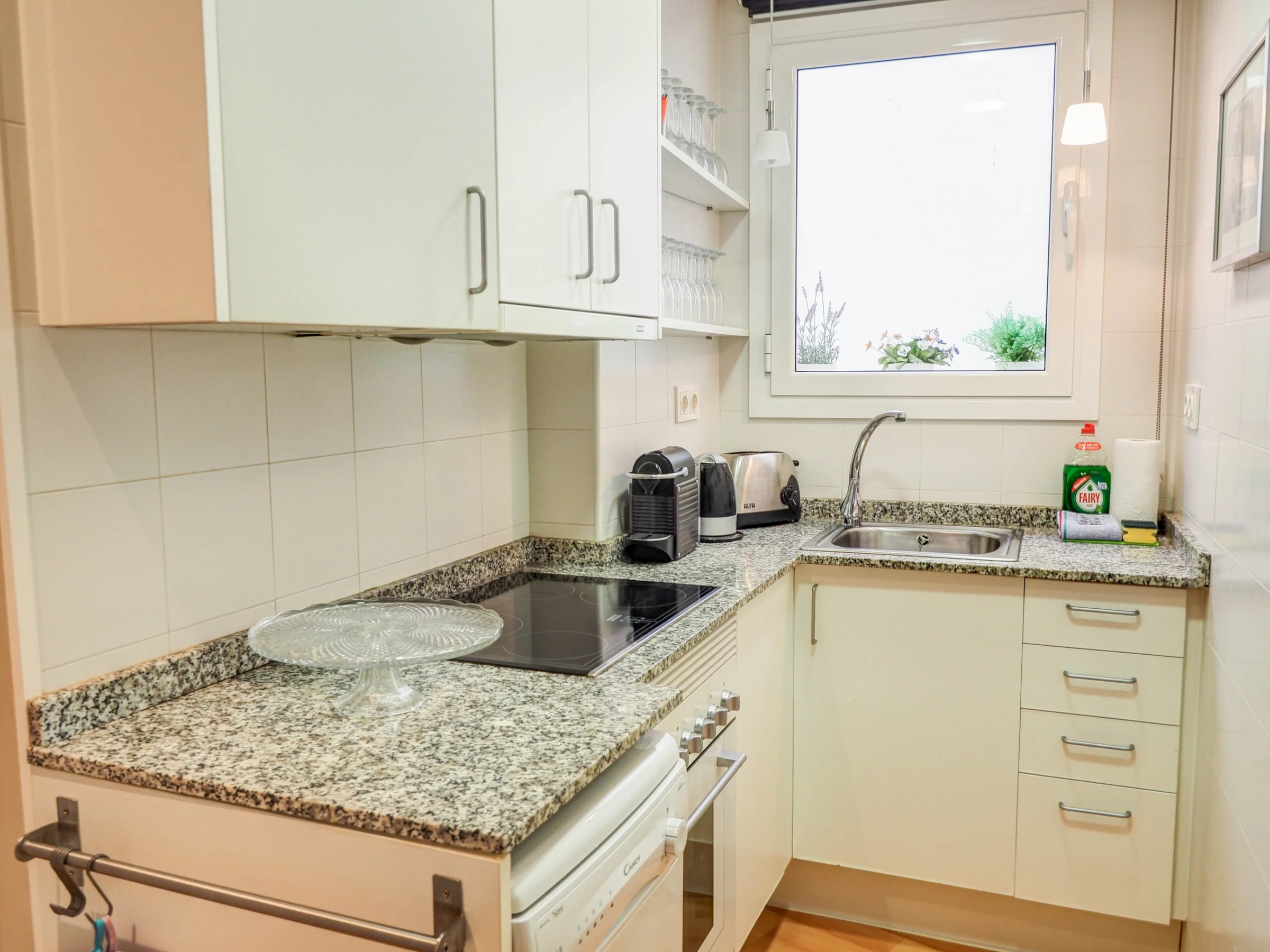 Dieses küche, ist ausgestattet in kühlschrank, mikrowelle, backofen, gefrierschrank, spülmaschine, geschirr/besteck, kochutensilien, kaffeemaschine, toaster und wasserkocher.