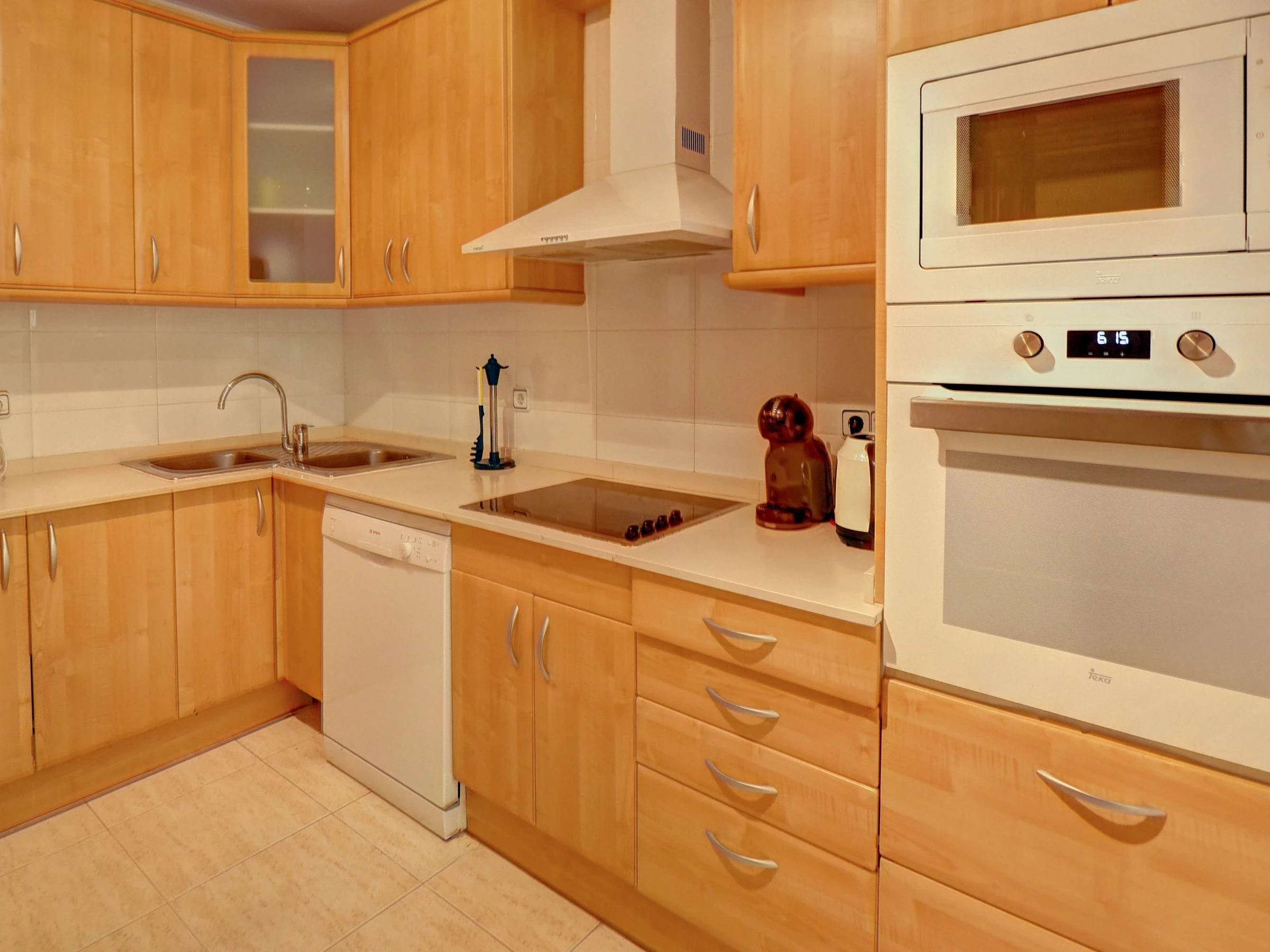 Dieses küche, ist ausgestattet in kühlschrank, mikrowelle, backofen, gefrierschrank, spülmaschine, geschirr/besteck, kochutensilien, kaffeemaschine, toaster und wasserkocher.