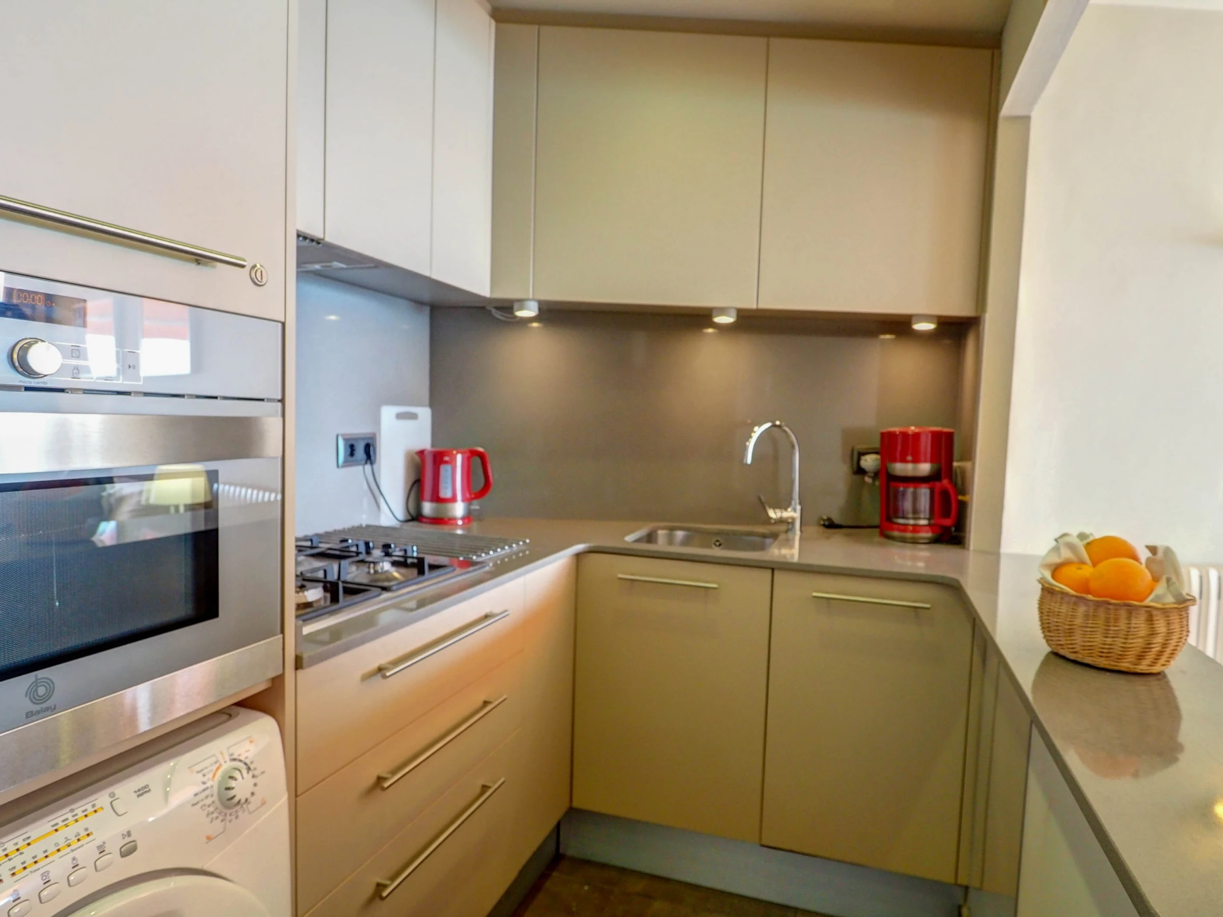 Dieses küche, ist ausgestattet in kühlschrank, mikrowelle, backofen, gefrierschrank, spülmaschine, geschirr/besteck, kochutensilien, kaffeemaschine, toaster und wasserkocher.