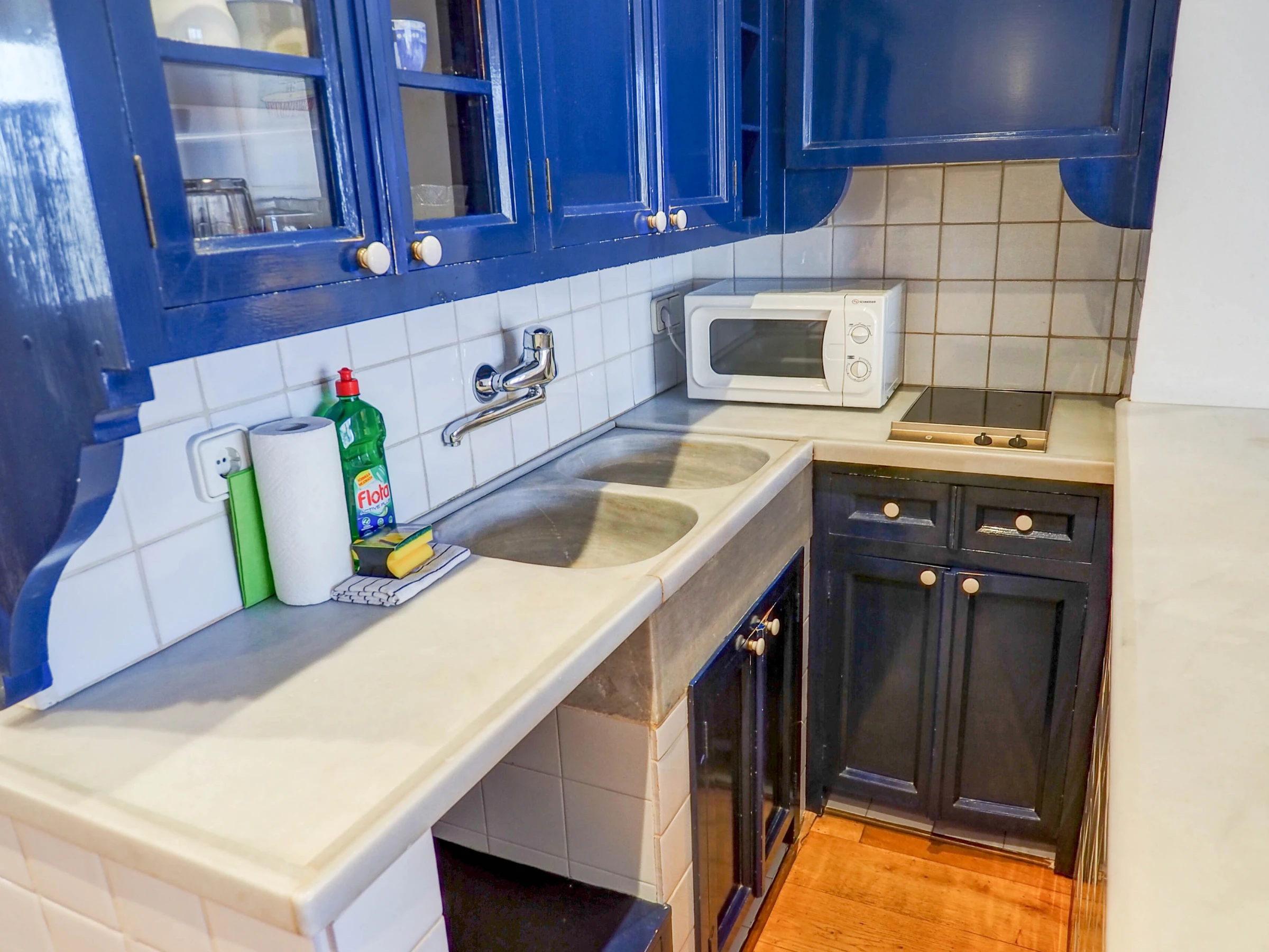 Dieses küche, ist ausgestattet in kühlschrank, mikrowelle, gefrierschrank, geschirr/besteck, kochutensilien, kaffeemaschine, toaster und wasserkocher.