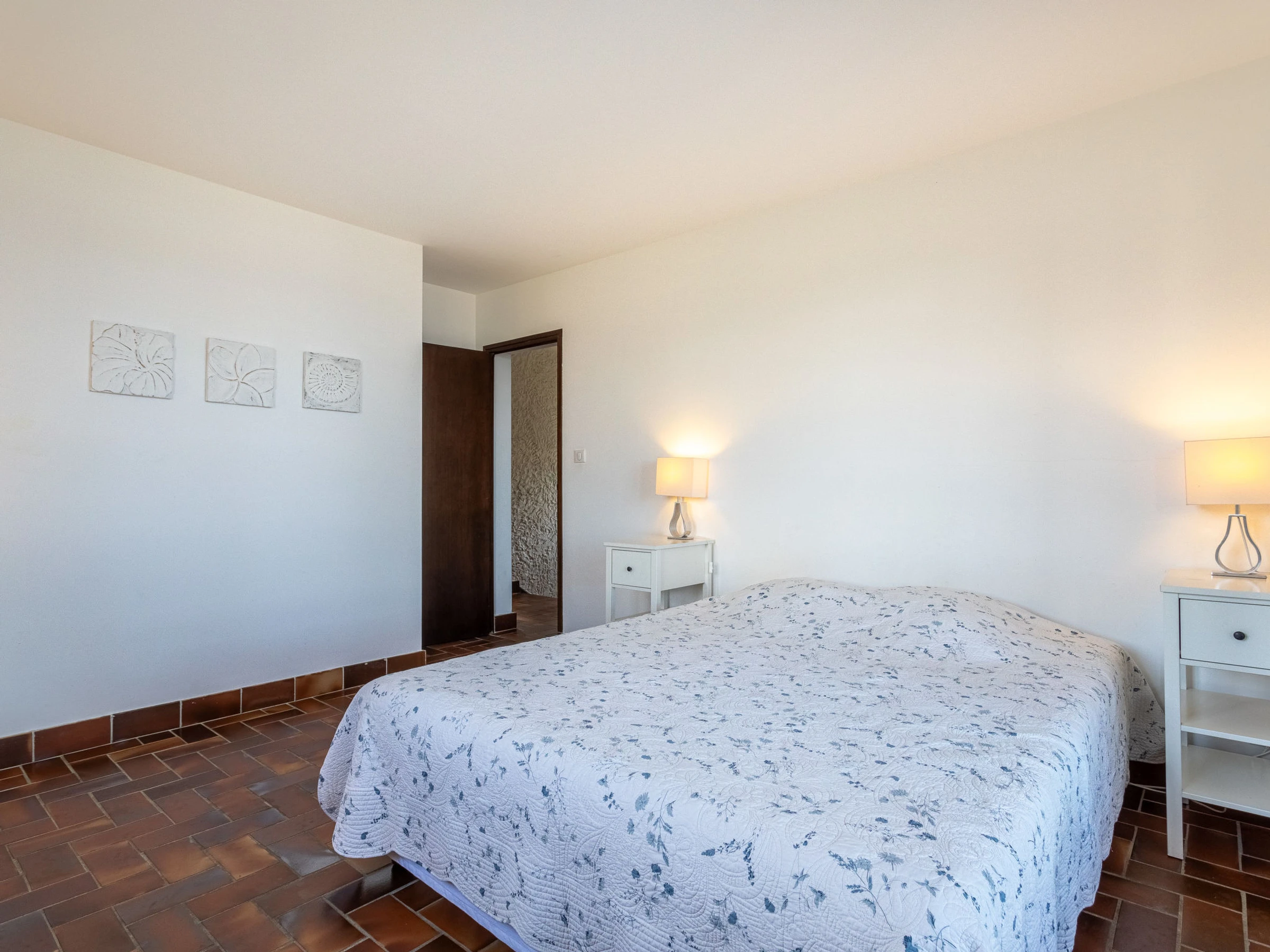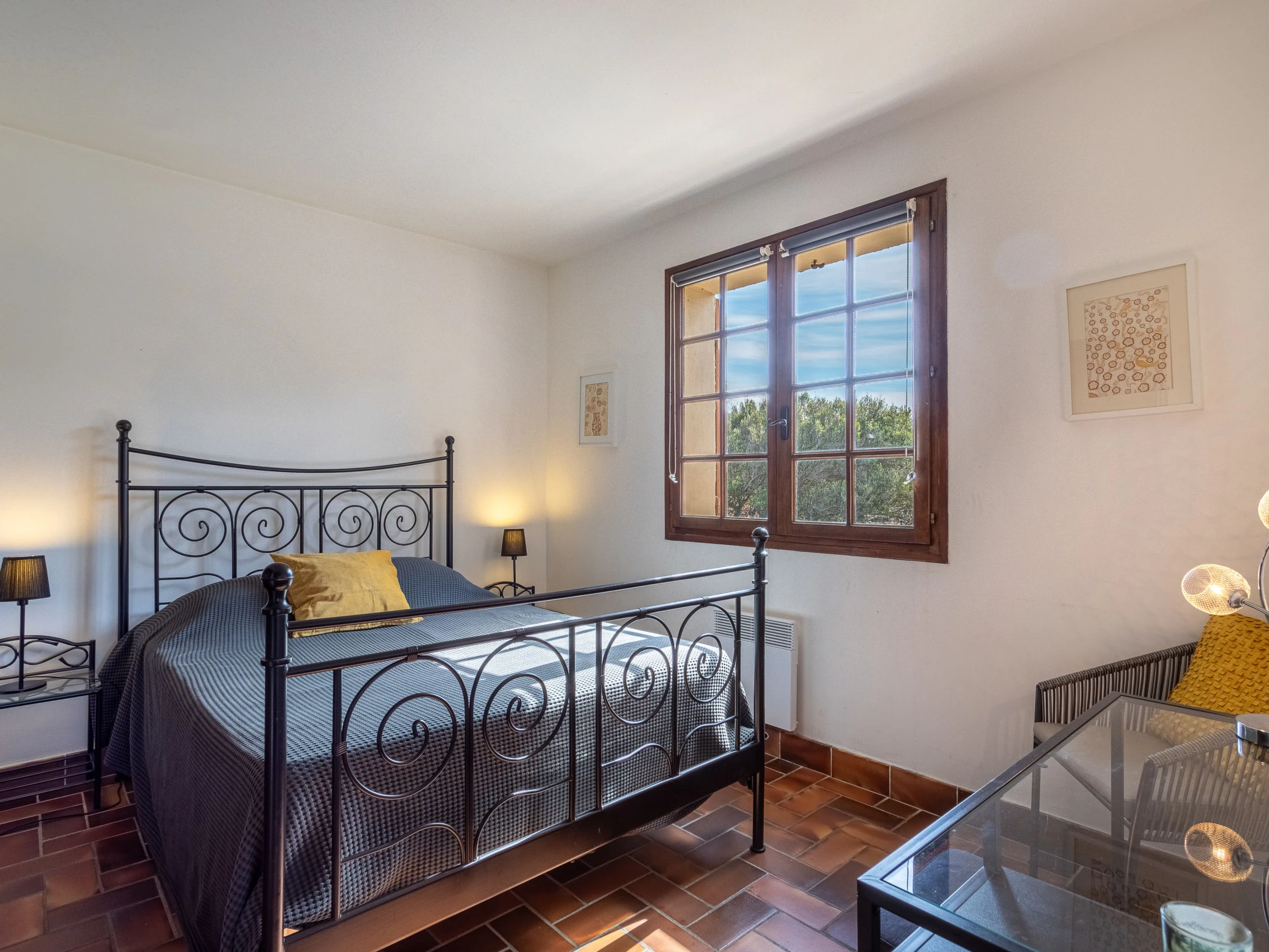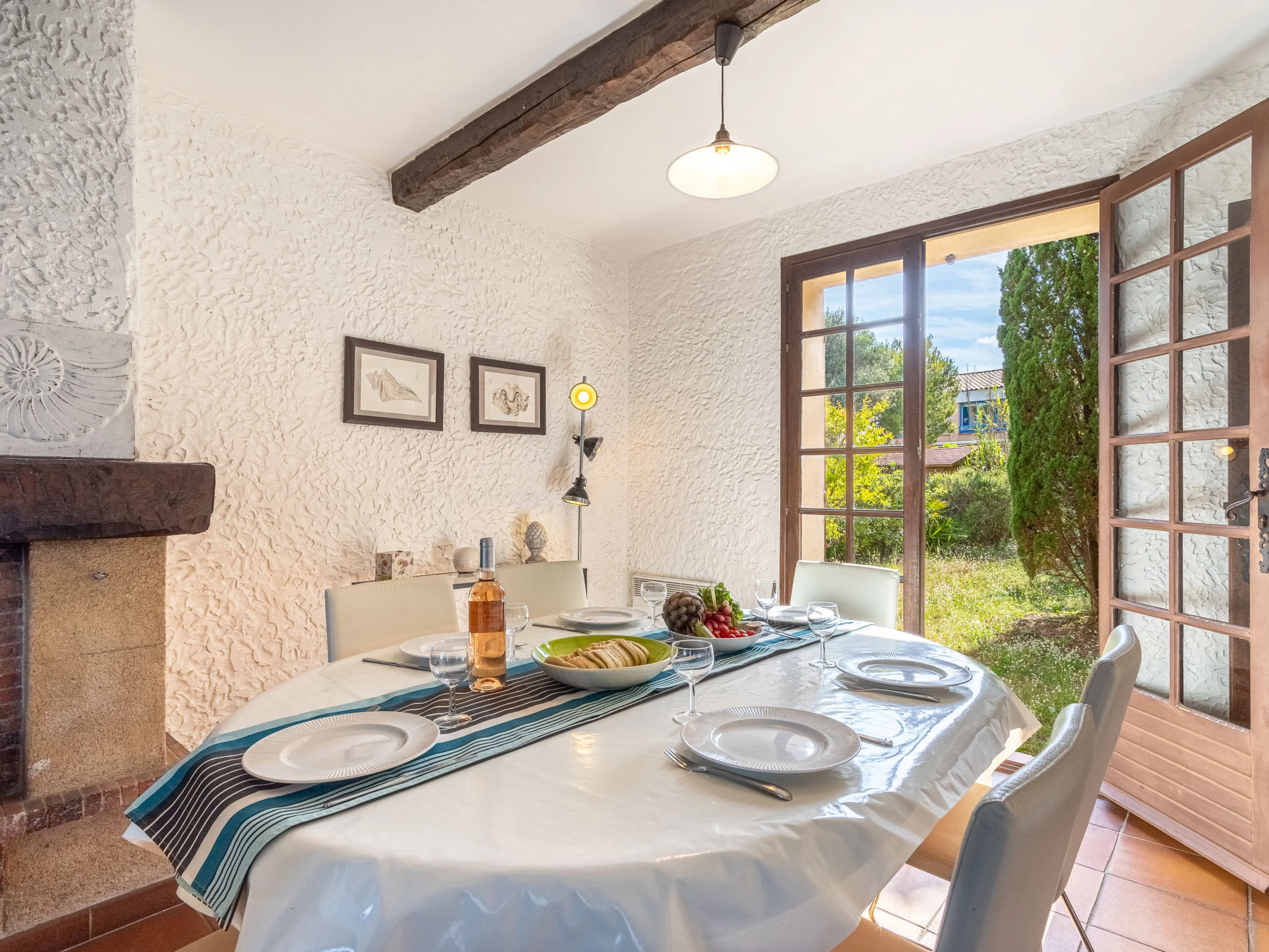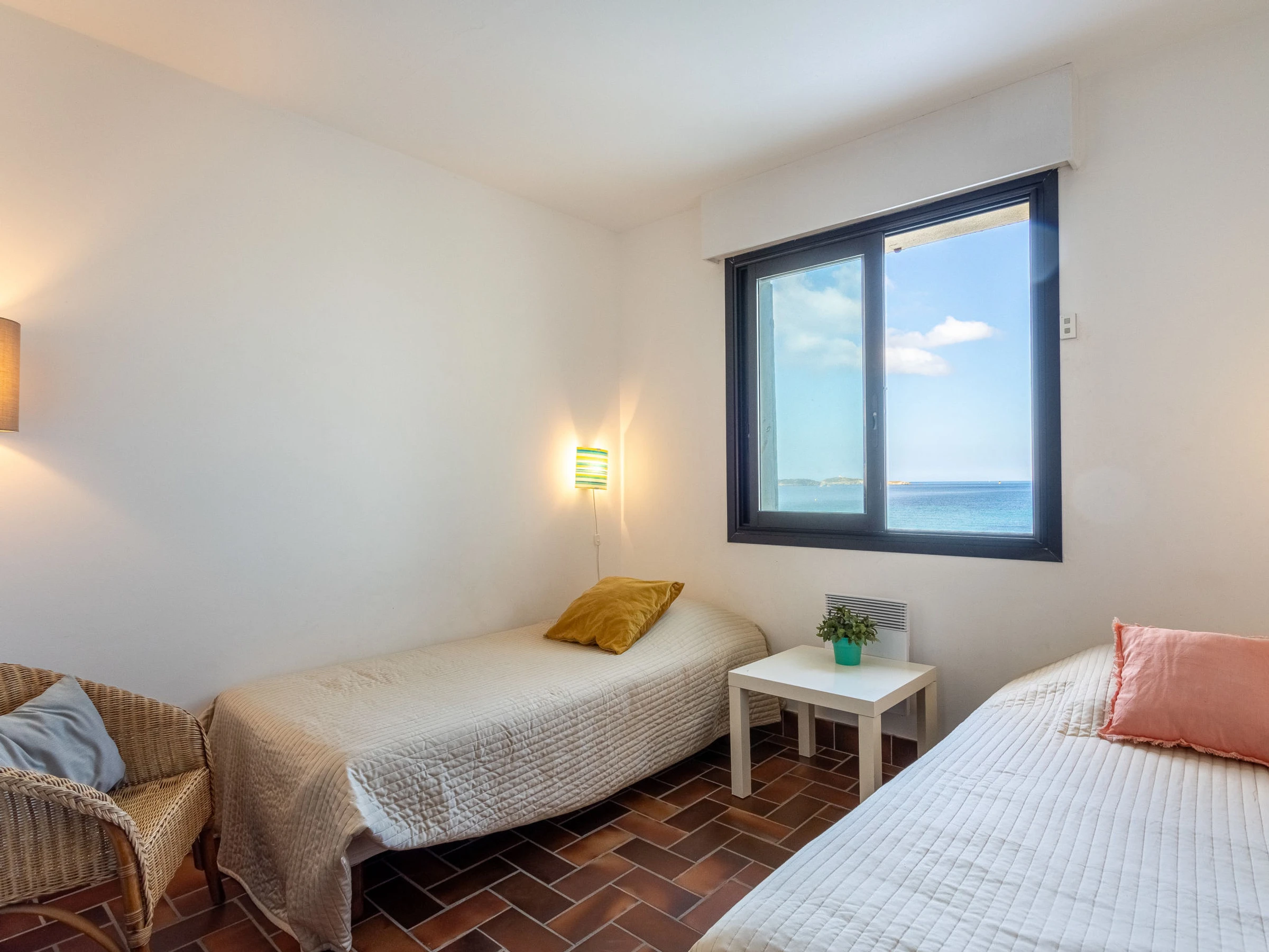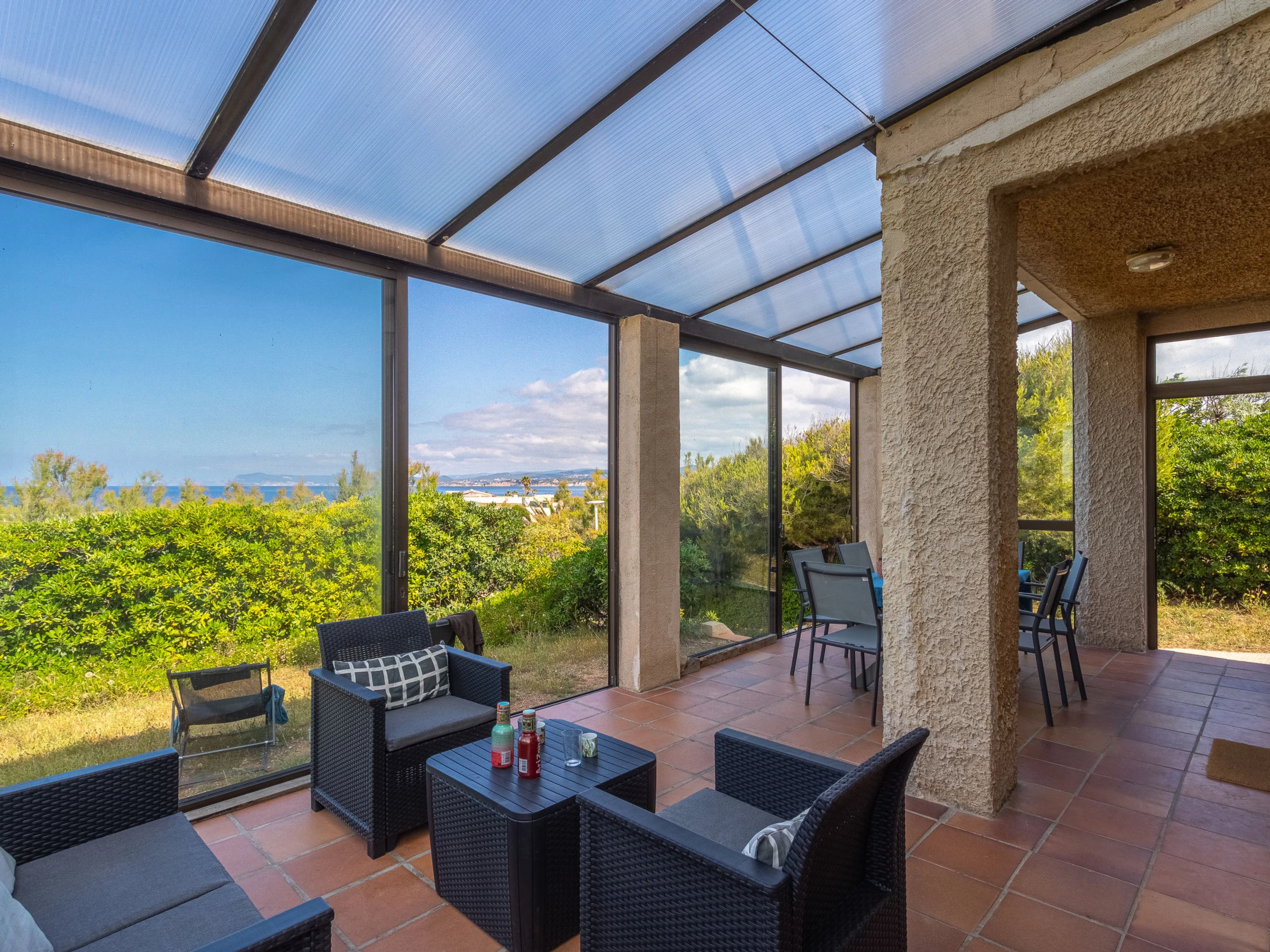 4-Zimmer-Villa 88 m2 auf 2 Stockwerken, Westlage. Geräumig und hell, renoviert im Jahre 2013, komfortabel und schön eingerichtet: Wohn-/Esszimmer mit offenem Kamin (nur Deko), TV (Flachbildschirm), DVD. Ausgang zum Garten, zur Veranda. Küche (Backofen, Geschirrspüler, 3 Induktionskochplatten, Toaster, Wasserkocher, Mikrowelle, Tiefkühler, elektrische Kaffeemaschine). Ausgang zum Garten. Sep. WC. Obergeschoss: 1 Zimmer mit 1 franz. Bett (160 cm, Länge 200 cm). 1 Zimmer mit 1 franz. Bett (140 cm, Länge 190 cm). 1 Zimmer mit 2 Betten (90 cm, Länge 190 cm). Dusche/WC. E-Heizung. Terrassenmöbel, Elektrogrill. Schöne Sicht auf das Meer. Zur Verfügung: Waschmaschine. Internet (WLAN, extra). Parkplatz (eingezäunt, 2 Autos). Bitte beachten: Maximal 1 Haustier/Hund erlaubt. TV nur FR. Rauchmelder. Die Veranda misst 24 m2.