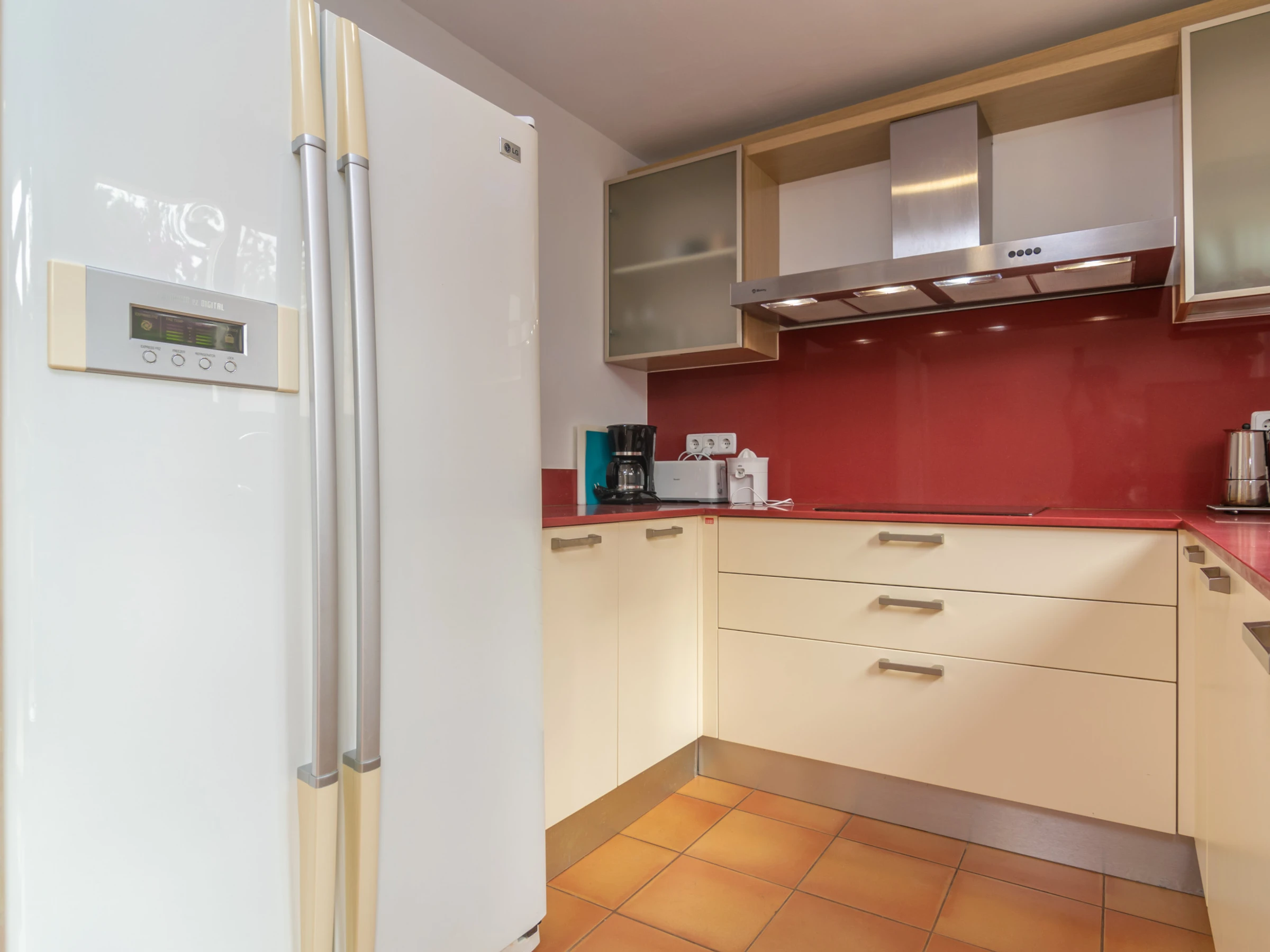 Dieses küche, ist ausgestattet in mikrowelle, gefrierschrank, spülmaschine, kaffeemaschine und toaster.