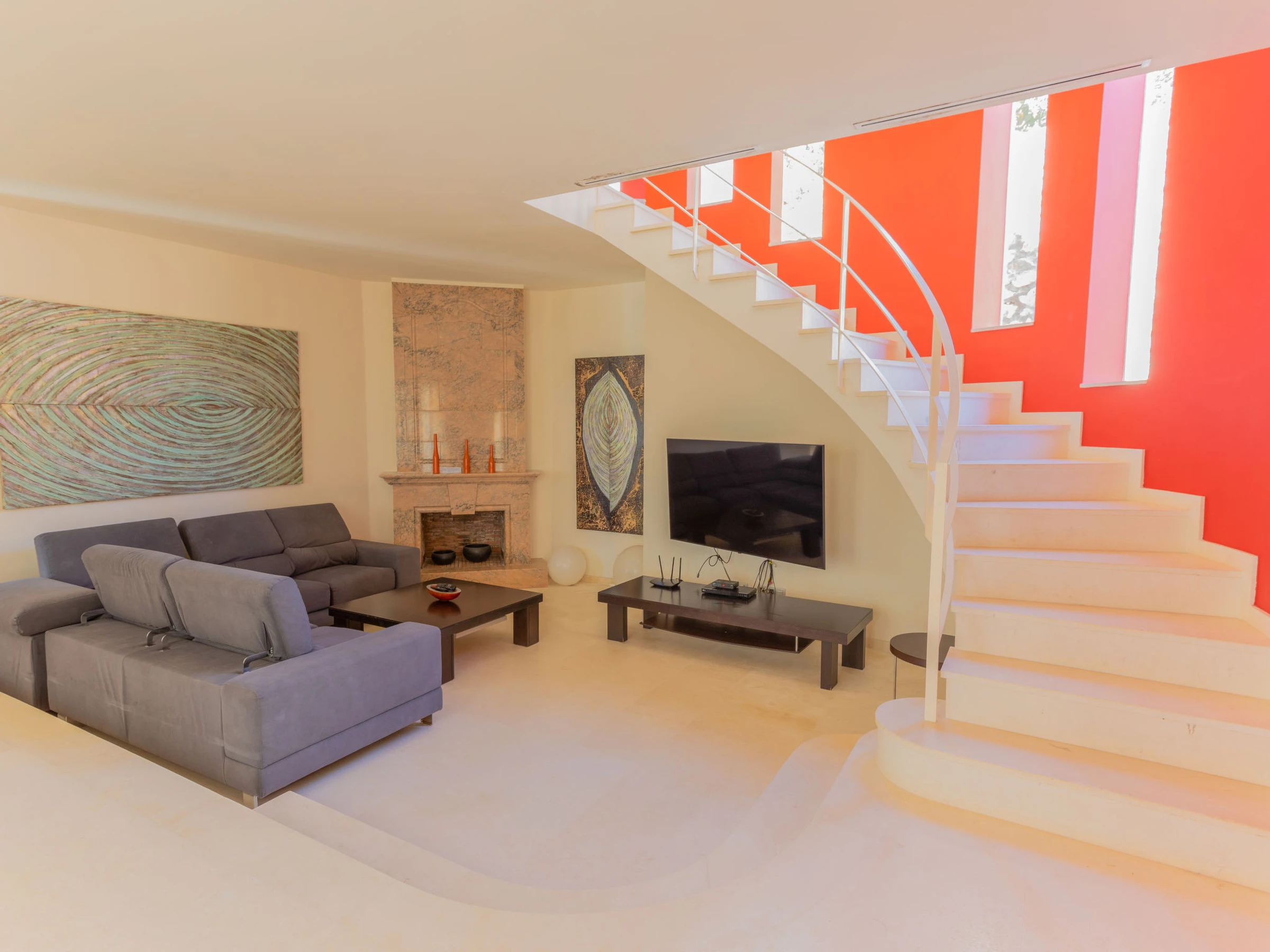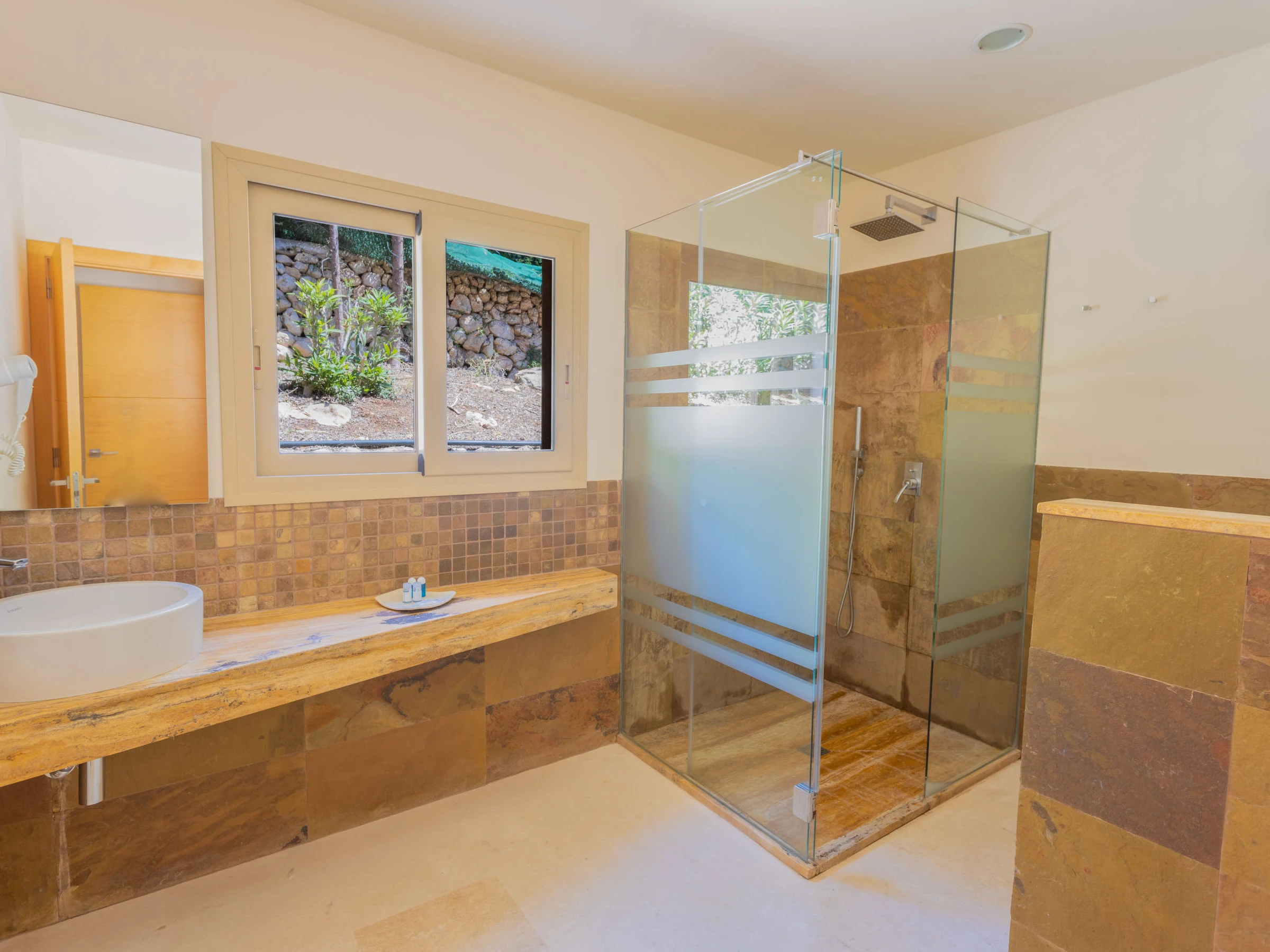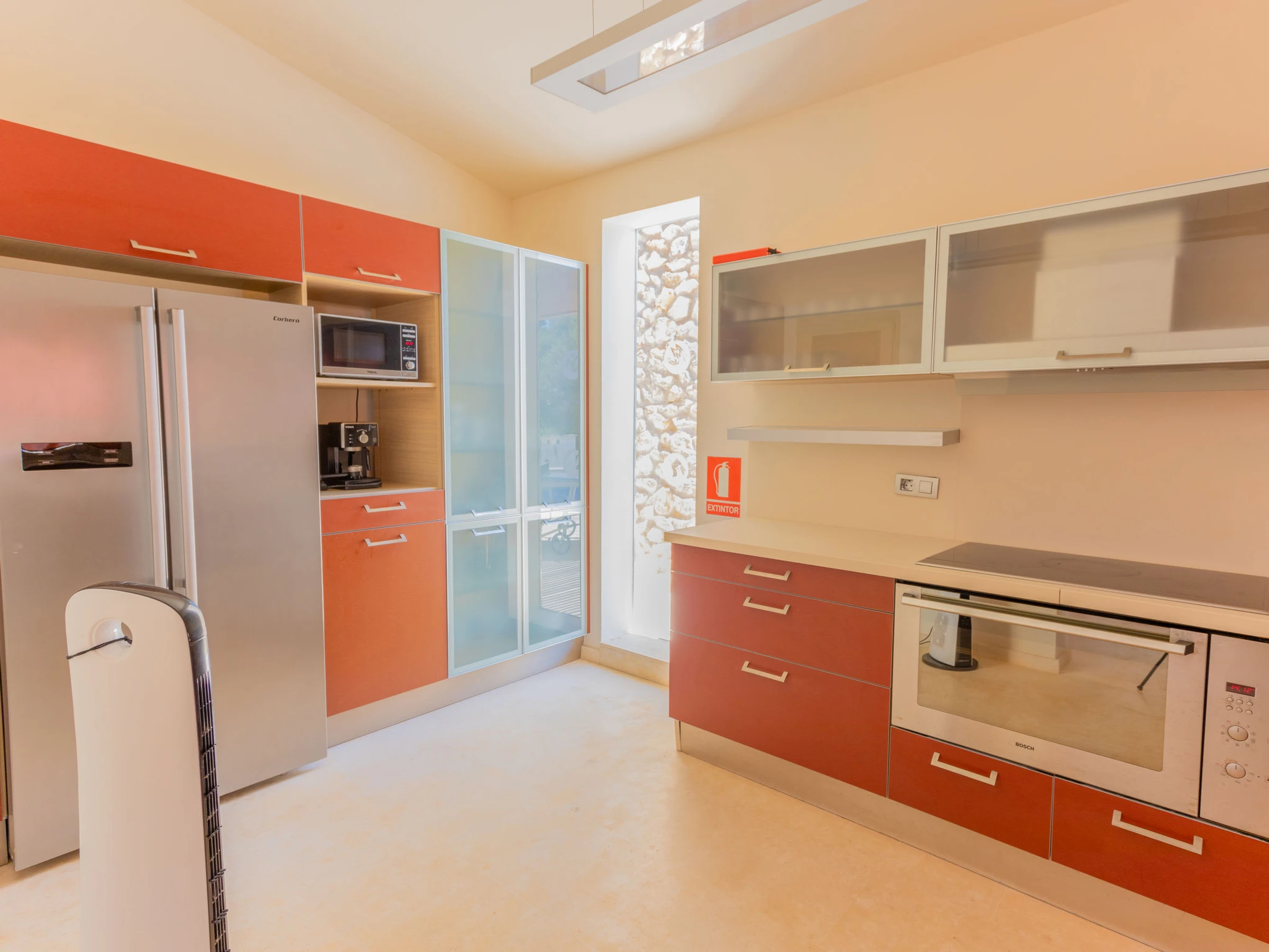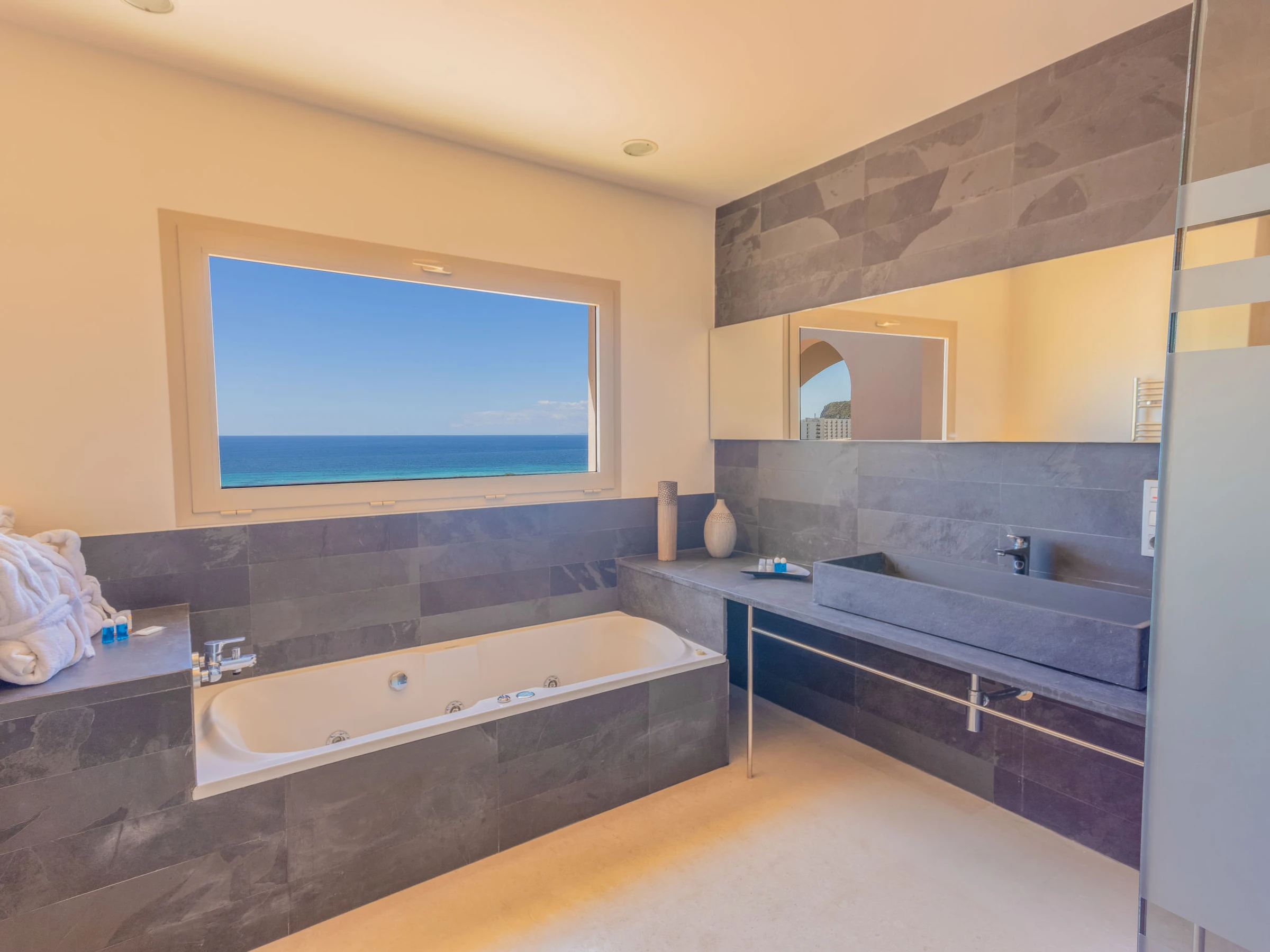 "Villa Maitreya", 7-Zimmer-Villa 470 m2 auf 2 Stockwerken. Objekt geeignet für 12 Erwachsene. Komfortabel und gemütlich eingerichtet: offenes grosses Wohn-/Esszimmer mit offenem Kamin (nur Deko), Esstisch, Sat-TV, Digital-TV, Internationale TV-Sender und Flachbildschirm. Ausgang zum Gartensitzplatz, zum Schwimmbad. 1 grosses Doppelzimmer mit 2 Betten (90 cm, Länge 200 cm), Hydromassage-Dusche, TV und Klimaanlage. Ausgang zum Gartensitzplatz, zum Schwimmbad. 1 grosses Doppelzimmer mit 2 Betten (90 cm, Länge 200 cm), Dusche/WC und Klimaanlage. Ausgang zum Gartensitzplatz, zum Schwimmbad. 1 grosses Doppelzimmer mit 1 franz. Bett (180 cm, Länge 200 cm), Bad/Dusche/WC, Doppelwaschbecken, Sprudelbad, TV, Internationale TV-Sender, Flachbildschirm und Klimaanlage. Ausgang zum Gartensitzplatz, zum Schwimmbad. Küche (Backofen, Geschirrspüler, 4 Induktionskochplatten, Toaster, Wasserkocher, Mikrowelle, Tiefkühler, elektrische Kaffeemaschine). Obergeschoss: 1 grosses Doppelzimmer 45 m2 mit 1 franz. Bett (180 cm, Länge 200 cm), Bad/Dusche/WC, Doppelwaschbecken, Sprudelbad, TV, Internationale TV-Sender, Flachbildschirm und Klimaanlage. Ausgang zum Balkon, zur Terrasse. 1 grosses Doppelzimmer mit 1 franz. Bett (180 cm, Länge 200 cm), Bad/WC, Doppelwaschbecken, Sprudelbad und Klimaanlage. Ausgang zum Balkon, zur Terrasse. 1 Doppelzimmer 25 m2 mit 1 franz. Bett (160 cm, Länge 200 cm), Bad/WC, Sprudelbad und Klimaanlage. Gartensitzplatz. Terrassenmöbel, Balkonmöbel, Gartengrill, Liegestühle (12), Loggia, Sitzplatz. Sehr schöne Sicht auf das Meer, das Schwimmbad, den Garten, die Landschaft und die Ortschaft. Zur Verfügung: Waschmaschine, Wäschetrockner, Bügeleisen, Kinderhochstuhl, Babybett bis 2 Jahre, Haartrockner. Internet (WLAN, gratis). Bitte beachten: geeignet für Familien. Feuerlöscher. [hidden] // Reg. Nr.: ESFCTU000007013000453182000000000000000000000[hidden]5
