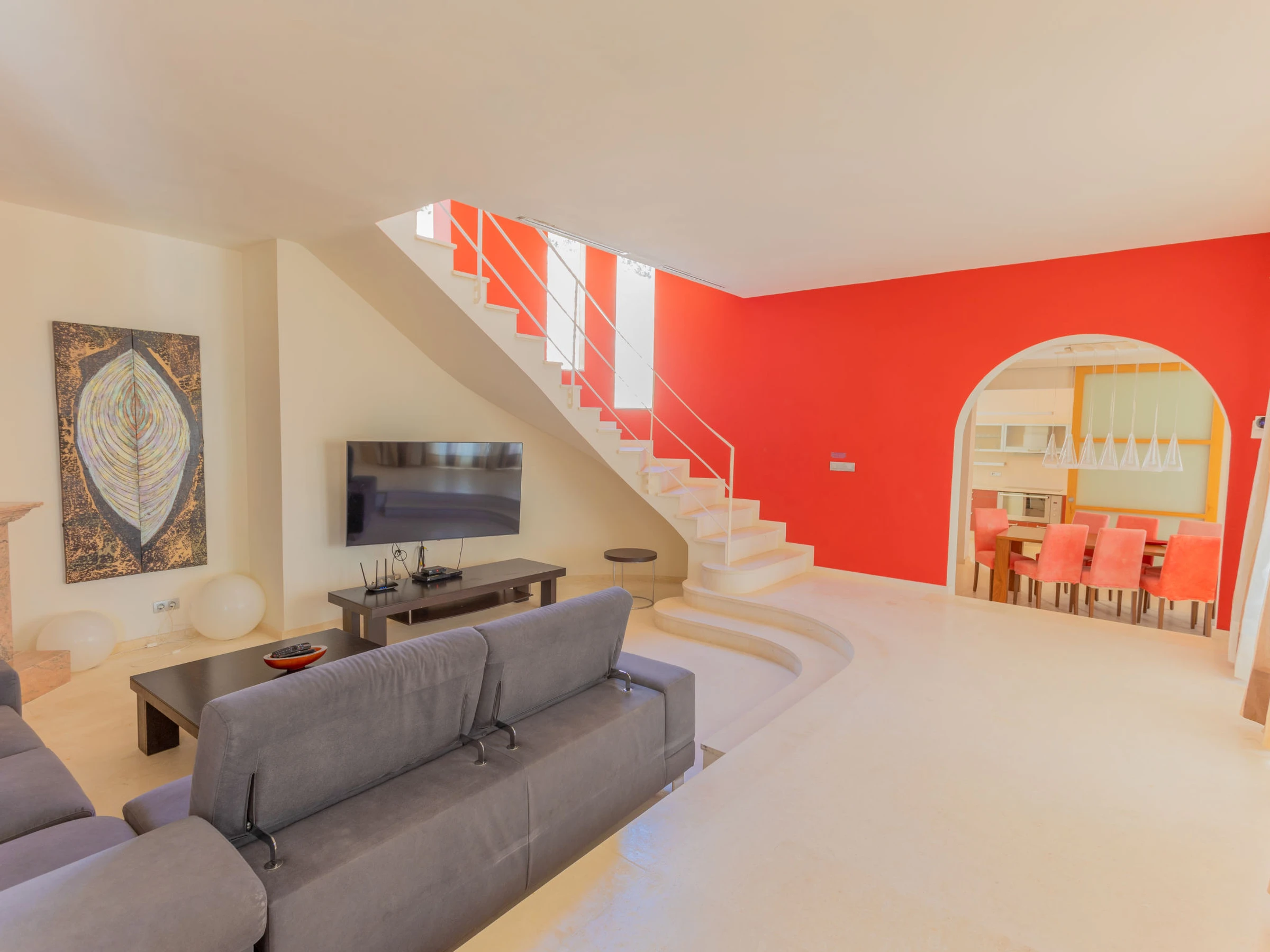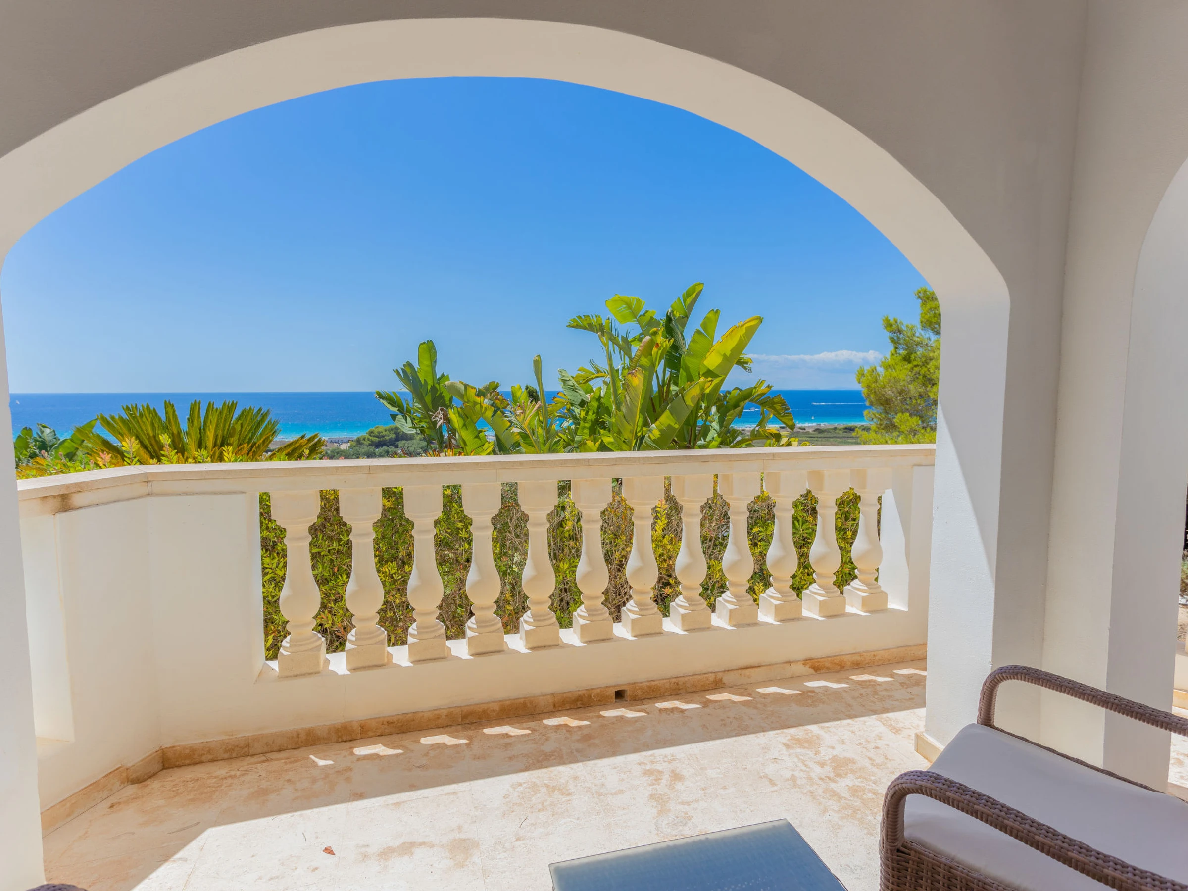Son Bou: Schöne, gemütliche, komfortable Villa "Villa Maitreya", auf 2 Stockwerken. Im Ortszentrum von San Jaime, erhöhte Lage im Villenviertel, 500 m vom Meer, 500 m vom Strand. Zur Alleinbenutzung: wunderschöner Garten zum Entspannen, Schwimmbad eckig (10 x 6 m, 150 cm tief, saisonale Verfügbarkeit: [hidden] - [hidden] Aussendusche, Sitzplatz, Laube, Pergola, Gartenmöbel, Grill. Im Hause: Internetzugang, Wireless LAN, Sprudelbad, Klimaanlage, Alarmanlage, Waschmaschine, Wäschetrockner. Öffentliche Parkplätze auf der Strasse. Einkaufsgeschäft, Lebensmittelgeschäft, Supermarkt, Restaurant, Bar, Café 600 m, Bushaltestelle "Carrer del Prat" 400 m, Sandstrand "Son Bou" 500 m. Bitte beachten: Fahrzeug empfohlen. Babyausstattung auf Anfrage (inkl.). Objekt geeignet für 12 Erwachsene. Der Besitzer akzeptiert keine Jugendgruppen. Flugplatz 20 km vom Haus.