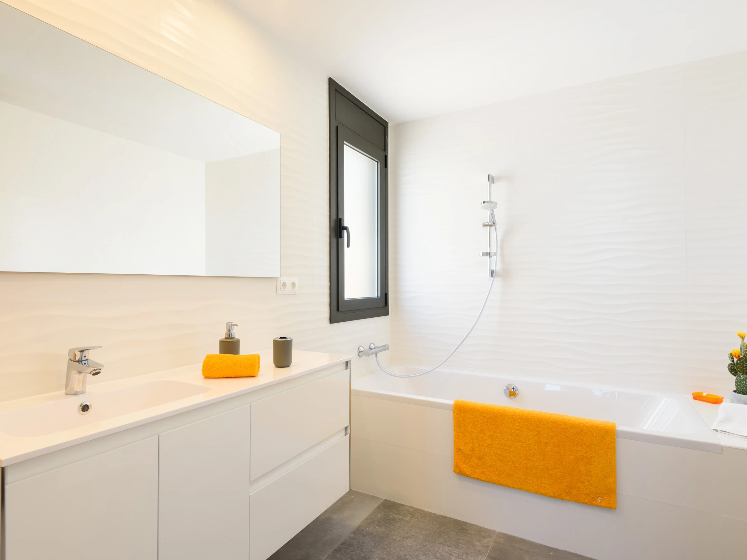 Im Inneren finden Sie alle Annehmlichkeiten, die Sie für einen entspannten Aufenthalt benötigen. Die Küche ist komplett mit modernen Geräten wie Kühlschrank, Gefrierschrank, Geschirrspüler, Ofen, Mikrowelle und Kaffeemaschine ausgestattet. Auch eine Waschmaschine und Kochutensilien sind vorhanden.