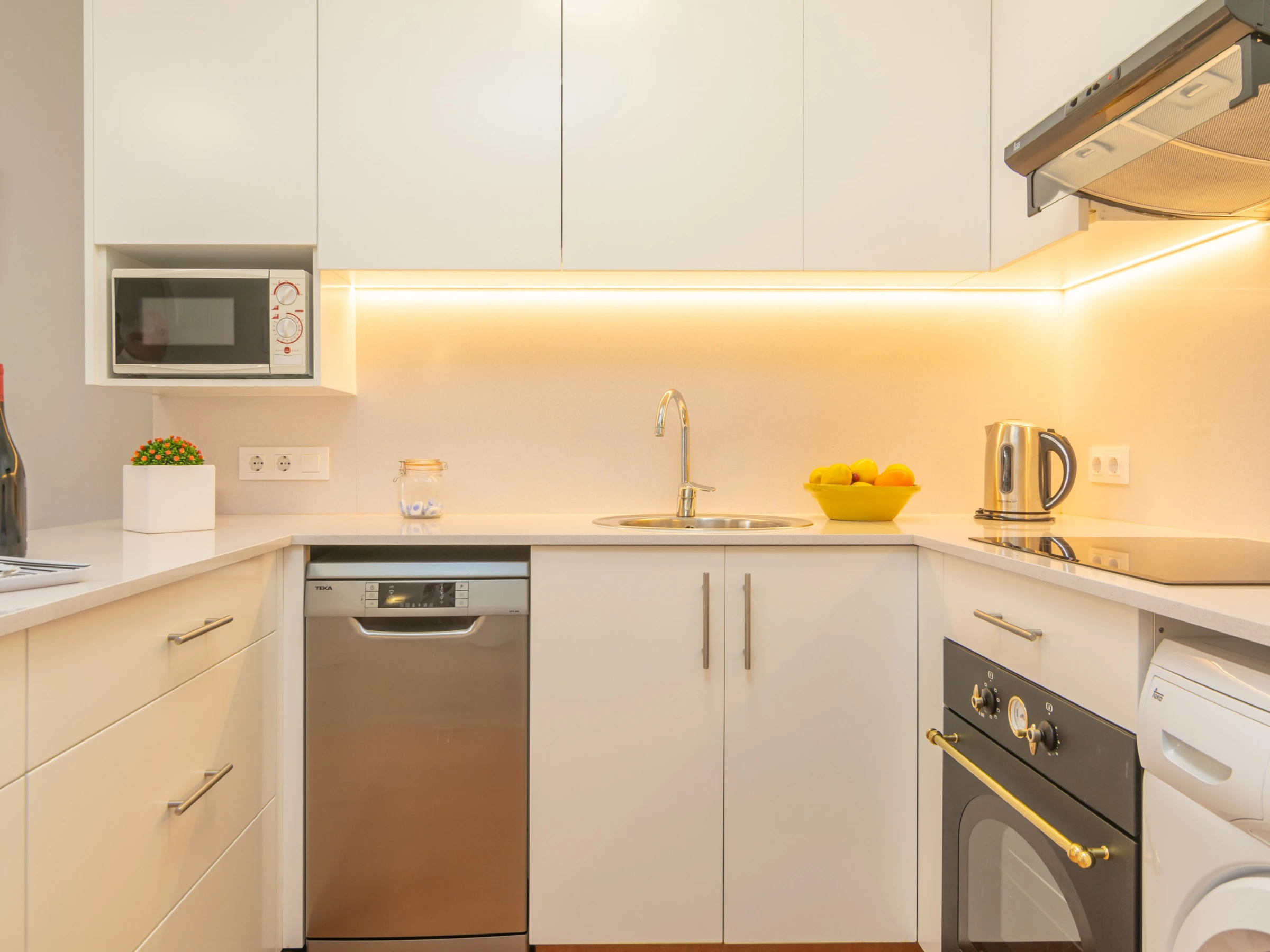 Dieses küche, ist ausgestattet in mikrowelle, gefrierschrank, spülmaschine und toaster.
