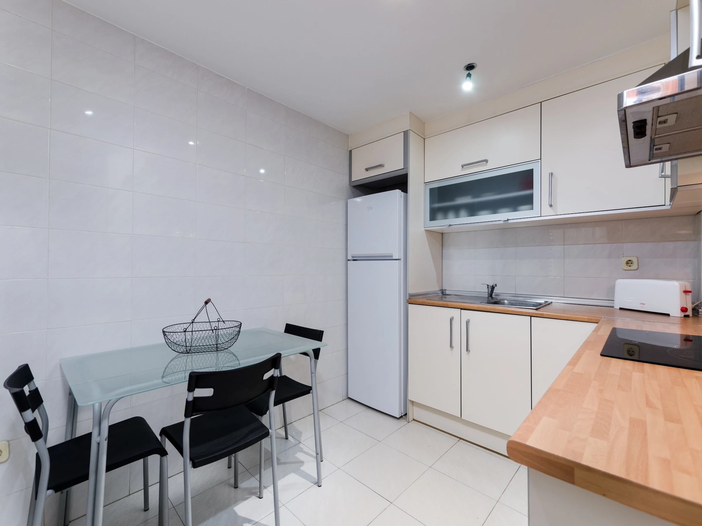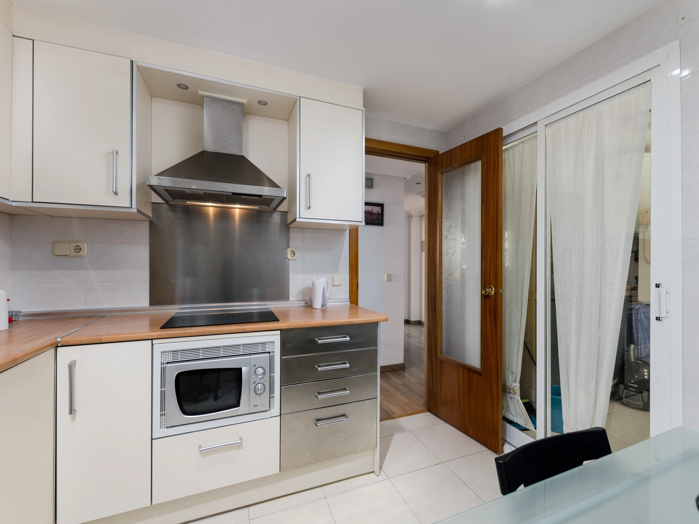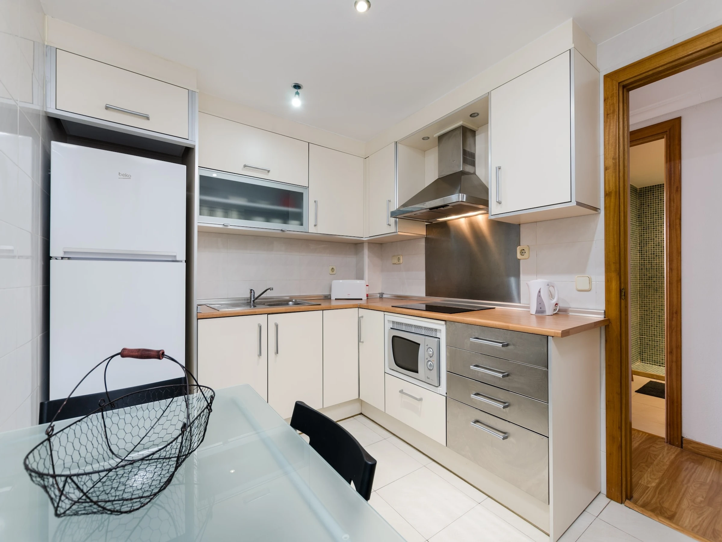 Dieses küche, ist ausgestattet in kühlschrank, mikrowelle und kaffeemaschine.