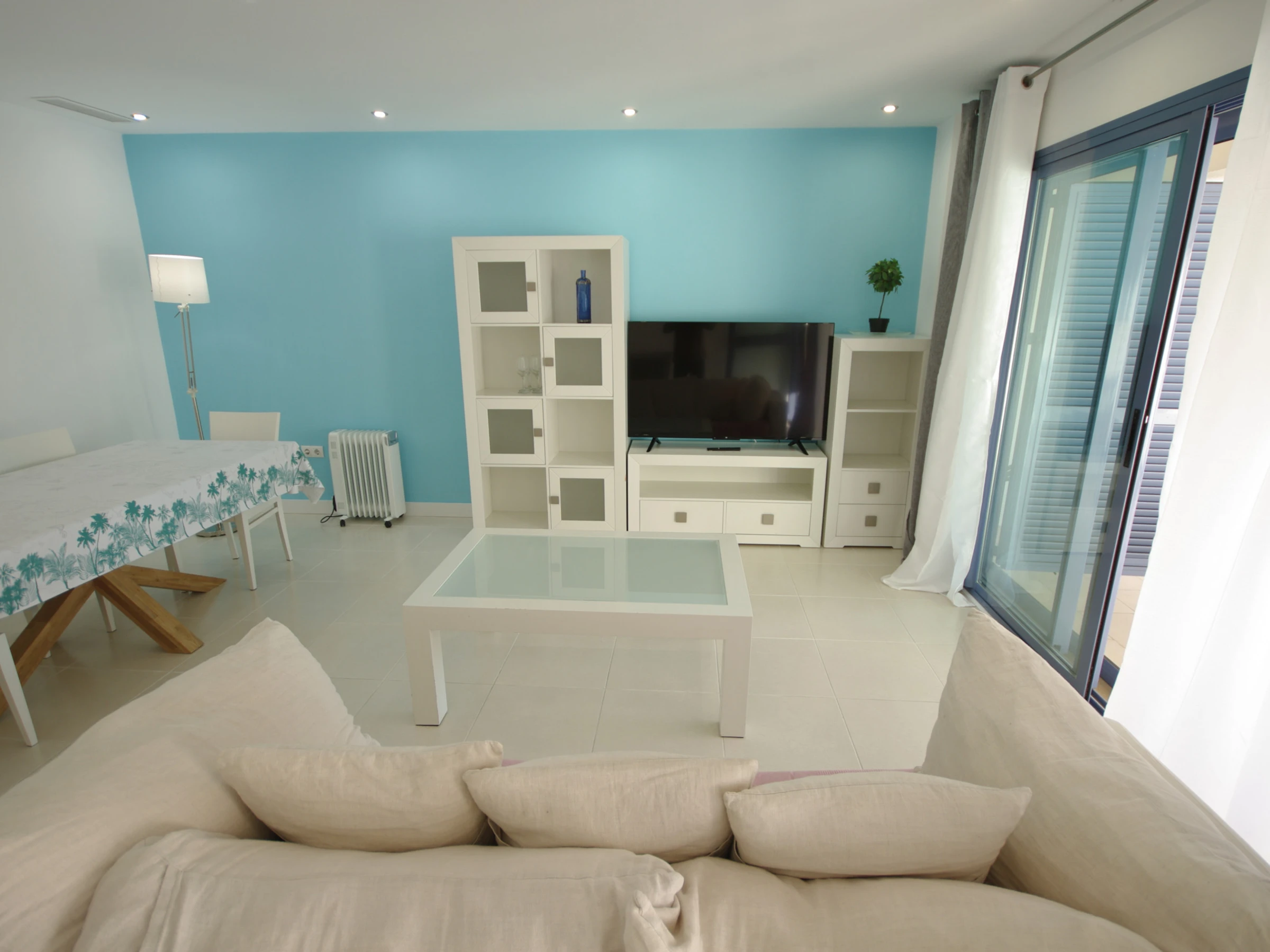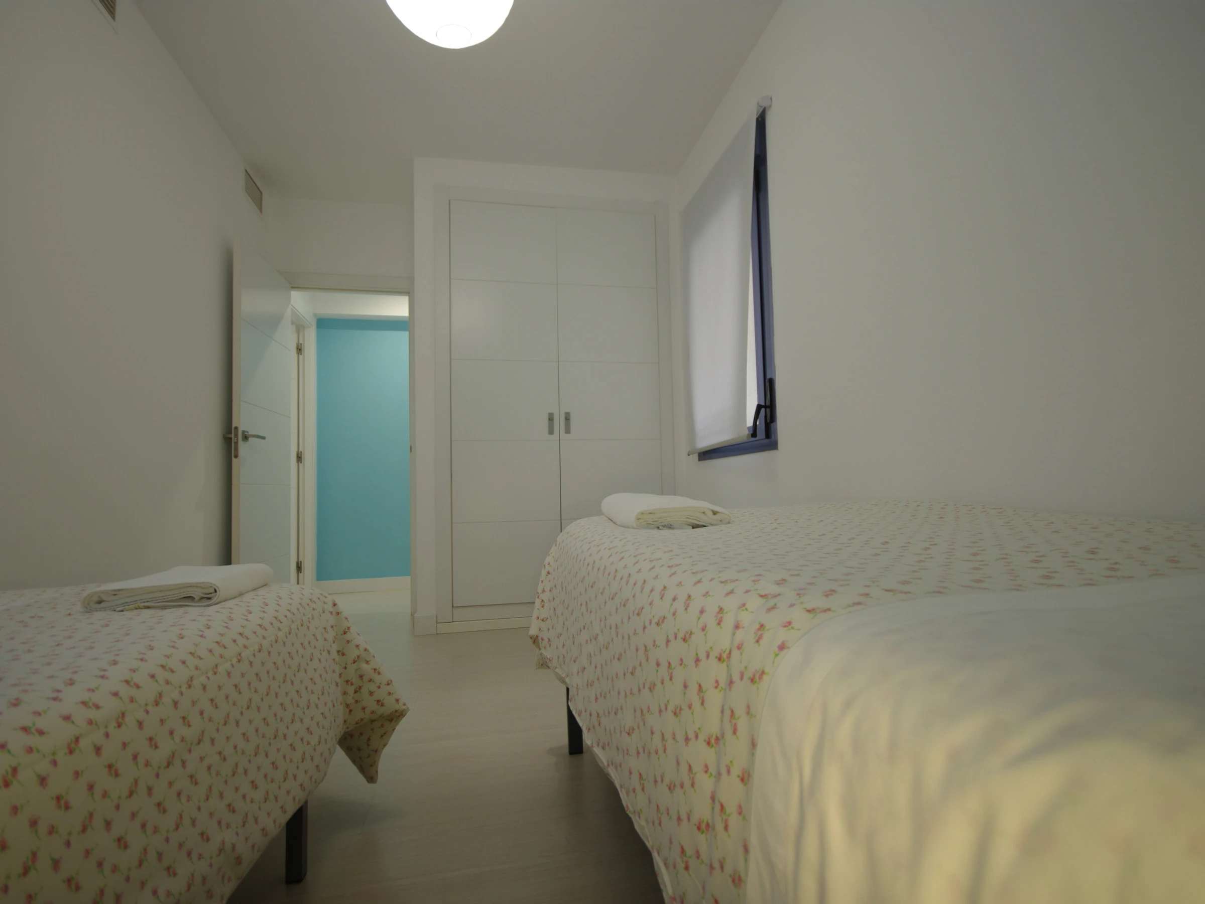 Neben dem geräumigen Wohnzimmer, das einen wunderschönen Blick auf das Meer und die afrikanische Küste bietet, verfügt es über zwei Schlafzimmer: eines mit einem Doppelbett und eigenem Bad und das zweite mit zwei Einzelbetten und einem Ausziehbett.