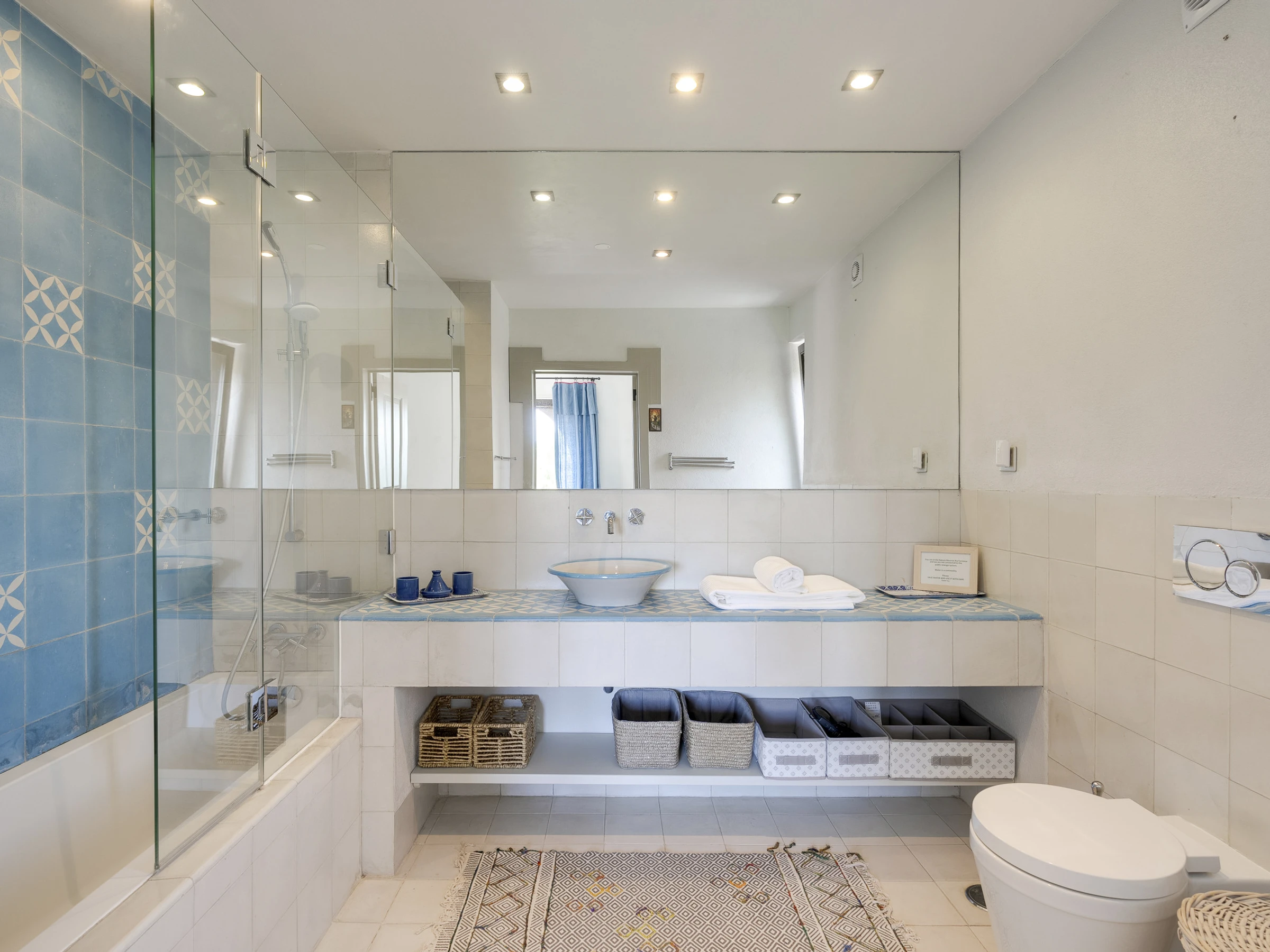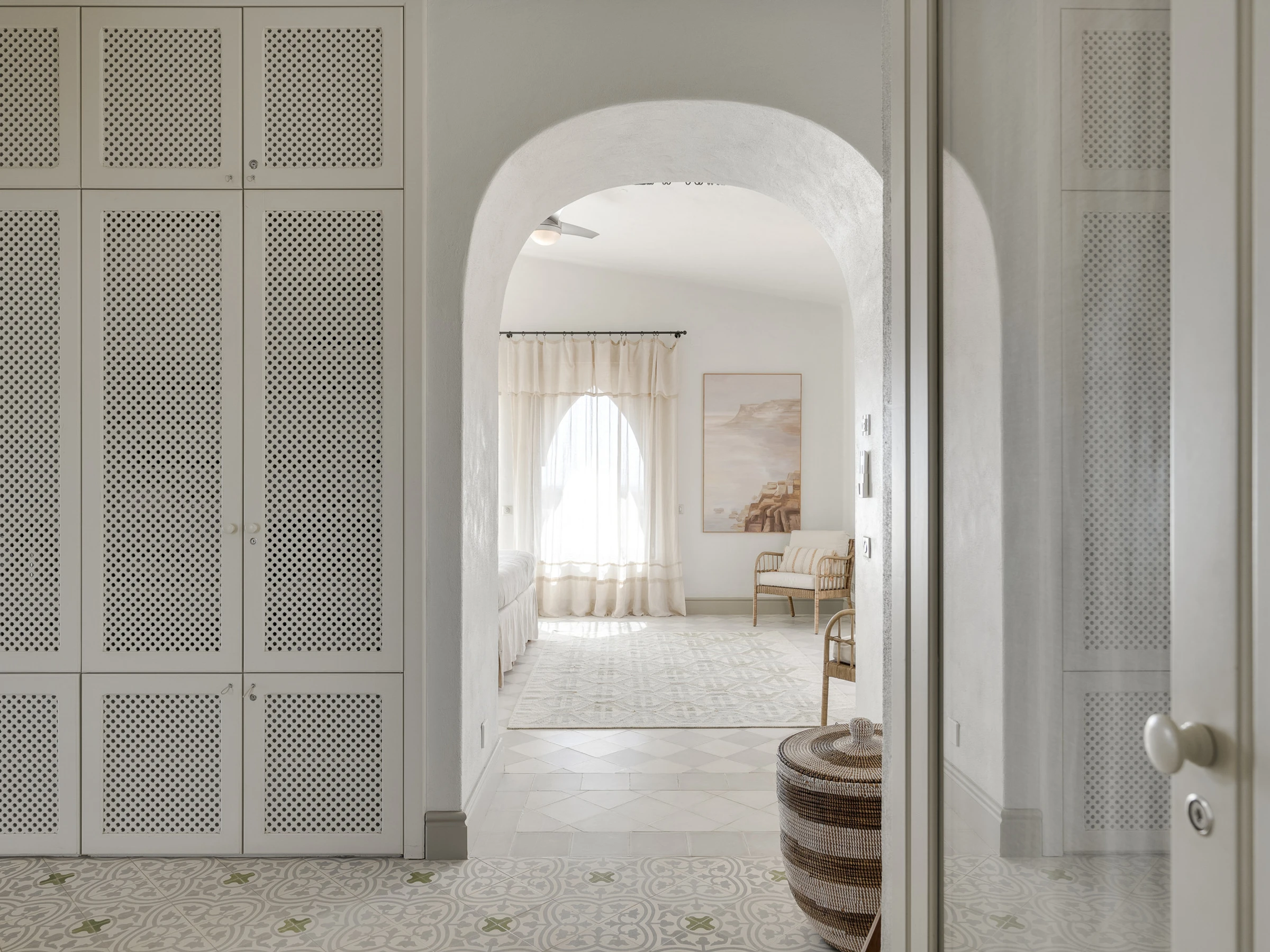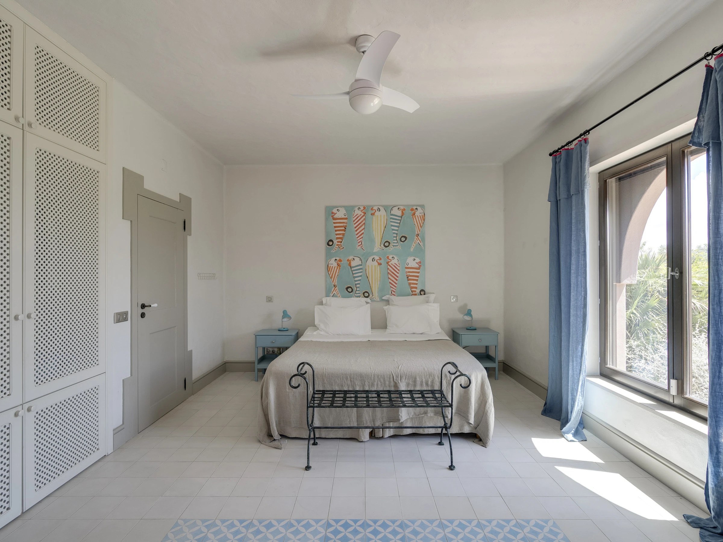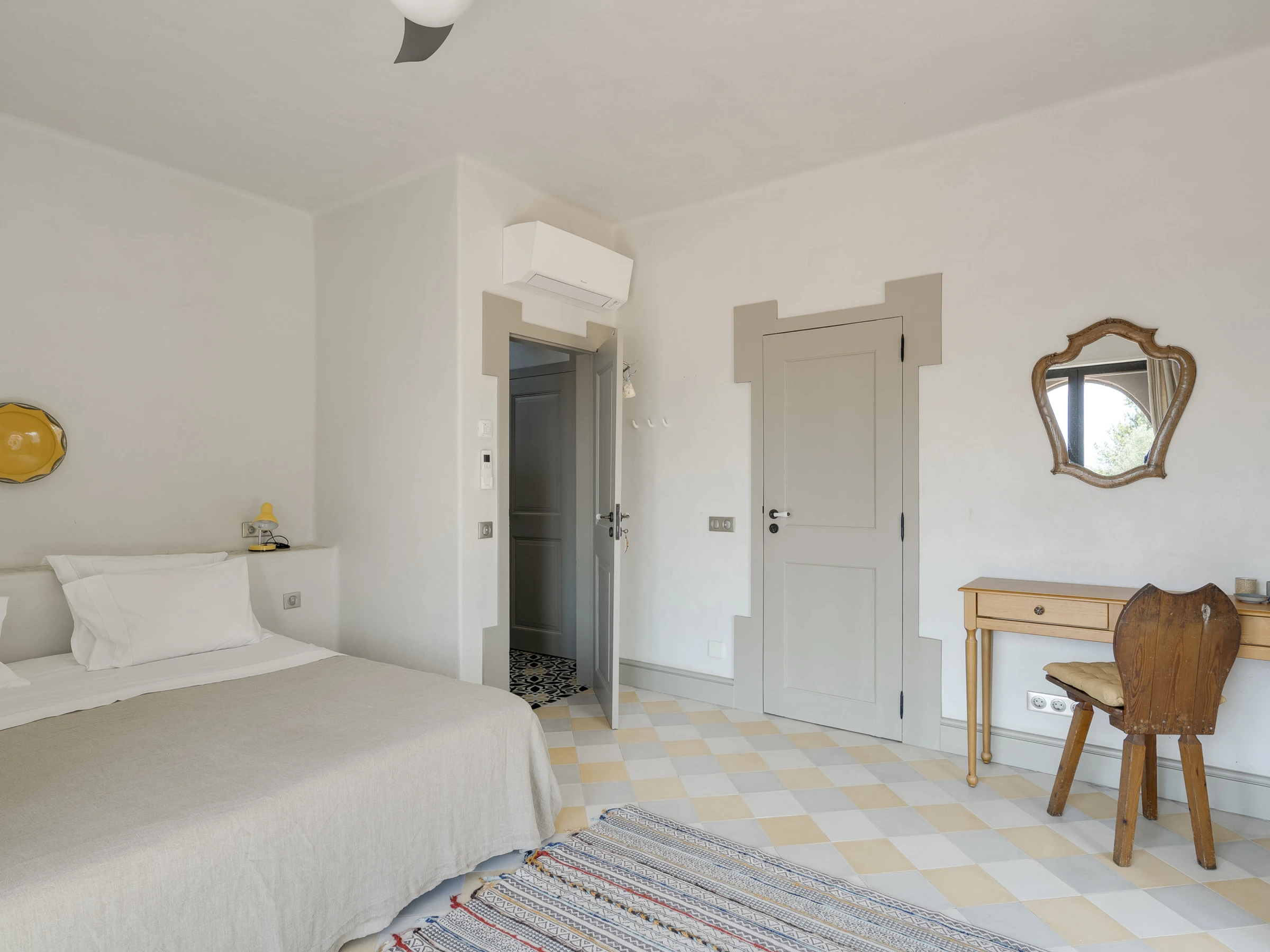 Das Innere ist interessant gestaltet mit Details wie maurischen Bögen, Gewölbedecken, Kacheln, farbenfrohen Textilien und massiven Holztüren, die einen in eine andere Welt versetzen.