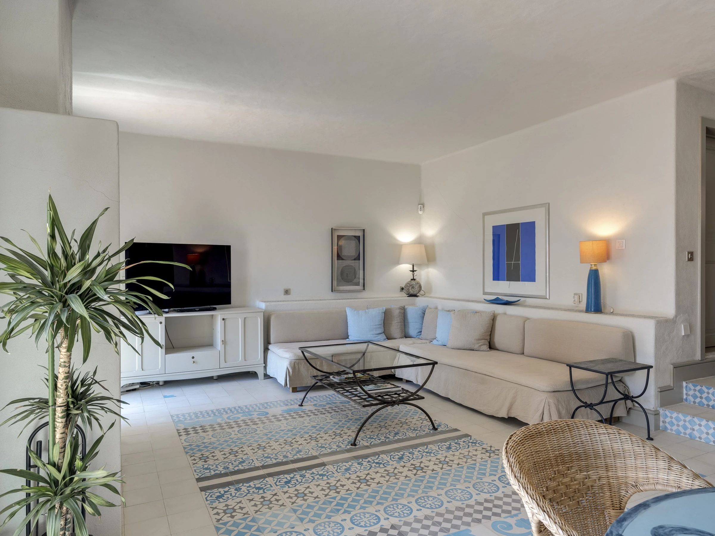 Das Haus verfügt über eine Fußbodenheizung für gemütliche Winter, Solarpanels, Deckenventilator und Klimaanlagen in jedem Raum. Draußen befindet sich ein Pétanque-Sandkasten im Garten, um Boule- oder Boccia-Spiele zu genießen. Zusätzlich zu mehreren sonnigen Terrassen ist ein geschlossener maurischer Innenhof mit einer überdachten Grillunterhaltungszone zwischen den privaten Olivenhainen der Villa eingebettet. Einladend zum Leben im Freien, das ganze Jahr über.