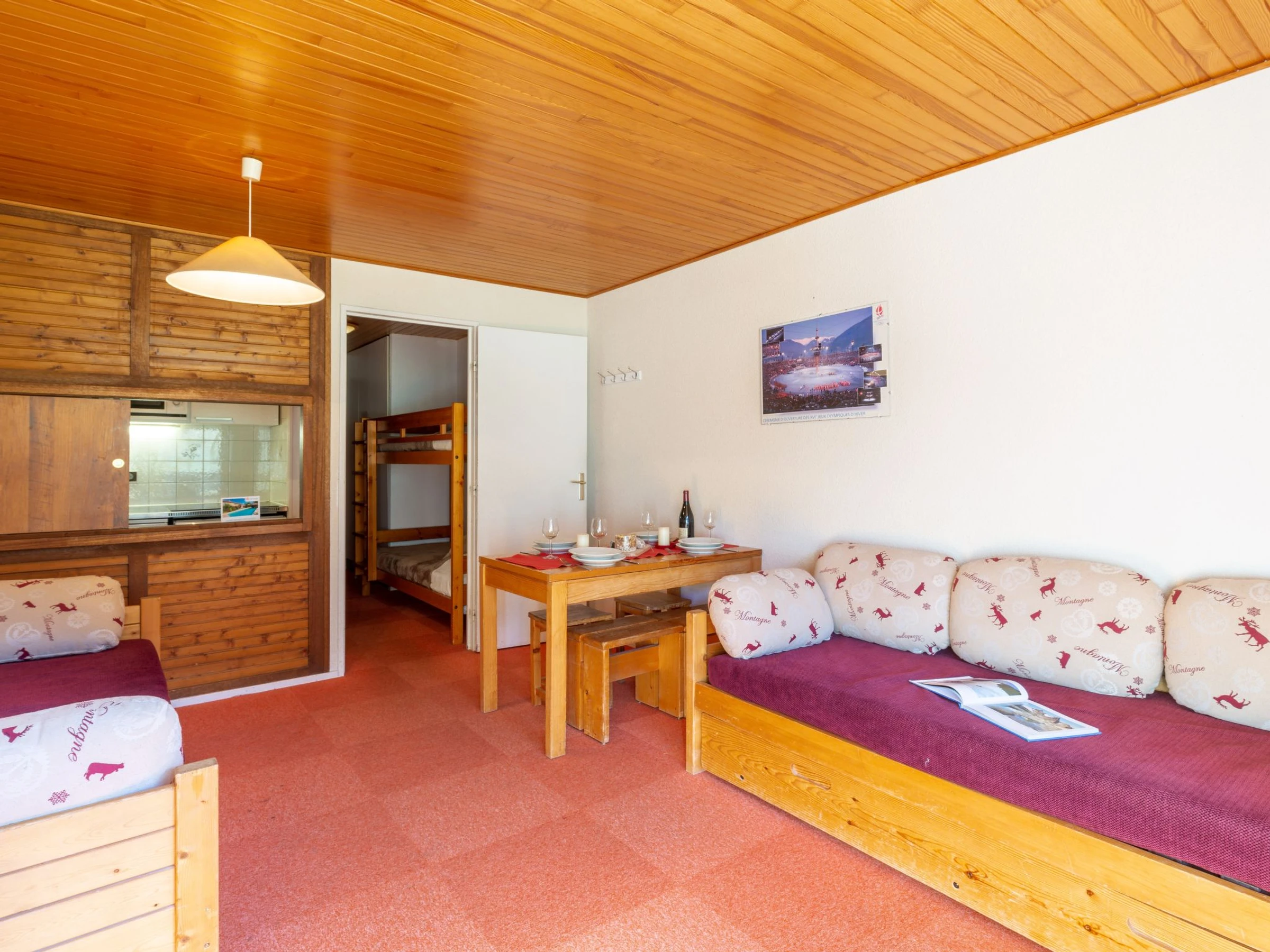 1-Zimmer-Wohnung 27 m2 im 6. Stock. Einfach eingerichtet: Wohn-/Esszimmer mit 1 Ausziehbett (2 x 80 cm), Flachbildschirm. Eingang mit 1 x 2 Etagenbetten (80 cm). Kochnische (4 Kochplatten, Mini-Backofen, Geschirrspüler, Toaster, Wasserkocher, elektrische Kaffeemaschine). Bad/WC. Balkon, Südlage. Sehr schöne Panoramasicht auf die Berge und die Skipiste. Zur Verfügung: Internet (Wireless LAN, extra). Bitte beachten: Rauchmelder. Inserat einer Privatperson nach Artikel [hidden], IV, CGI.