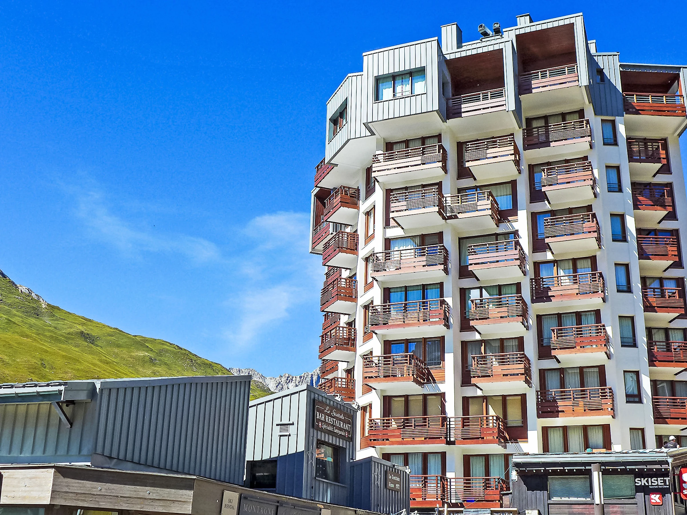 Tignes Val Claret: Im Einkaufszentrum Residenz "Le Curling B (Val Claret)", auf 6 Stockwerken. Im Ortszentrum von Tignes le Val Claret, 200 m vom Skigebiet. In der Anlage: Fahrstuhl, Skiraum, Zentralheizung. Öffentliches Parkhaus in 200 m, extra. Einkaufsgeschäft, Supermarkt 20 m, Restaurant 10 m, Bar 5 m, Bäckerei 10 m, Bushaltestelle 300 m, Hallenbad 2 km. Sportzentrum 800 m, Skisportanlagen 200 m, Skischule. Bekannte Skigebiete sind gut erreichbar: Espace Killy. Bitte beachten: Gratis Skibus. Bei guter Schneelage Zufahrt mit den Skiern bis zum Haus. Nacht Club/Disco in der Nähe 150 m vom Haus. Weitere Unterkünfte sind buchbar.
