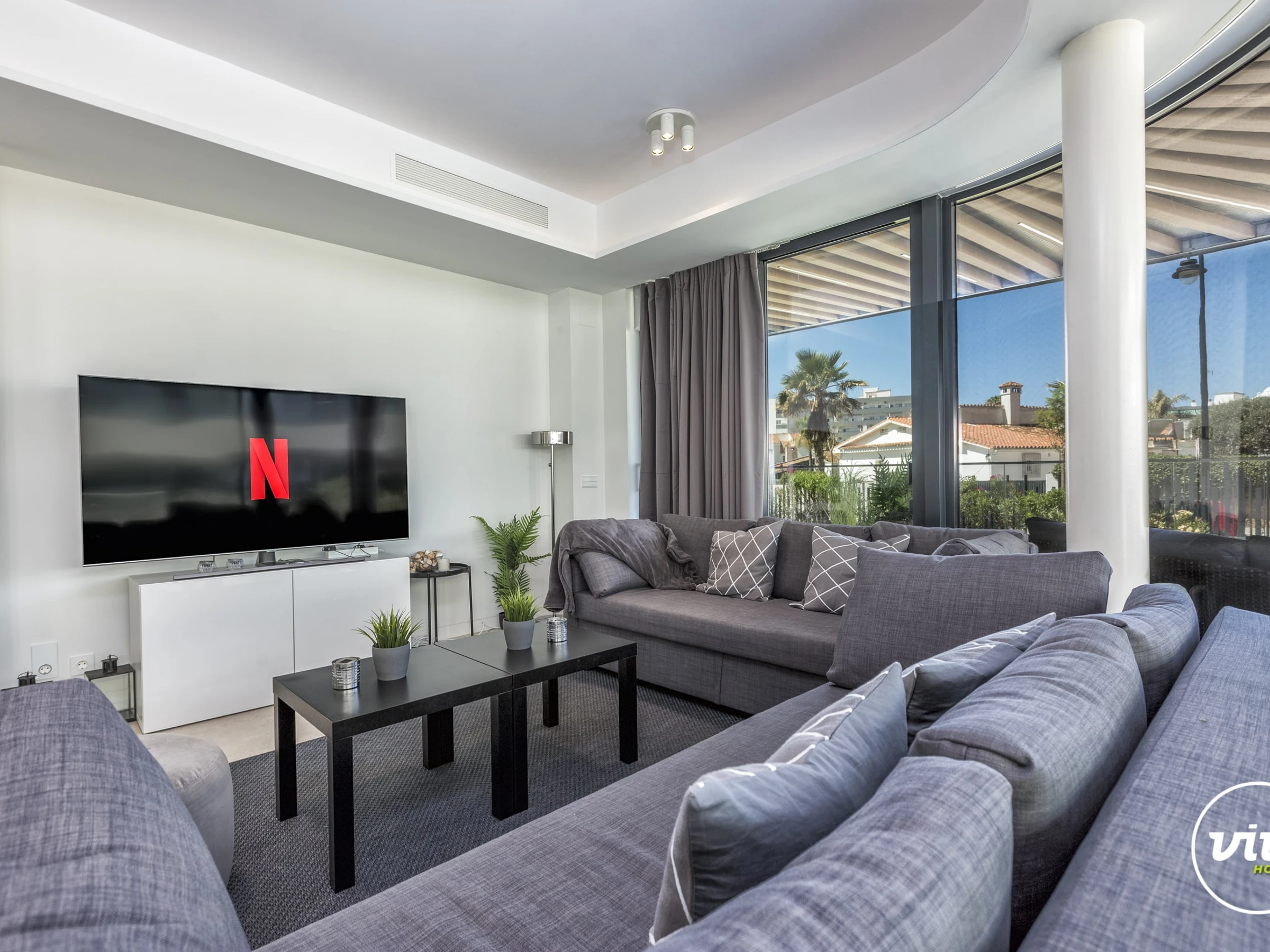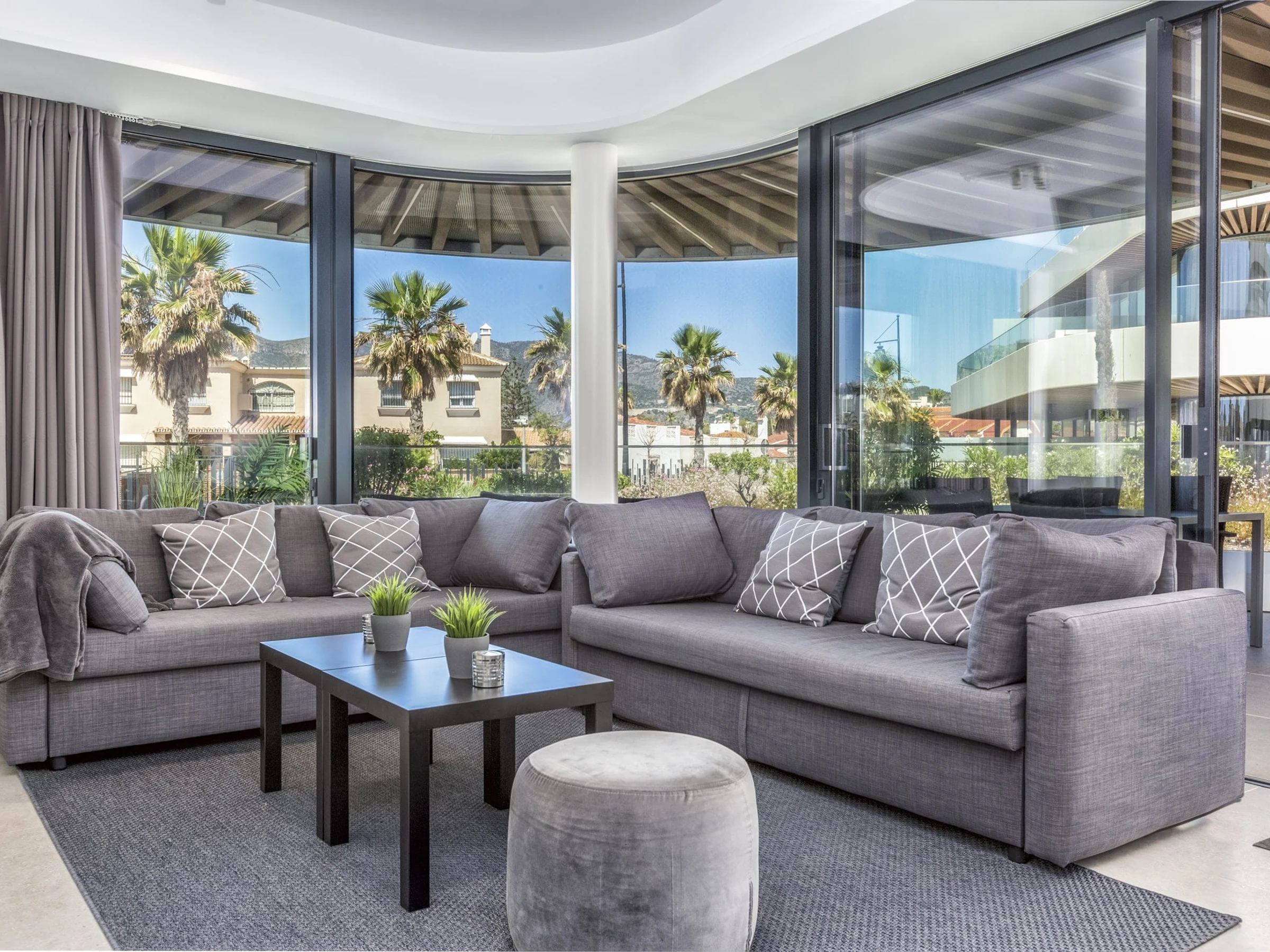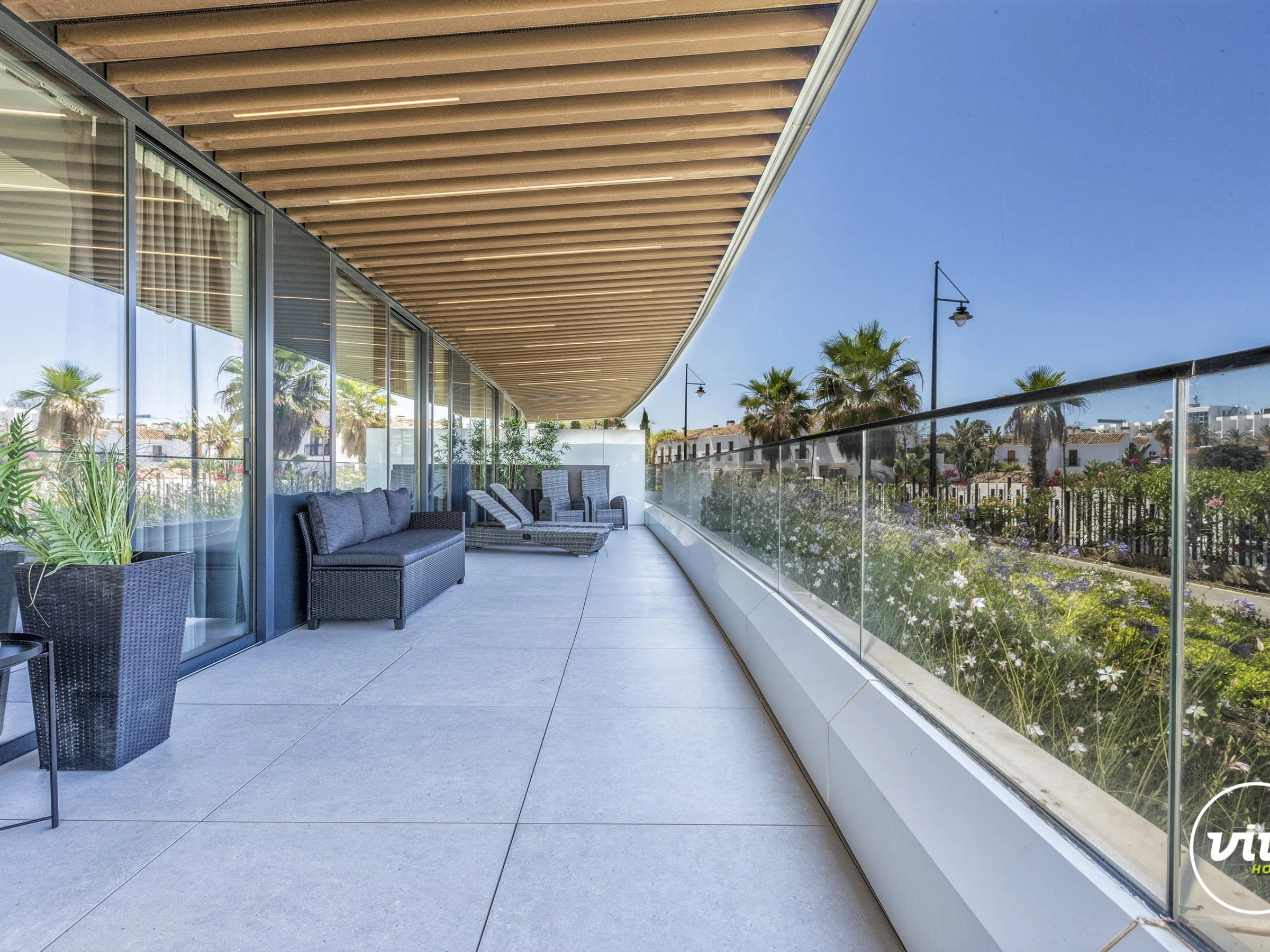 Die Unterkunft verfügt über garten, gartenmöbel, umzäuntes grundstück, 45 m² terrasse, waschmaschine, bügeleisen/-brett, safe, internet (WLAN), haartrockner, fitnessraum, spa, zentralheizung, klimaanlage in der ganzen unterkunft, swimming-pool privater pool, garage in auf dem grundstück, 1 Fernseher.