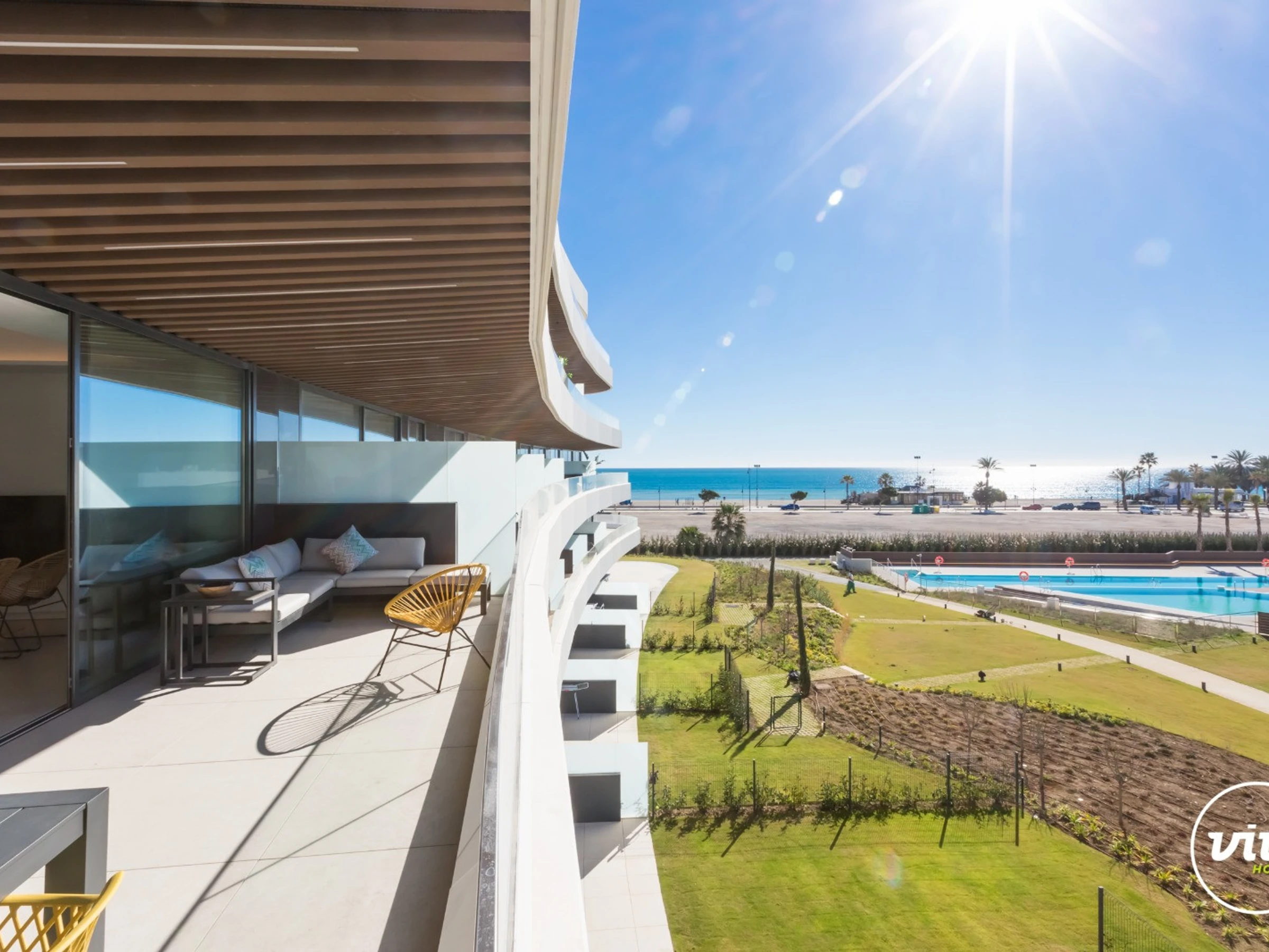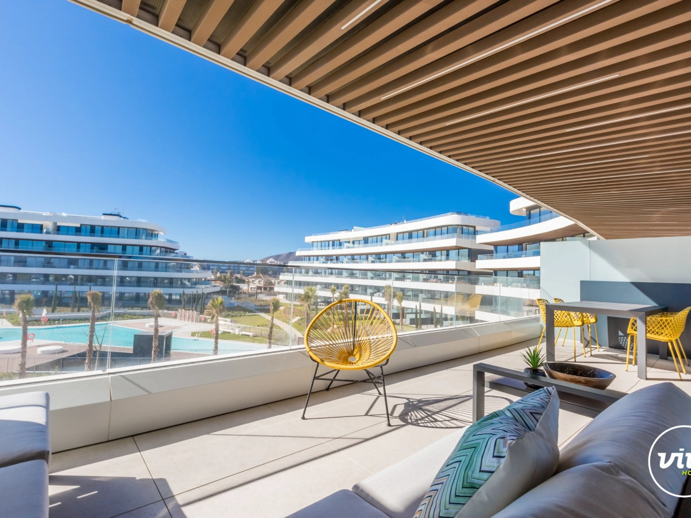 Die Unterkunft verfügt über aufzug, gartenmöbel, umzäuntes grundstück, 26 m² terrasse, waschmaschine, bügeleisen/-brett, safe, internet (WLAN), haartrockner, fitnessraum, zentralheizung, klimaanlage in der ganzen unterkunft, swimming-pool gemeinschaftlicher swimming pool + kinderbecken, garage in auf dem grundstück, 1 Fernseher.