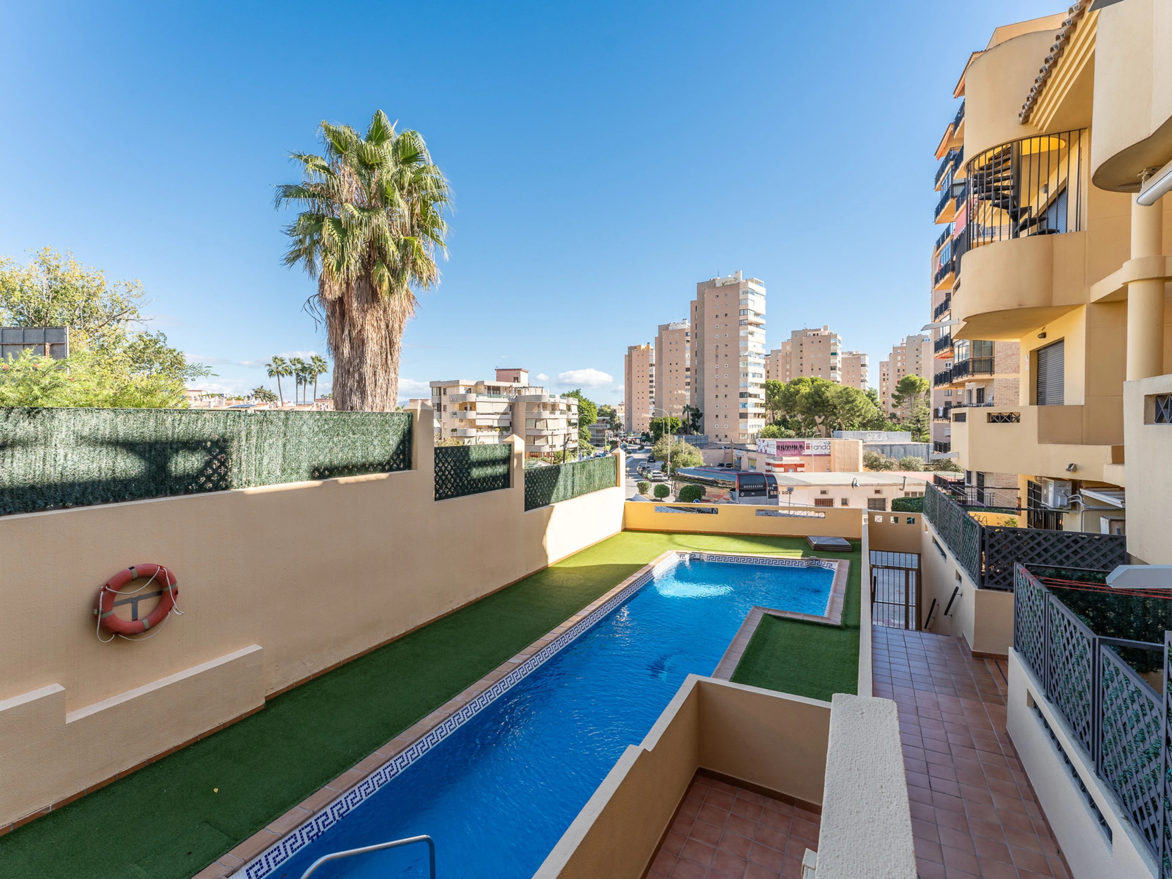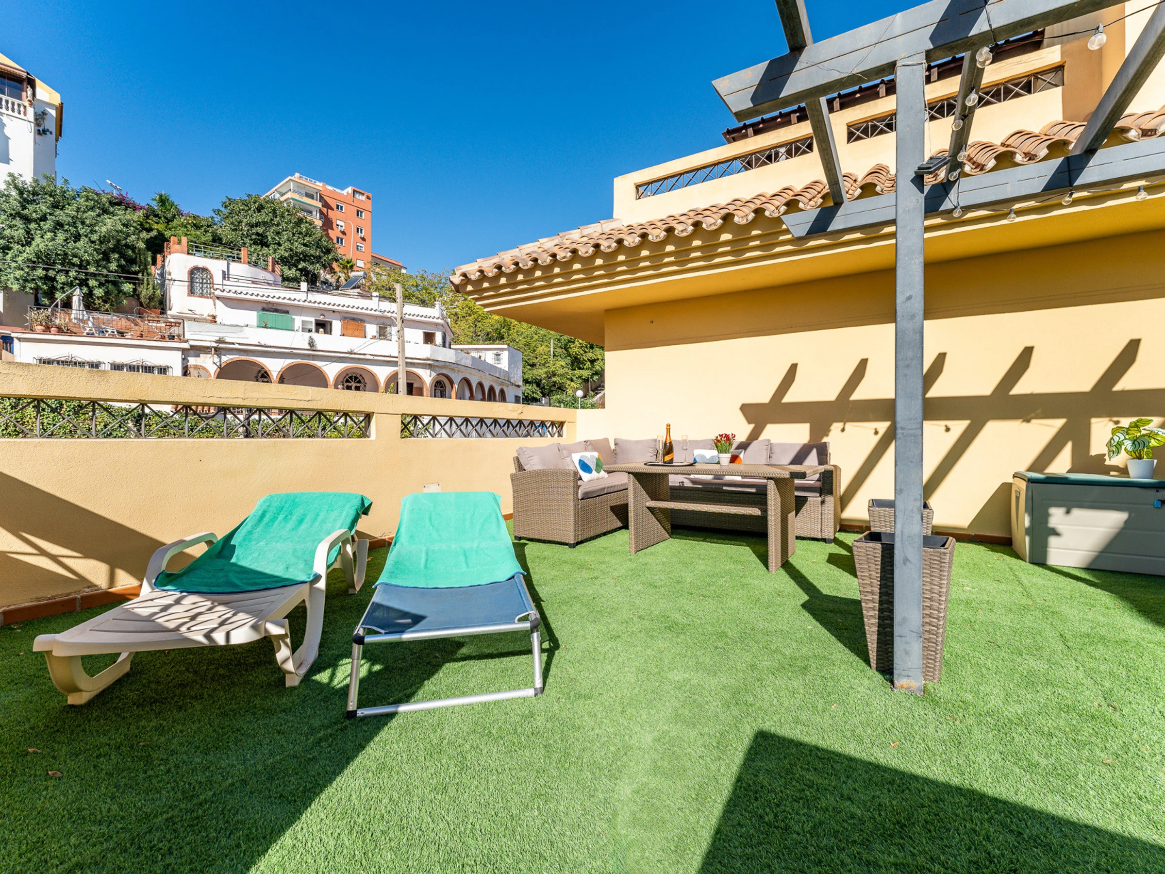 Die Unterkunft verfügt über aufzug, garten, gartenmöbel, 15 m² terrasse, waschmaschine, bügeleisen/-brett, internet (WLAN), haartrockner, heizung, klimaanlage, swimming-pool gemeinschaftlicher swimming-pool, garage in auf dem grundstück, 1 ventilator, 1 Fernseher.