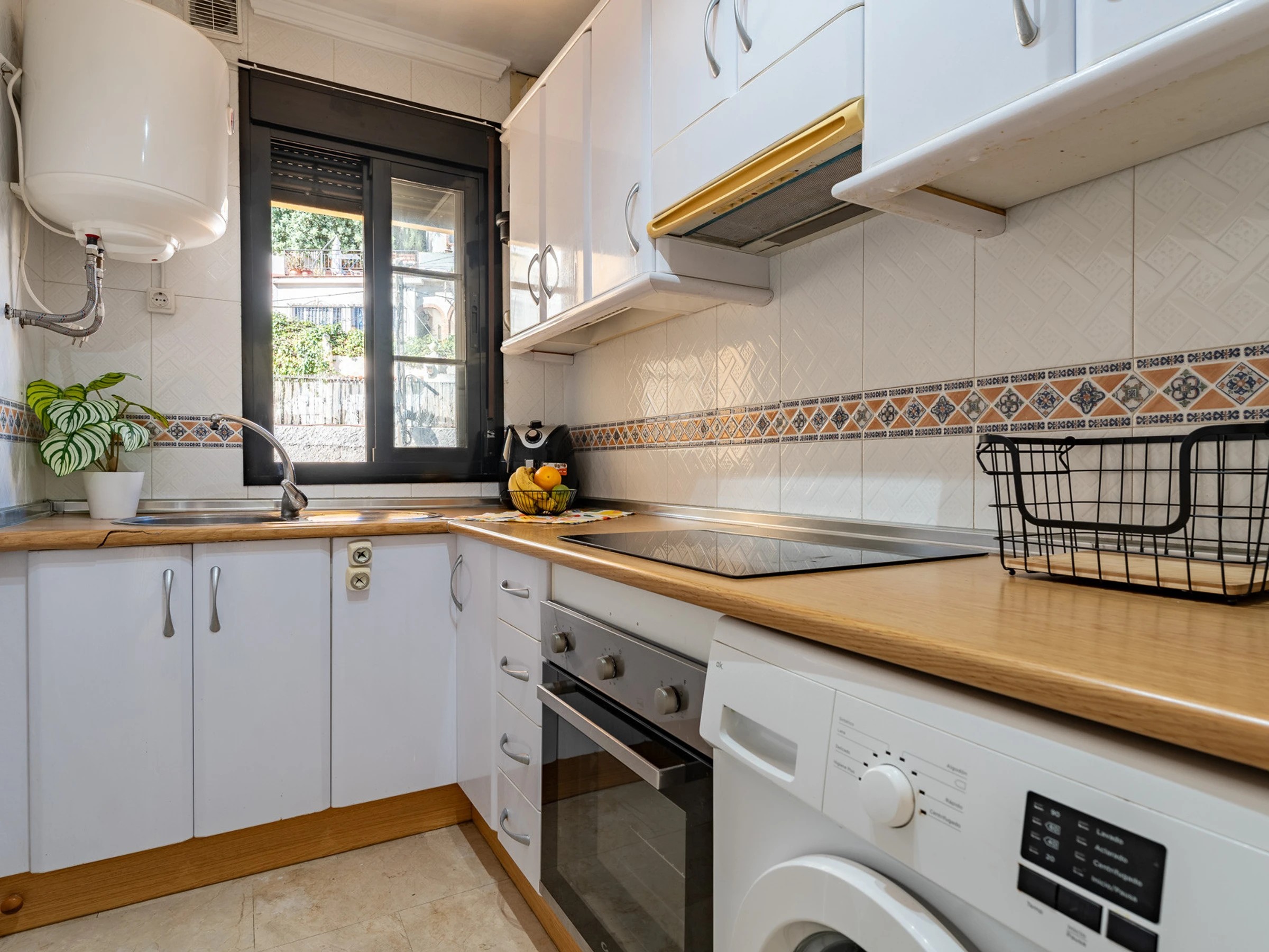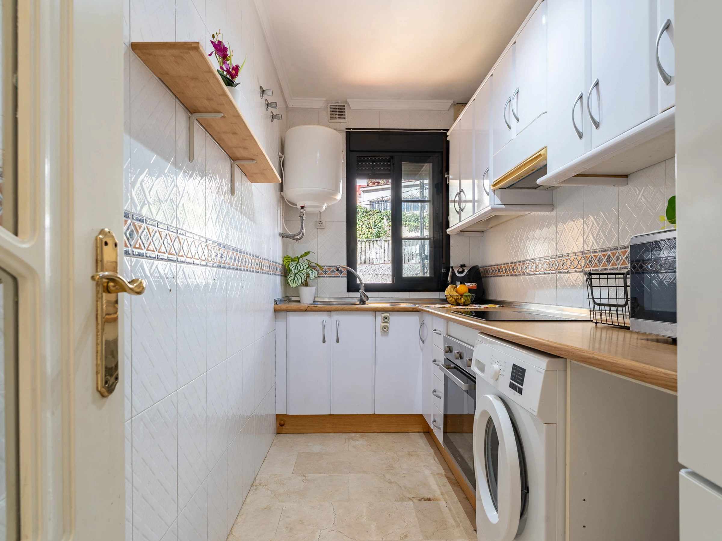 Dieses separate küche, mit ceranfeld, ist ausgestattet in kühlschrank, mikrowelle, backofen, gefrierschrank, geschirr/besteck, kochutensilien, kaffeemaschine, toaster, wasserkocher und saftpresse.