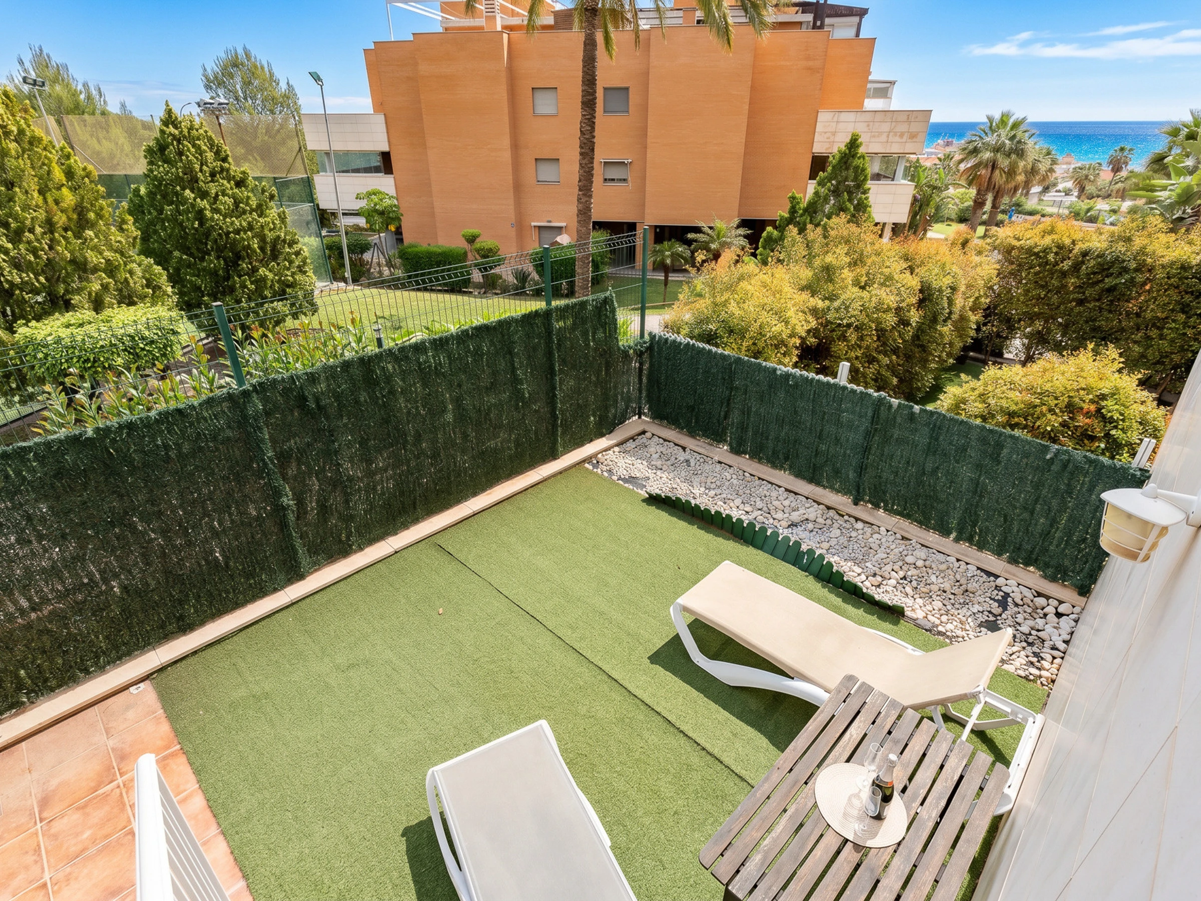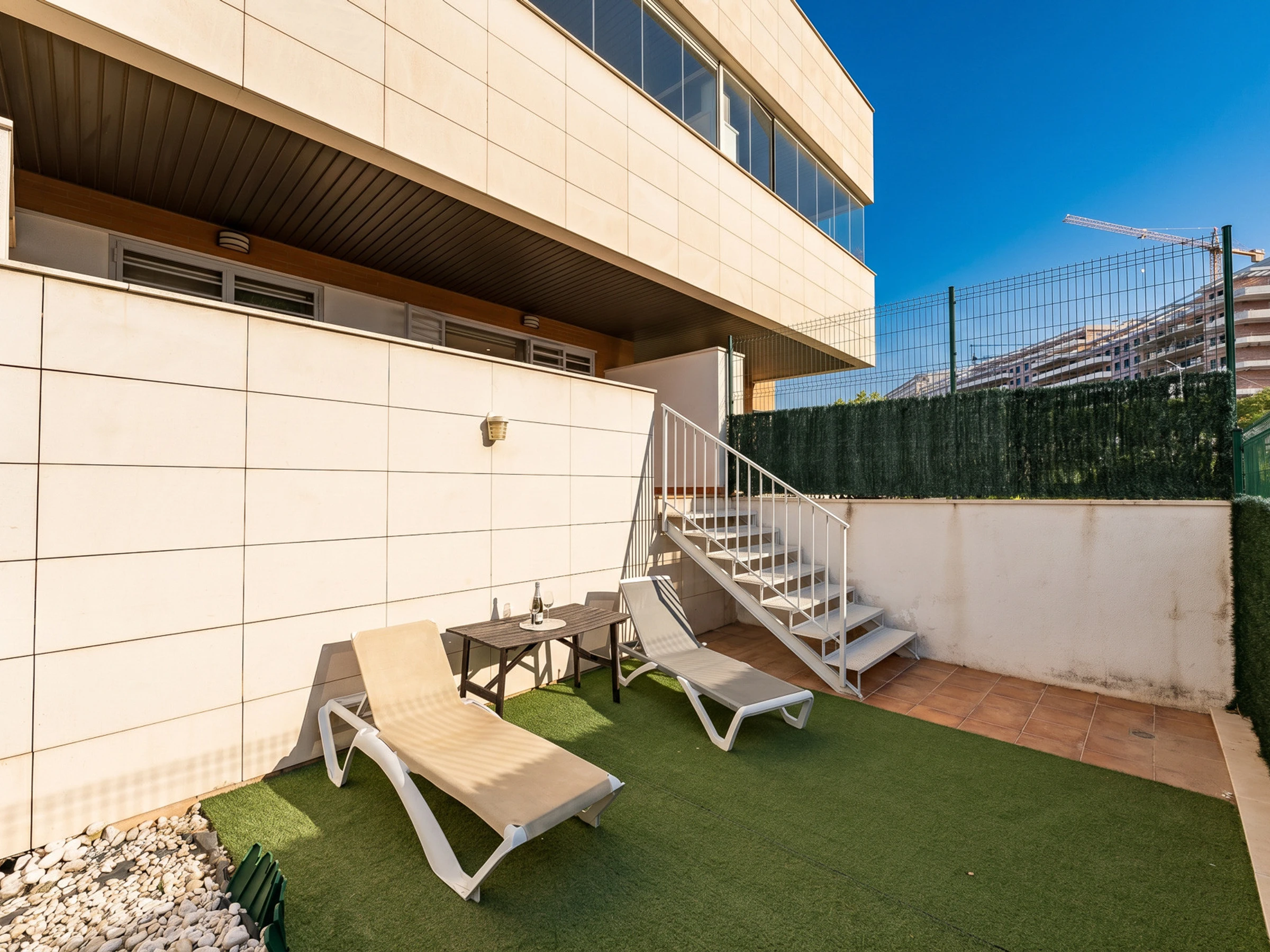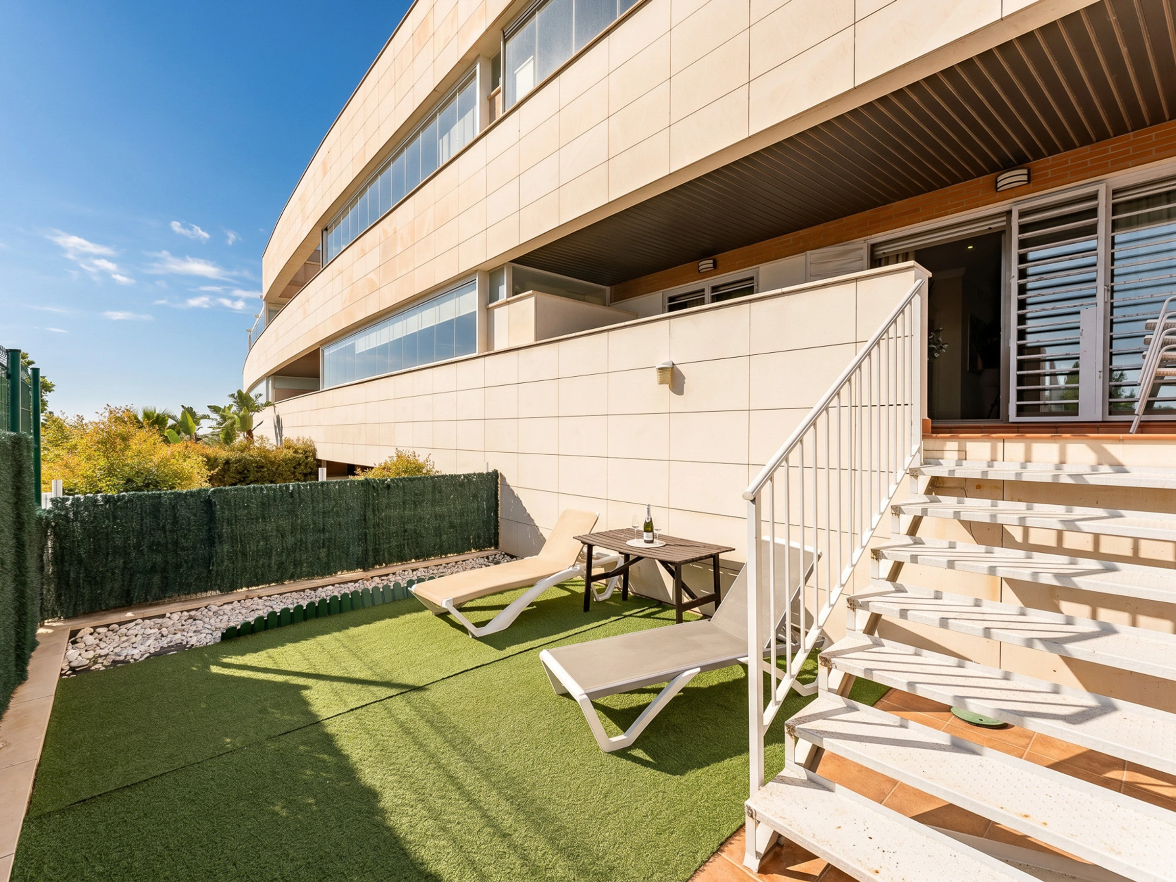 Die Unterkunft verfügt über aufzug, garten, gartenmöbel, 15 m² terrasse, waschmaschine, bügeleisen/-brett, internet (WLAN), haartrockner, zentralheizung, klimaanlage in der ganzen unterkunft, swimming-pool gemeinschaftlicher swimming-pool, überdachter parkplatz in auf dem grundstück, 2 Fernsehgeräte.