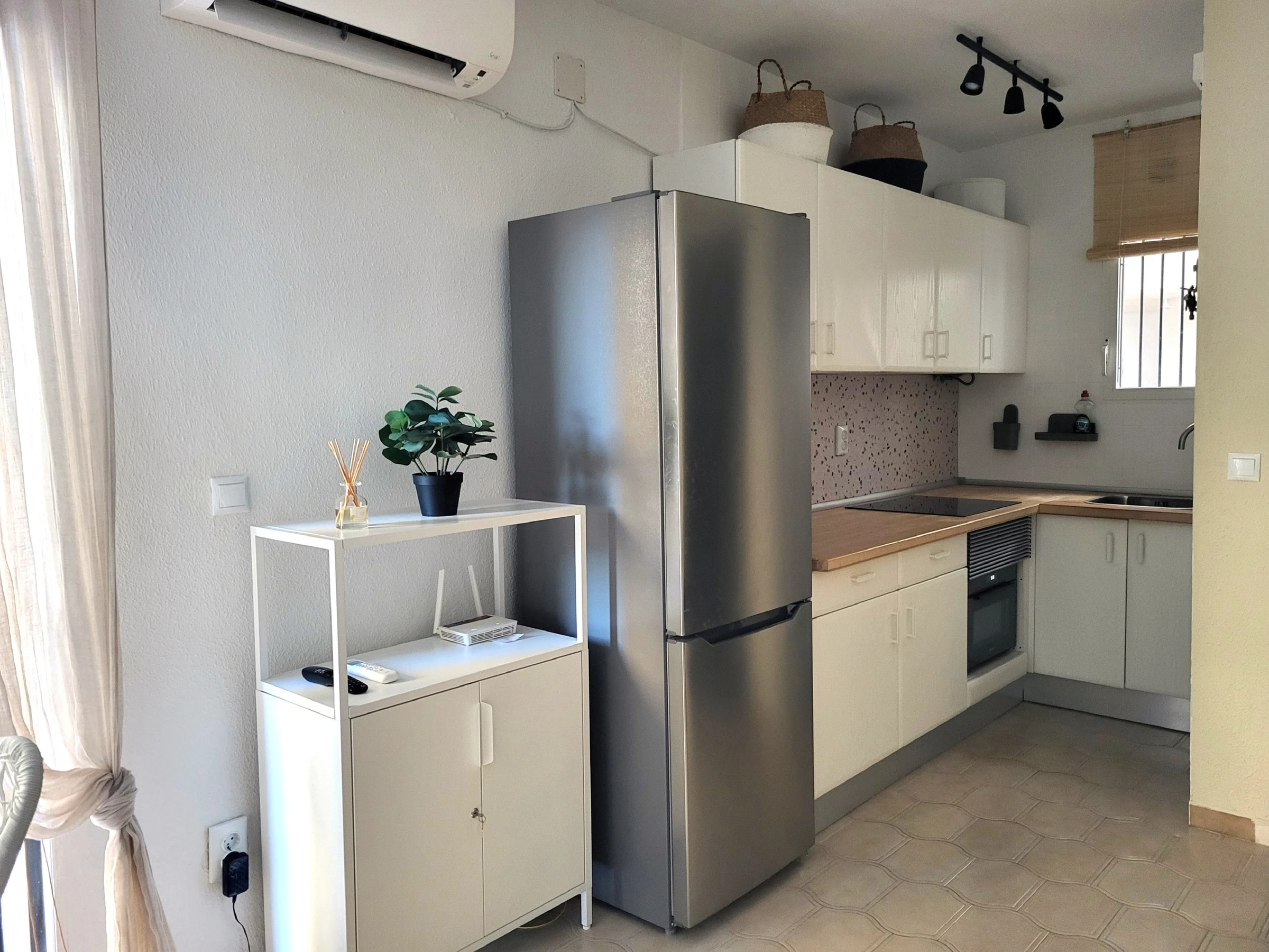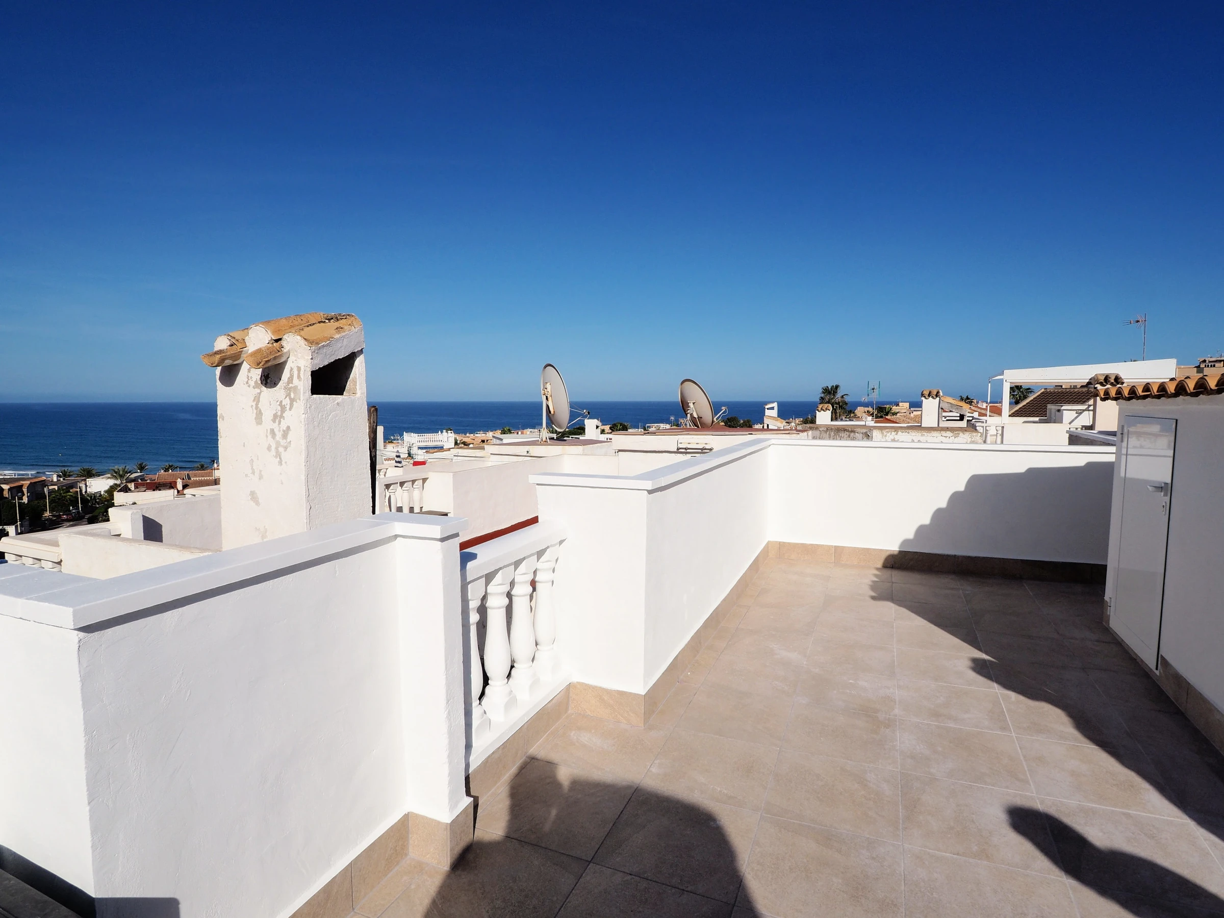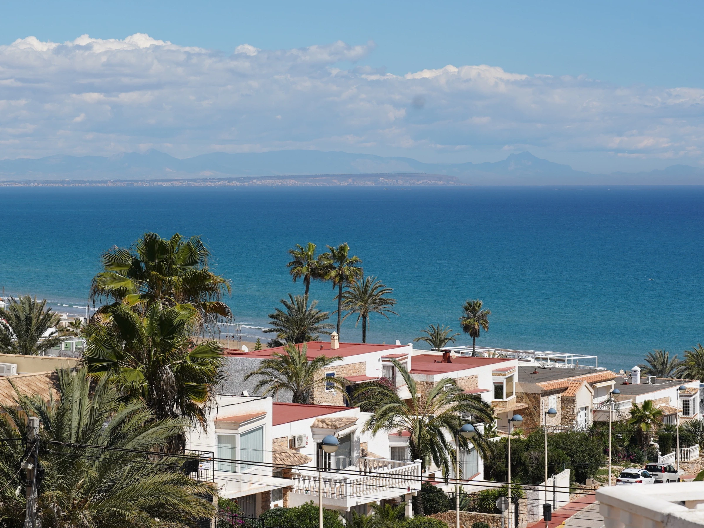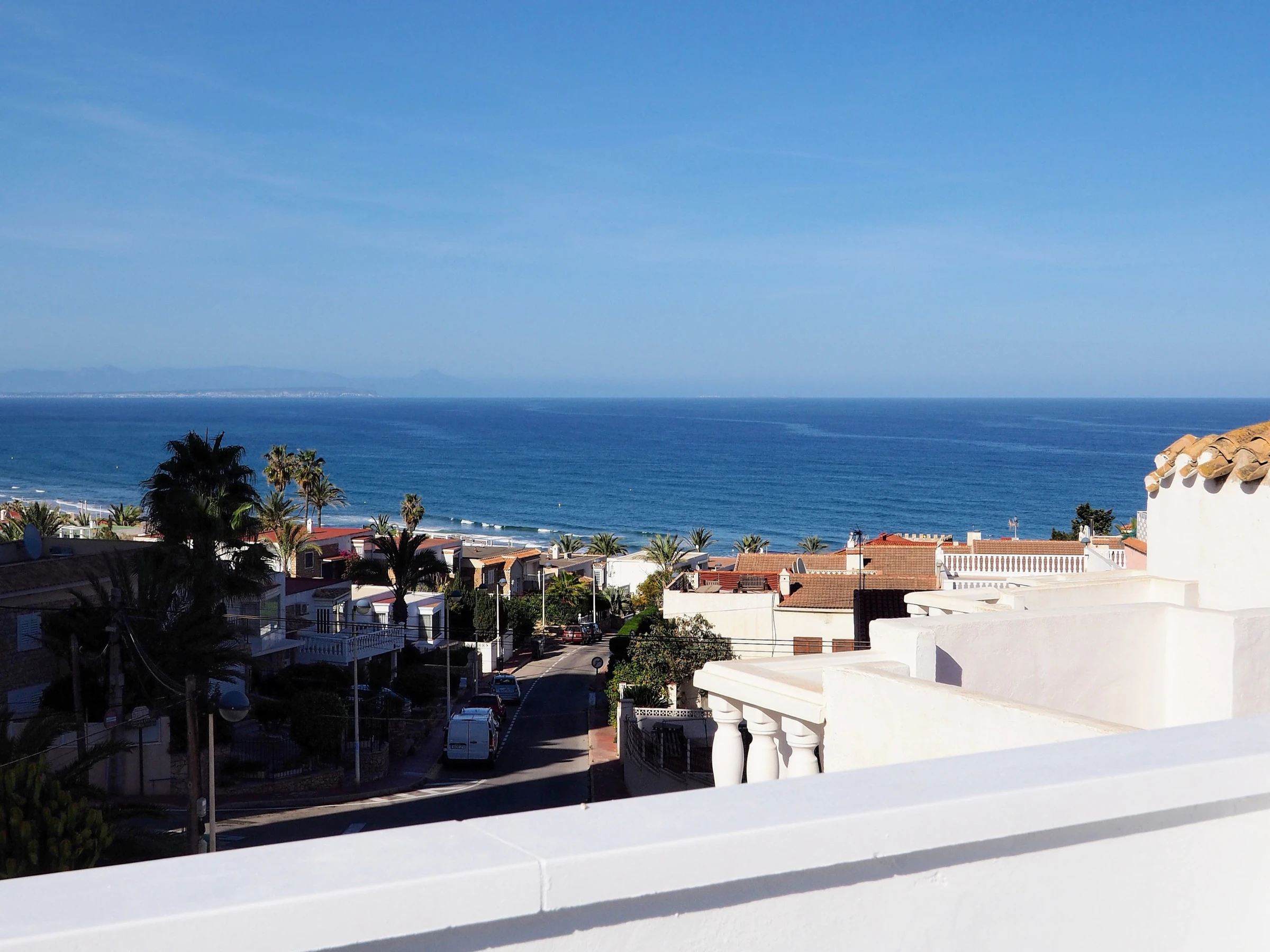 Der schöne Bungalow mit 2 Etagen und Grillplatz und Solarium mit Meerblick befindet sich in Torrevieja im Stadtteil Torrelamata. Es verfügt über 2 Schlafzimmer mit 1 Doppelbett und 2 Einzelbetten, nur 650 m vom Strand Cabo Cervera entfernt, einem der schönsten Sandstrände in Torrevieja.