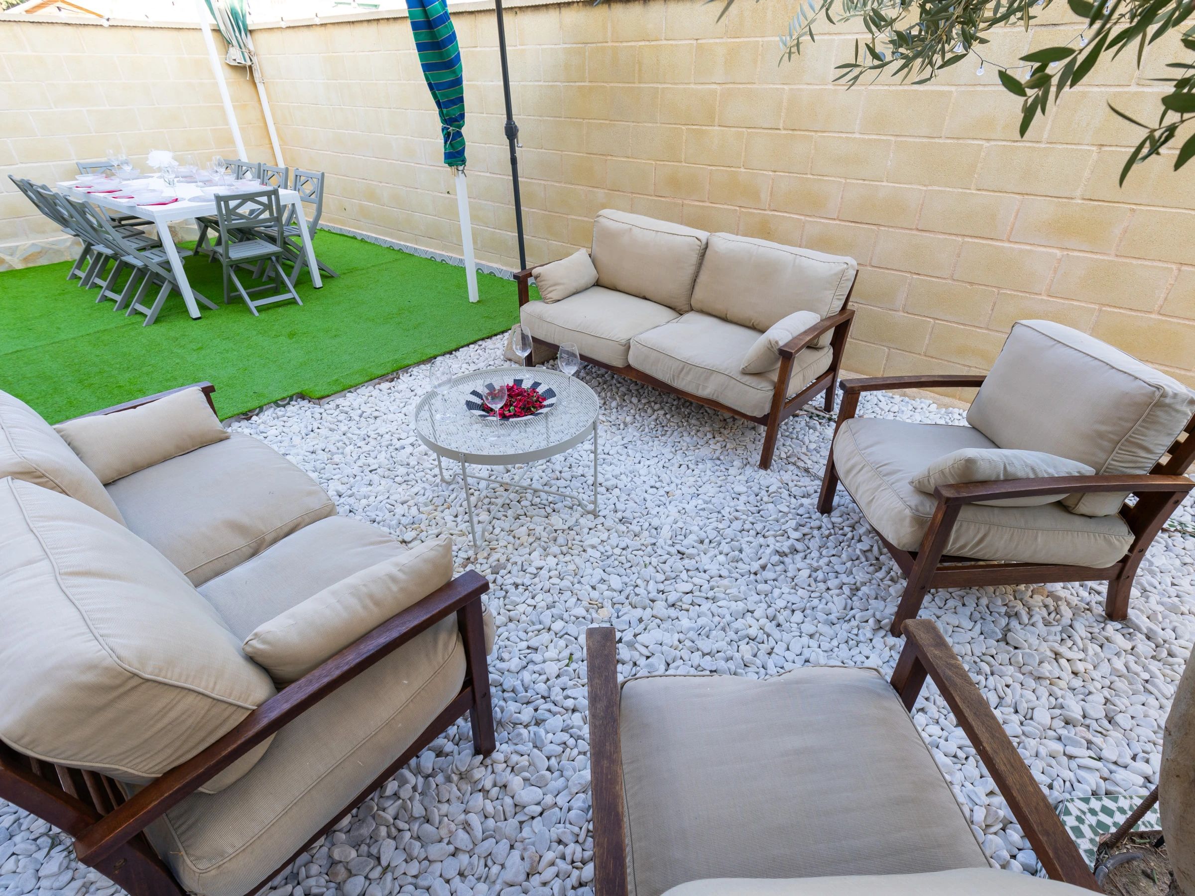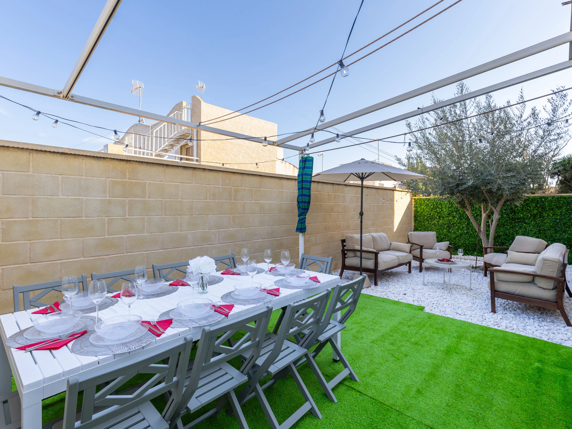 Die Unterkunft verfügt über garten, gartenmöbel, umzäuntes grundstück, 120 m² terrasse, waschmaschine, grill, bügeleisen/-brett, internet (WLAN), haartrockner, balkon, heizung, klimaanlage im wohnzimmer und einigen schlafzimmern, swimming-pool gemeinschaftlicher swimming-pool, parkplatz im freien, 1 Fernseher, radio.
