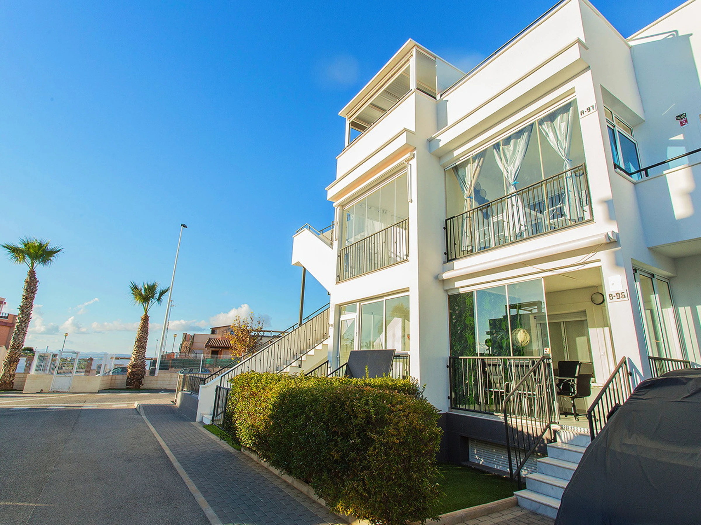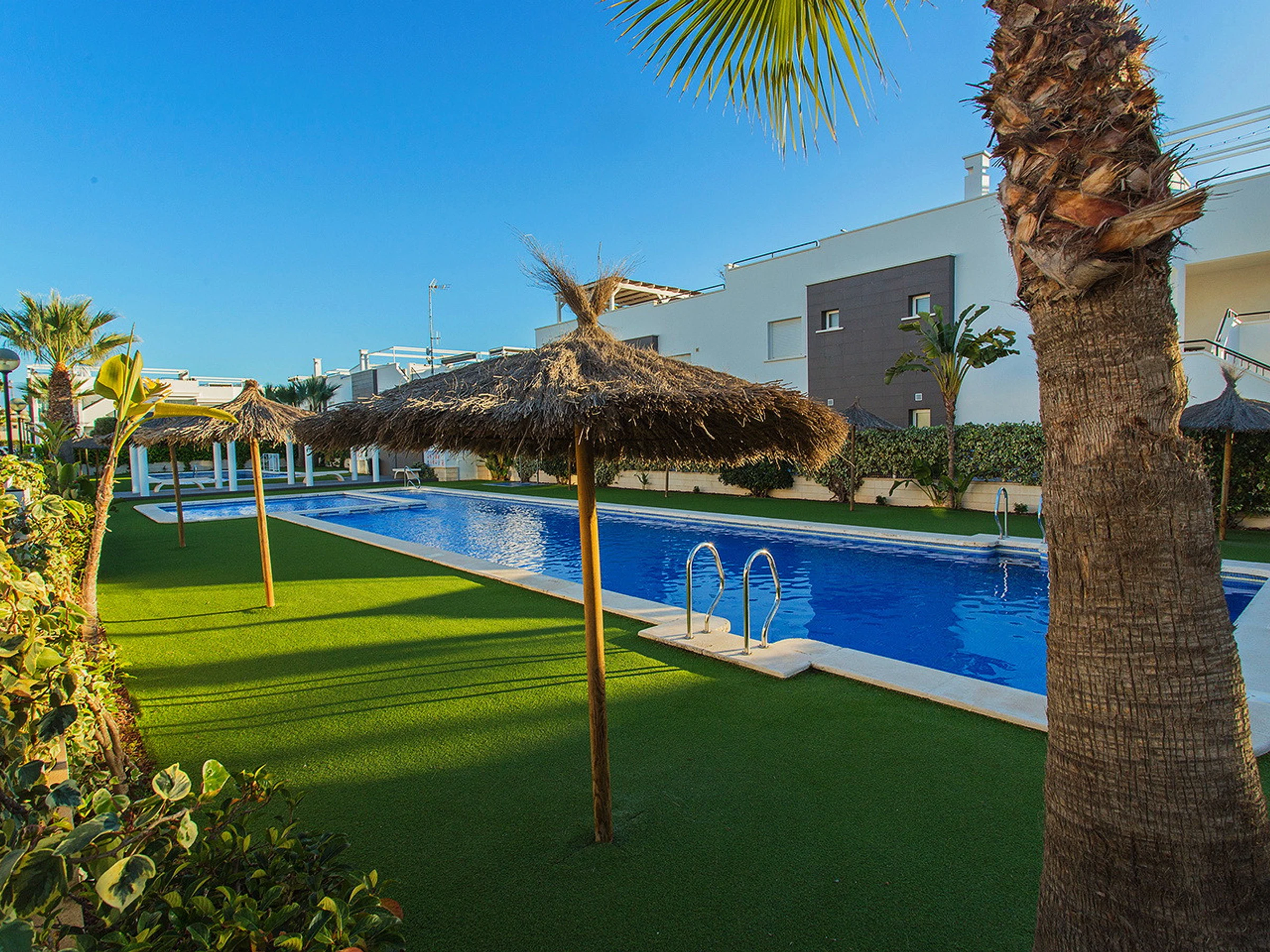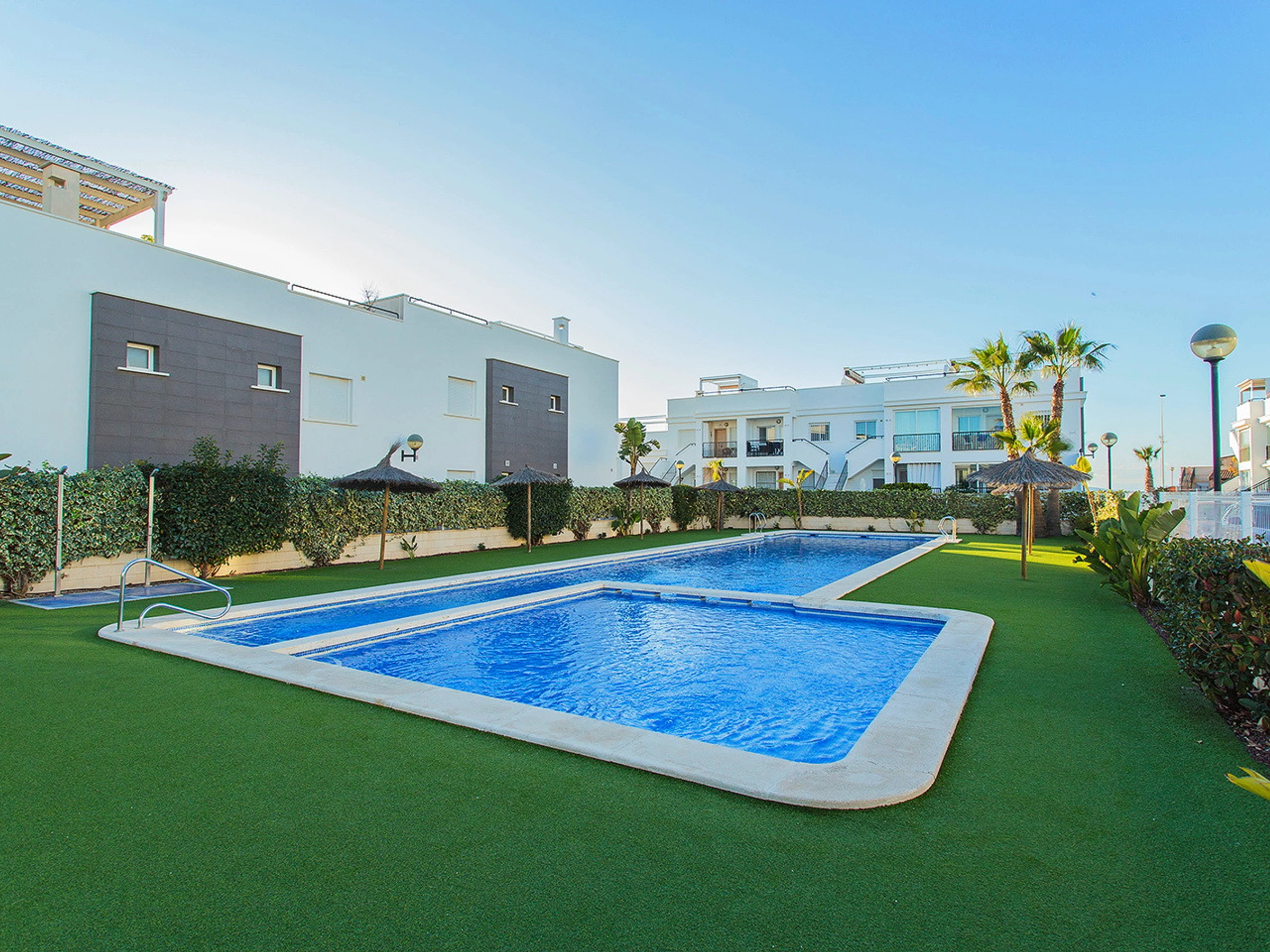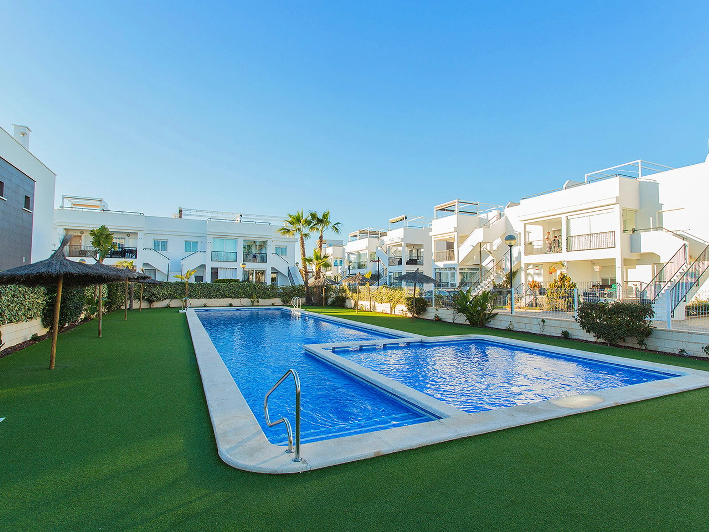 Der Bungalow liegt in einer geschlossenen Wohnanlage und verfügt über einen privaten Parkplatz, der die Sicherheit Ihres Fahrzeugs gewährleistet. Den Bewohnern steht ein großer Gemeinschaftspool zur Verfügung, der sich an sonnigen Tagen ideal zum Entspannen und Abkühlen eignet. Darüber hinaus gibt es einen kleinen Park für Kinder, was ihn zu einem idealen Ort für Familien macht.