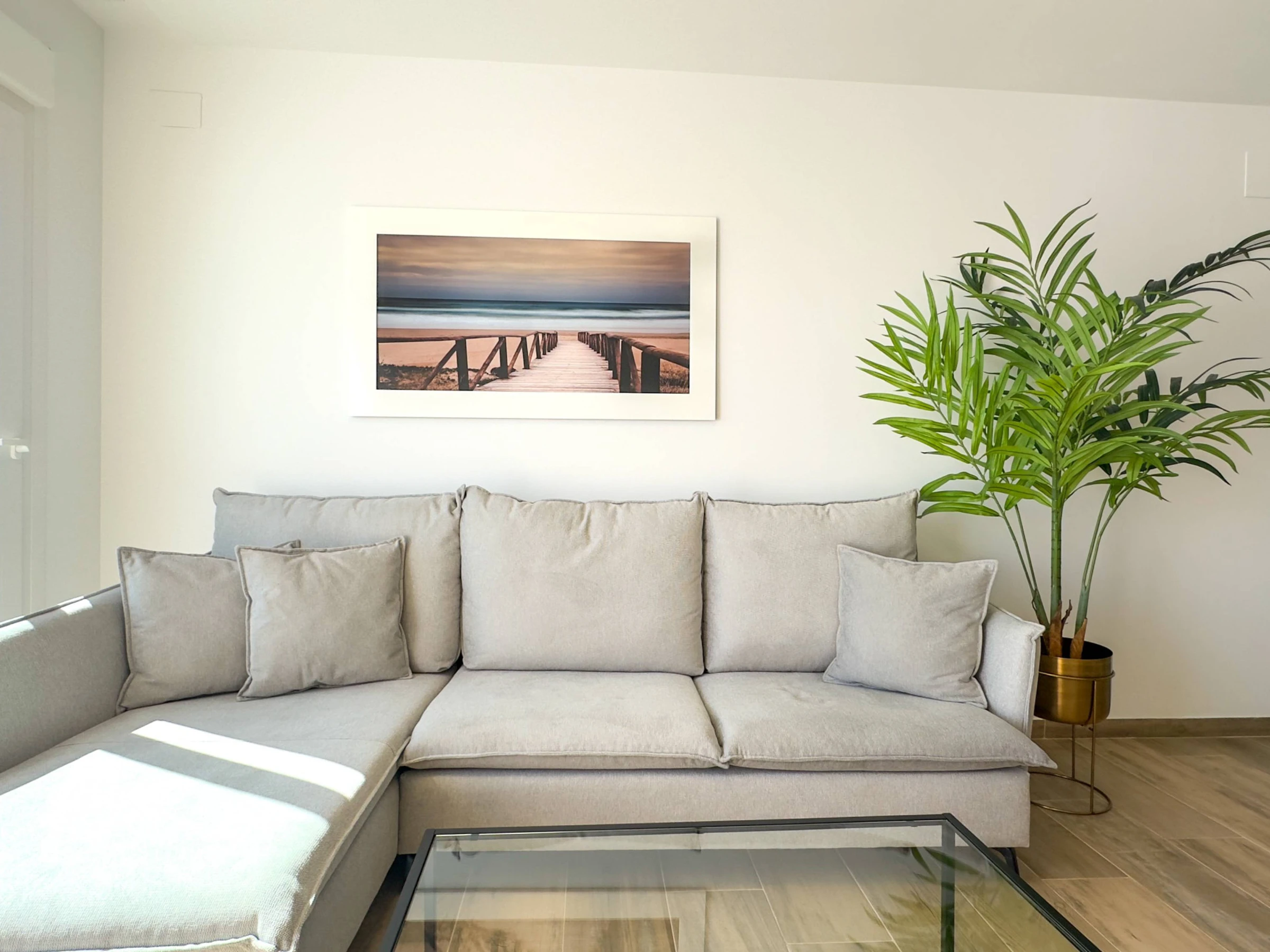 Unterkunft Unterkunft hat 90 m² befindet sichgeschmackvoll ausgestattet und vor kurzem fertiggestellte, mit Blick auf den Strand / das Meer und den Garten.