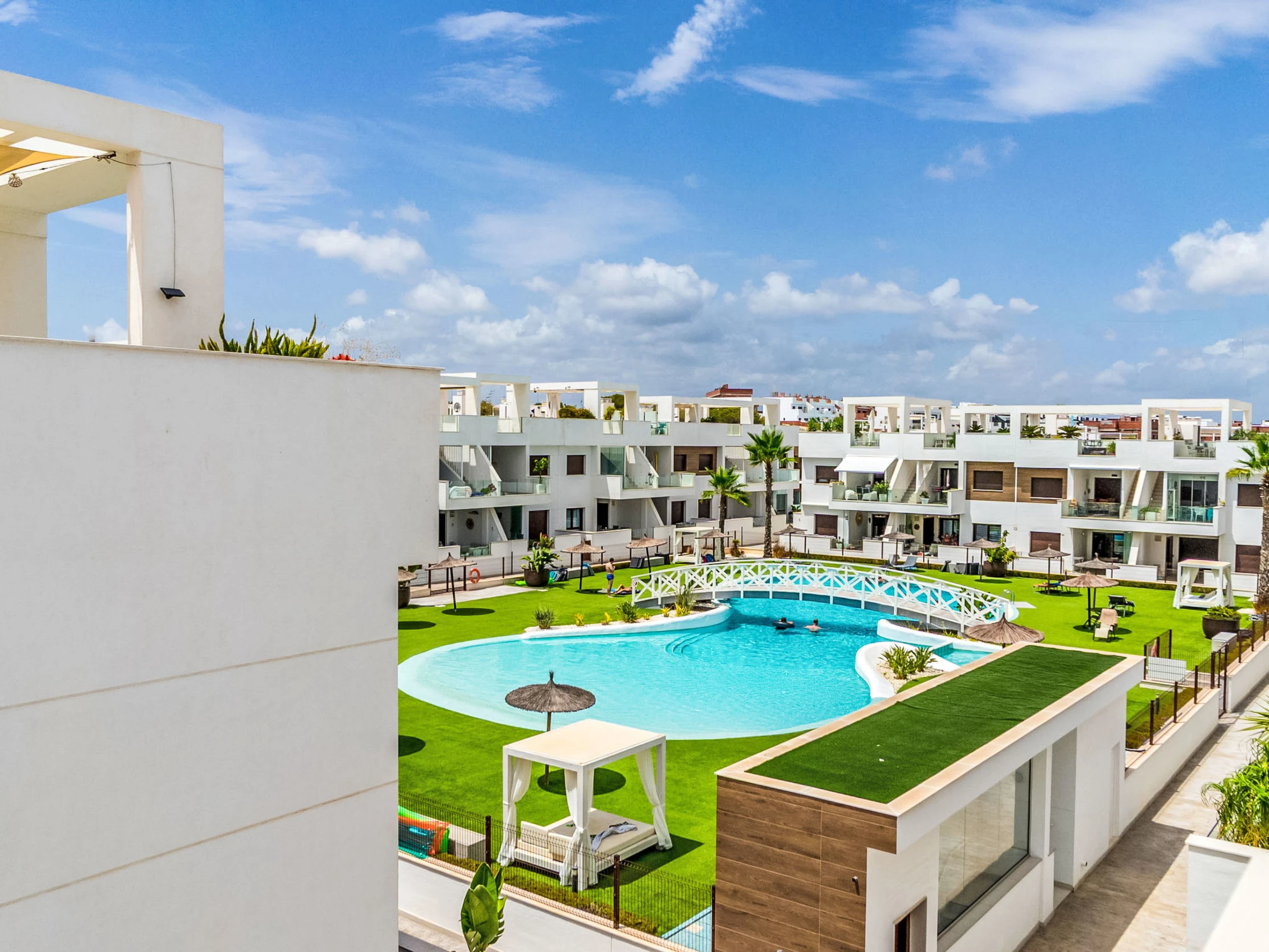 Moderne, schöne Residenz "Laguna Beach Resort", auf 2 Stockwerken. 7 km vom Zentrum von Torrevieja, 5 km vom Zentrum von Punta Prima, 4 km vom Meer, 4 km vom Strand. Zur Mitbenutzung: Grundstück (eingezäunt), Schwimmbad (32 x 14 m, saisonale Verfügbarkeit: [hidden] - [hidden] Kinderbecken, Aussendusche. Im Hause: Dachterrasse. Lebensmittelgeschäft, Supermarkt [hidden] m, Restaurant [hidden] m, Bar [hidden] m, Bushaltestelle [hidden] m, Sandstrand "Playa Punta Prima" 6 km. Sporthafen 6 km, Jacht-Hafen 6 km, Golfplatz (12 Loch) 5 km.