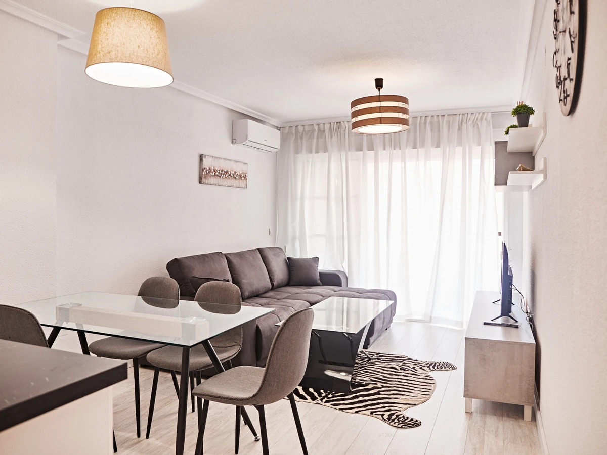 Wir bieten zur Miete eine gemütliche, helle Ein-Zimmer-Wohnung in einer Gegend mit ausgebauter Infrastruktur und nur wenige Gehminuten vom Meer und dem Strand entfernt! Die Wohnung hat eine Fläche von 57 m2 und besteht aus einem Wohnzimmer, einem Schlafzimmer, einer Küche im amerikanischen Stil und einem Badezimmer. Die Wohnung verfügt über alles, was Sie für einen komfortablen Aufenthalt und Entspannung benötigen: neue Möbel, elektrische Haushaltsgeräte (einschließlich Kaffeemaschine und Geschirrspüler), Geschirr, Bettwäsche und Handtücher. Das Wohnzimmer und das Schlafzimmer sind mit einer Klimaanlage ausgestattet und es gibt einen großzügigen Balkon. Das Haus verfügt über einen Swimmingpool. Spanisches Fernsehen. Das Gebiet verfügt über eine gut ausgebaute Infrastruktur. Im Umkreis von 200 Metern finden Sie viele Cafés und Bars. Der Supermarkt der Konsum-Kette ist 80 Meter entfernt und die 24-Stunden-Apotheke ist 150 Meter entfernt. Das Meer und der beliebte Stadtstrand von Del Cura sind nur 300 Meter entfernt! Unterkunftsmöglichkeit – bis zu vier Personen (keine Tiere!). Rauchen ist nur auf dem Balkon gestattet! Die Miete für ein Babybett und einen Hochstuhl kostet 20 Euro pro Aufenthalt.