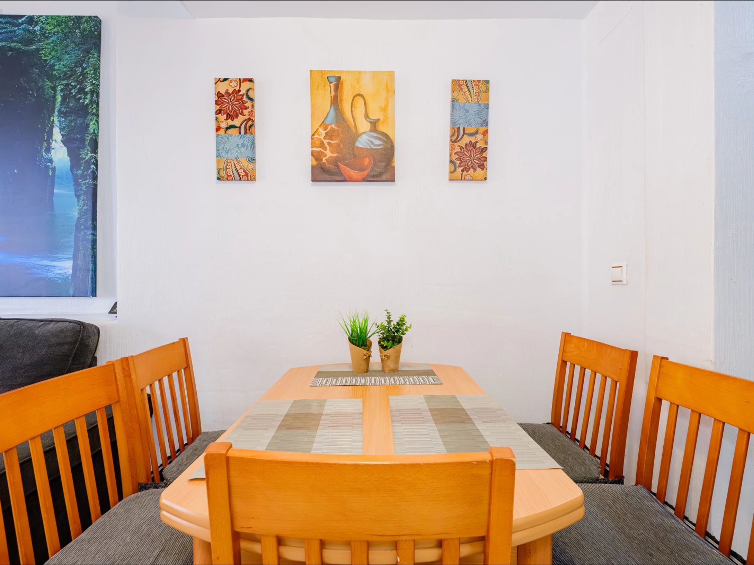 Wir bieten zur Miete eine Wohnung im Komplex Atalayas III in der Nähe des Strandes Los Locos an. Die Wohnung hat eine Fläche von 85 m2 und besteht aus einem Wohnzimmer, zwei Schlafzimmern, einer Küche im amerikanischen Stil, zwei Badezimmern und einem Balkon mit Blick auf die Stadt und das Meer. Die Apartments verfügen über alles, was Sie zum Wohnen und Entspannen benötigen: Möbel und Elektrogeräte, Geschirr, Bettwäsche und Handtücher. Zentrale Klimaanlage. Spanisches Fernsehen, WLAN. Der Komplex verfügt über eine eigene Grünfläche mit einem Swimmingpool für Erwachsene und Kinder. Das Meer und der Strand Los Locos sind 200 Meter entfernt. Der Consum-Supermarkt ist zu Fuß erreichbar und an der Küste gibt es viele Bars und Restaurants. Unterkunftsmöglichkeit – bis zu 4 Personen (keine Tiere!). Rauchen ist nur auf dem Balkon gestattet! Die Miete eines Babybetts und Hochstuhls kostet für die gesamte Aufenthaltsdauer 20 Euro. Der Check-in in der Unterkunft erfolgt von 15:00 bis 19:00 Uhr. Der Check-out erfolgt von 09:00 bis 11:00 Uhr. Für den Check-in oder Check-out außerhalb der Betriebs-/Bürozeiten, an Sonn-, Wochenenden und Feiertagen wird eine zusätzliche Gebühr von 20 Euro erhoben. Bürozeiten: Montag – Freitag von 9:00 bis 19:00 Uhr, Samstag von 10:00 bis 15:00 Uhr, Sonntag – geschlossen.