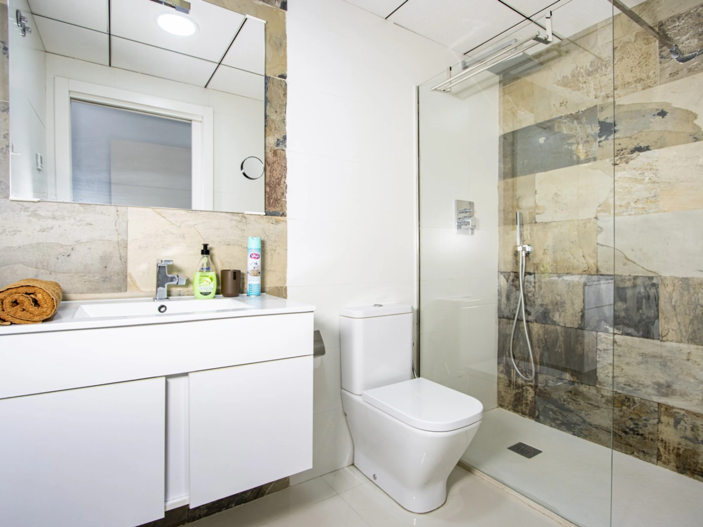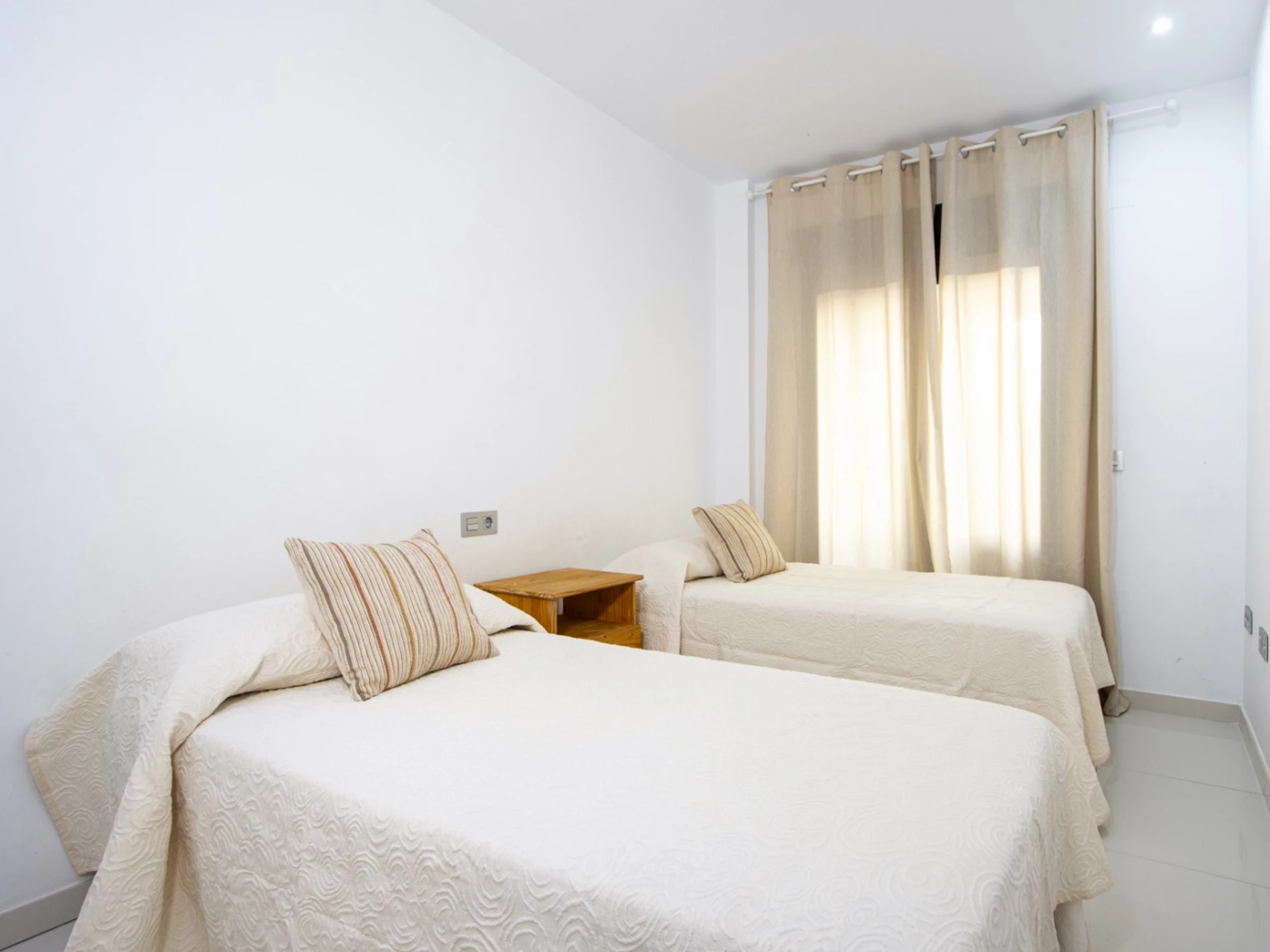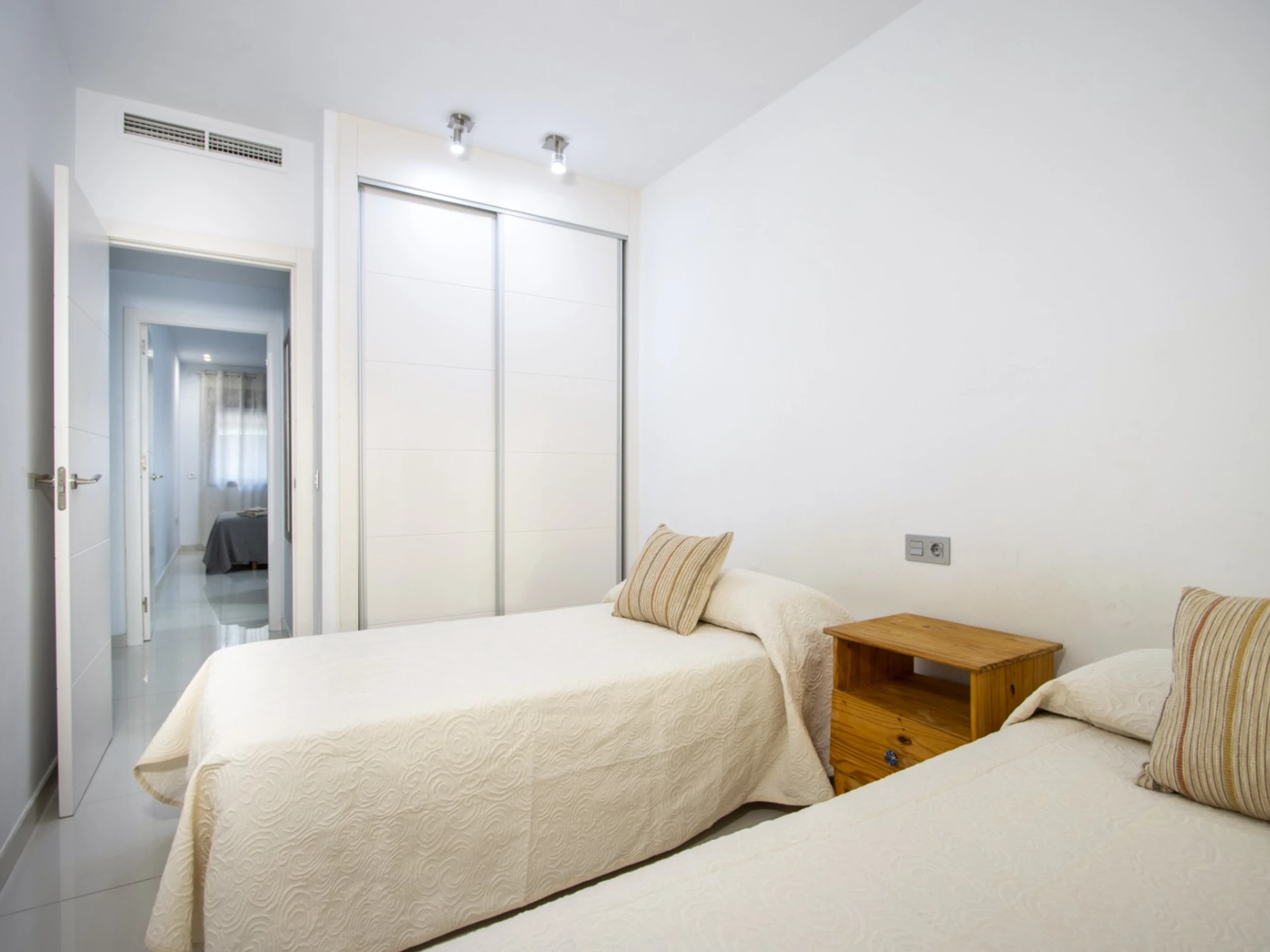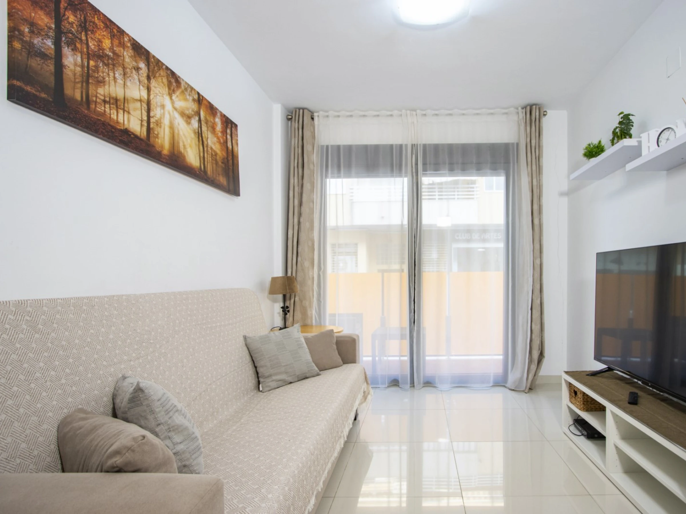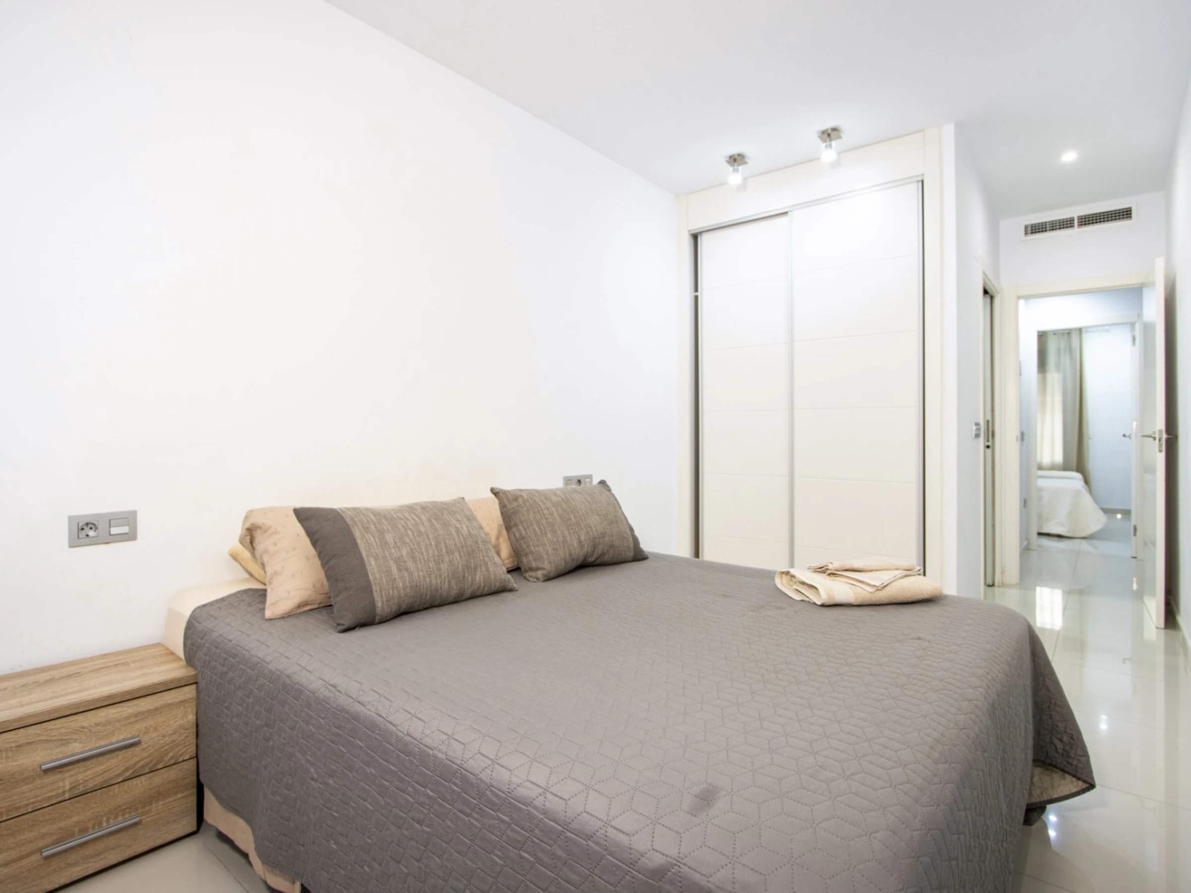 Zwei-Zimmer-Wohnung zur Miete im modernen Komplex „Residencial Alegría 1“. Die Wohnfläche beträgt 74 m2, besteht aus zwei Schlafzimmern, einem geräumigen Wohnzimmer, einer Küche im amerikanischen Stil, zwei Badezimmern, einer Terrasse mit Blick auf den Pool und einem Balkon. Die Wohnung verfügt über alles, was Sie für einen komfortablen Aufenthalt und Entspannung benötigen: neue Möbel, elektrische Haushaltsgeräte (einschließlich Geschirrspüler und Kaffeemaschine), zentrale Klimaanlage, Geschirr, Bettwäsche und Handtücher. Spanisches Fernsehen. Es gibt einen Parkplatz. Zu Ihrer Verfügung stehen ein Meerwasserschwimmbad und Whirlpool, eine Sauna, Sport- und Kinderspielplätze, ein Solarium und ein Grillplatz im Obergeschoss. Saunaleistungen werden gesondert vergütet. Das Gebiet verfügt über eine gut ausgebaute Infrastruktur: In fußläufiger Entfernung gibt es einen Konsum-Supermarkt, Bars und Restaurants sowie eine Apotheke. 7-10 Minuten zu Fuß zum Meer. Unterkunftsmöglichkeit - bis zu 6 Personen (keine Tiere!). Rauchen ist nur auf dem Balkon gestattet!