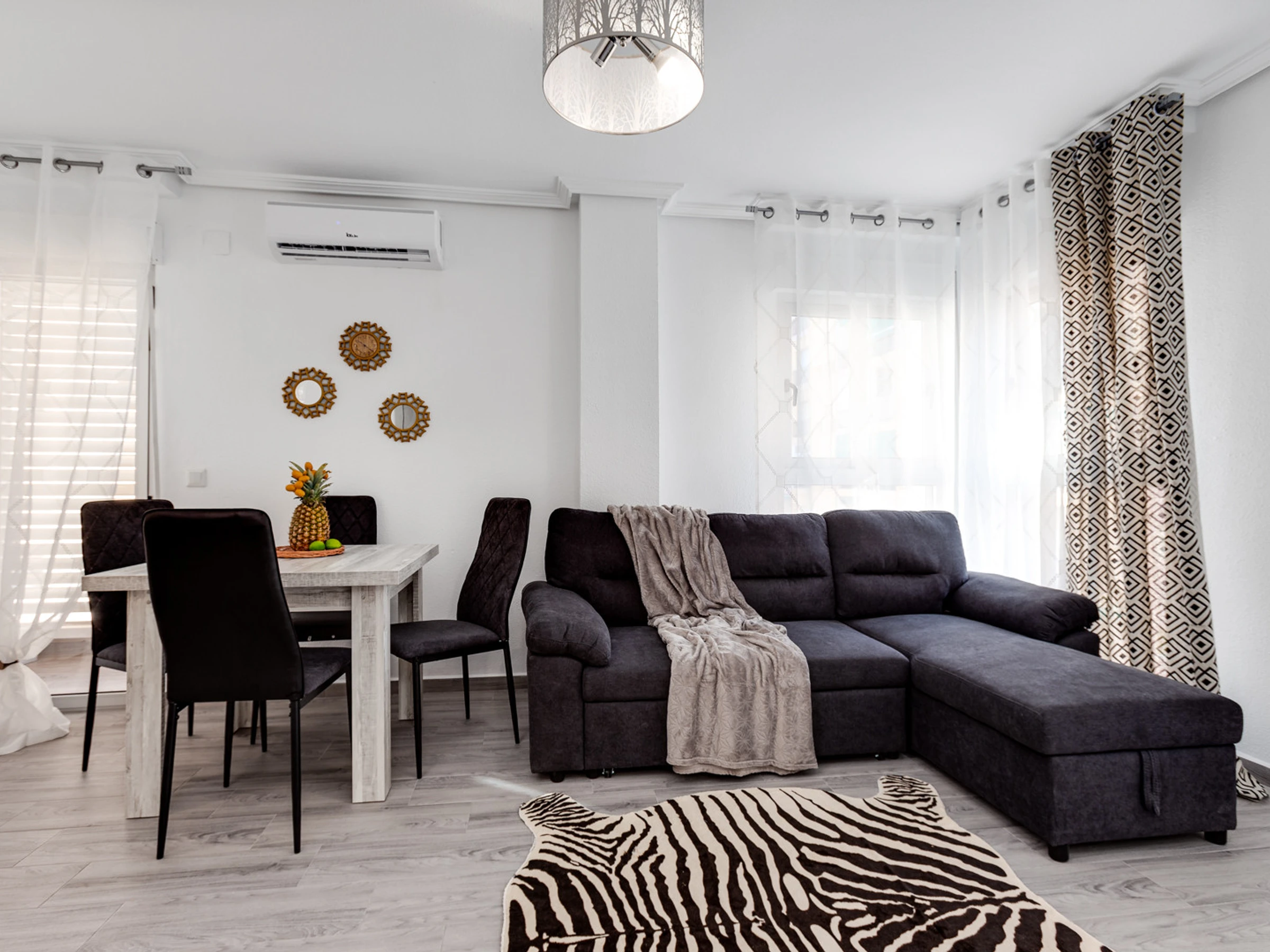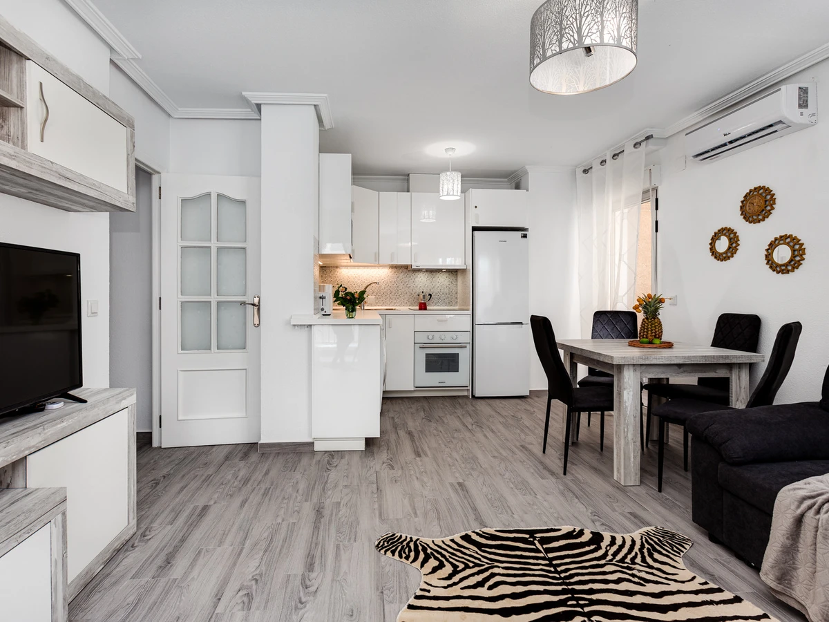 Wir vermieten eine Wohnung mit einem Schlafzimmer nach einer kompletten Renovierung nur wenige Gehminuten von zwei Stadtstränden entfernt! Die 46 m2 große Wohnung besteht aus einem Wohnzimmer, einem Schlafzimmer, einer amerikanischen Küche, einem Badezimmer und einem Balkon. Die Wohnung verfügt über alles, was Sie für einen komfortablen Aufenthalt und Erholung benötigen: Möbel, Haushaltsgeräte (einschließlich Geschirrspüler), Geschirr, Bettwäsche und Handtücher. Der Salon verfügt über eine Klimaanlage. Spanisches Fernsehen (Smart TV), drahtloses Internet. Der Balkon ist mit Gartenmöbeln ausgestattet. Das Gebiet verfügt über eine gut ausgebaute Infrastruktur. Der Supermarkt "Consum" ist weniger als 200 Meter entfernt. Russisches Lebensmittelgeschäft nur hundert Meter entfernt! Zu Fuß erreichbar sind viele Bars und Restaurants, eine Apotheke. Der Strand von Los Locos ist 350 Meter entfernt, der Strand von Del Cura etwa 550 Meter. Übernachtungsmöglichkeit - bis zu 4 Personen (keine Tiere!). Rauchen ist nur auf dem Balkon erlaubt!