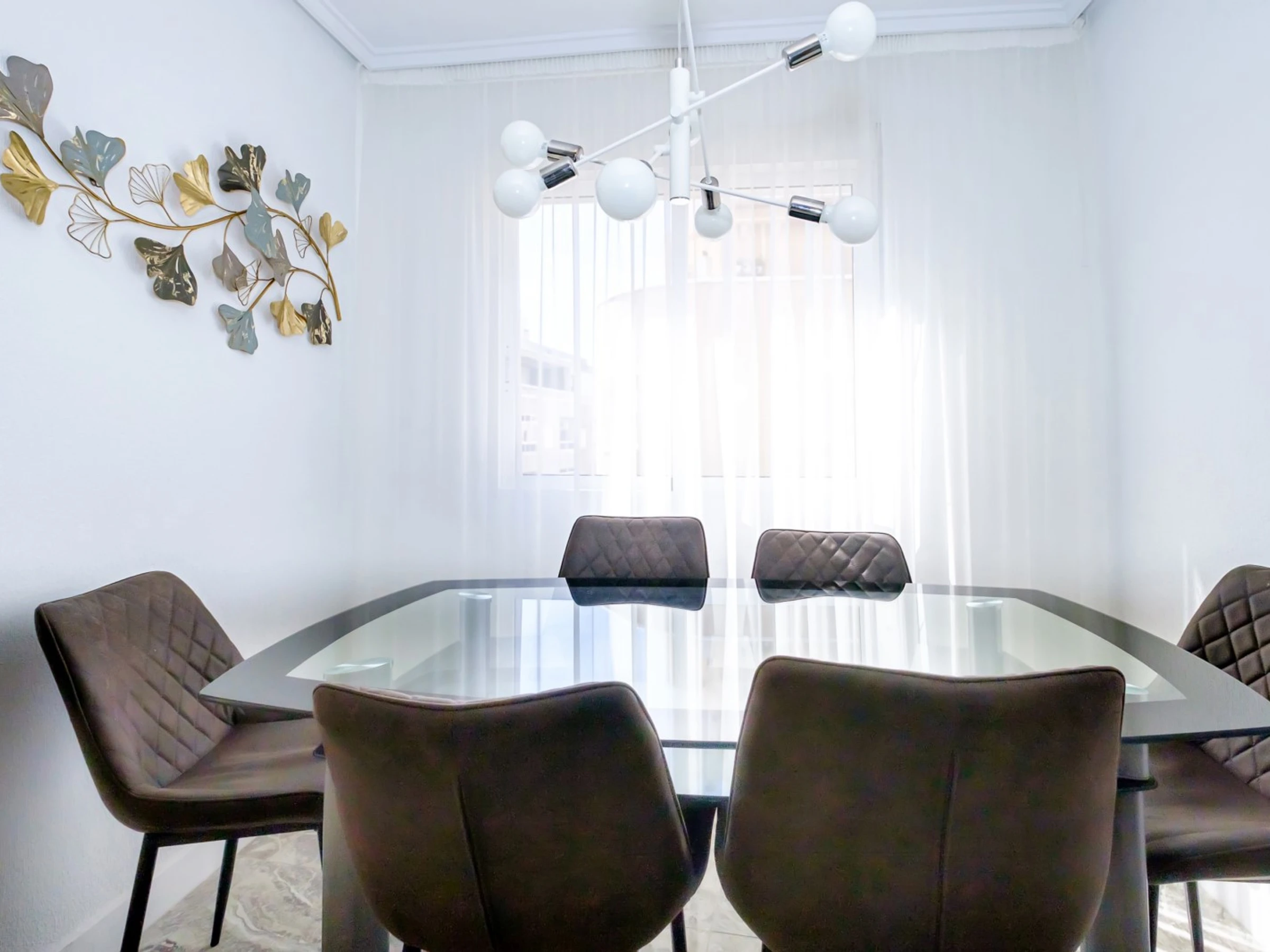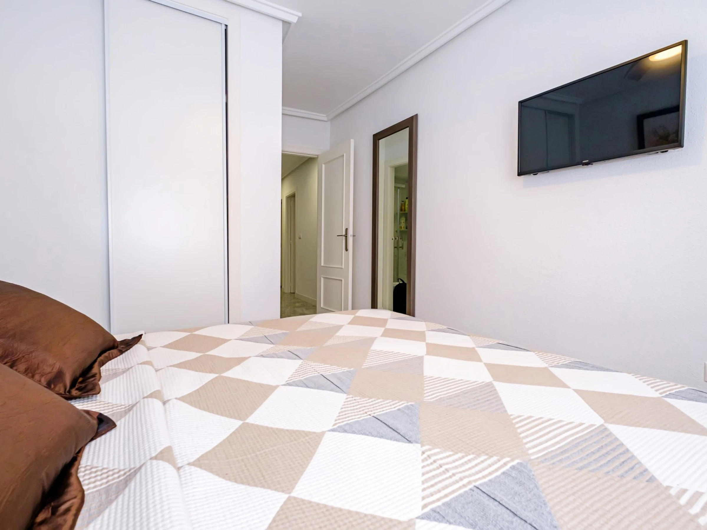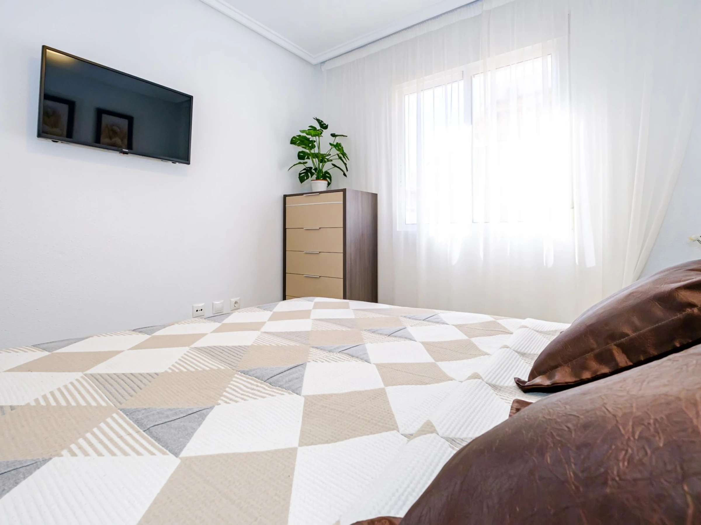 Wir bieten zur touristischen Miete eine Wohnung mit drei Schlafzimmern in einem Gebäude mit Swimmingpool in einem Gebiet mit entwickelter Infrastruktur an. Die Wohnung von 96 m2 besteht aus einem geräumigen Wohnzimmer, drei Schlafzimmern, zwei Badezimmern, einer separaten Küche, einem Balkon und einer Terrasse mit Sonnendach. Die Wohnung verfügt über alles, was Sie für einen komfortablen Aufenthalt und Erholung benötigen: Möbel, Haushaltsgeräte (einschließlich Geschirrspüler und Kaffeemaschine), Geschirr, Bettwäsche und Handtücher. Der Balkon ist mit Gartenmöbeln ausgestattet. Im Salon und allen Schlafzimmern ist eine Klimaanlage installiert. Spanisches Fernsehen (3 Fernseher), WLAN. Das Gebiet verfügt über eine gut ausgebaute Infrastruktur: weniger als 200 Meter zu den Supermärkten Mercadona und Konsum, etwa 400 Meter zum russischen Geschäft Kalinka und 250 Meter zum Busbahnhof. Die nächste Bar ist nur 10 Meter entfernt und viele andere Restaurants und Bars sind zu Fuß erreichbar. Das Meer und der beliebte Stadtstrand von Del Cura sind 800 Meter entfernt. Übernachtungsmöglichkeit - bis zu 6 Personen (keine Tiere!). Das Rauchen ist nur auf der Terrasse erlaubt!