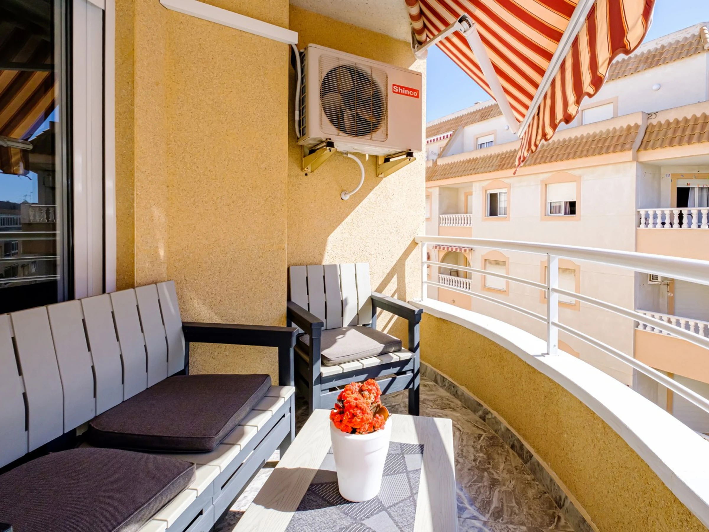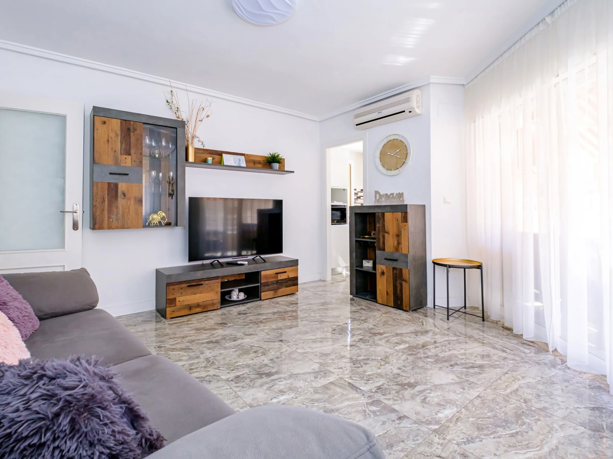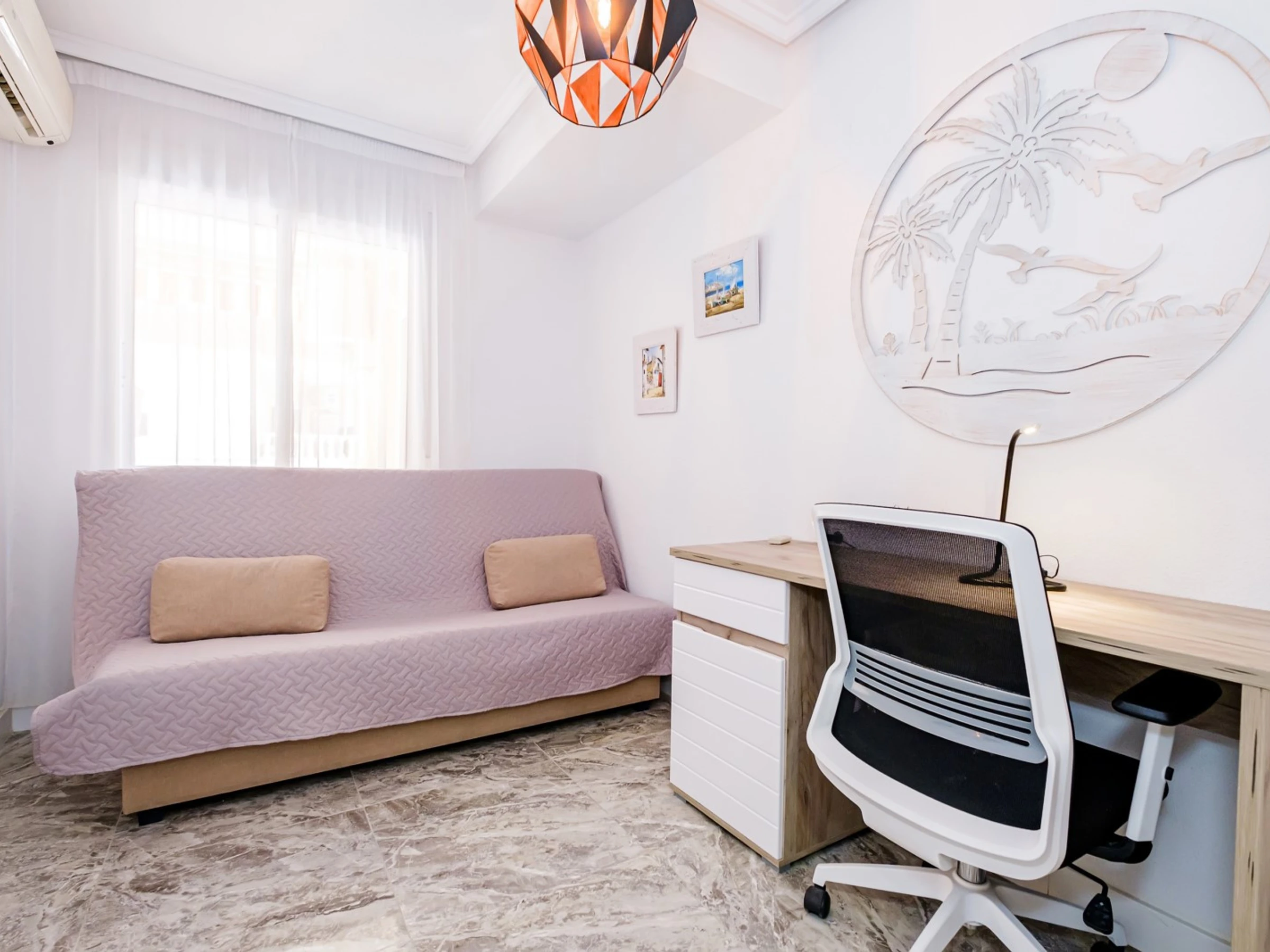 Wir bieten zur touristischen Miete eine Wohnung mit drei Schlafzimmern in einem Gebäude mit Swimmingpool in einem Gebiet mit entwickelter Infrastruktur an. Die Wohnung von 96 m2 besteht aus einem geräumigen Wohnzimmer, drei Schlafzimmern, zwei Badezimmern, einer separaten Küche, einem Balkon und einer Terrasse mit Sonnendach. Die Wohnung verfügt über alles, was Sie für einen komfortablen Aufenthalt und Erholung benötigen: Möbel, Haushaltsgeräte (einschließlich Geschirrspüler und Kaffeemaschine), Geschirr, Bettwäsche und Handtücher. Der Balkon ist mit Gartenmöbeln ausgestattet. Im Salon und allen Schlafzimmern ist eine Klimaanlage installiert. Spanisches Fernsehen (3 Fernseher), WLAN. Das Gebiet verfügt über eine gut ausgebaute Infrastruktur: weniger als 200 Meter zu den Supermärkten Mercadona und Konsum, etwa 400 Meter zum russischen Geschäft Kalinka und 250 Meter zum Busbahnhof. Die nächste Bar ist nur 10 Meter entfernt und viele andere Restaurants und Bars sind zu Fuß erreichbar. Das Meer und der beliebte Stadtstrand von Del Cura sind 800 Meter entfernt. Übernachtungsmöglichkeit - bis zu 6 Personen (keine Tiere!). Das Rauchen ist nur auf der Terrasse erlaubt!