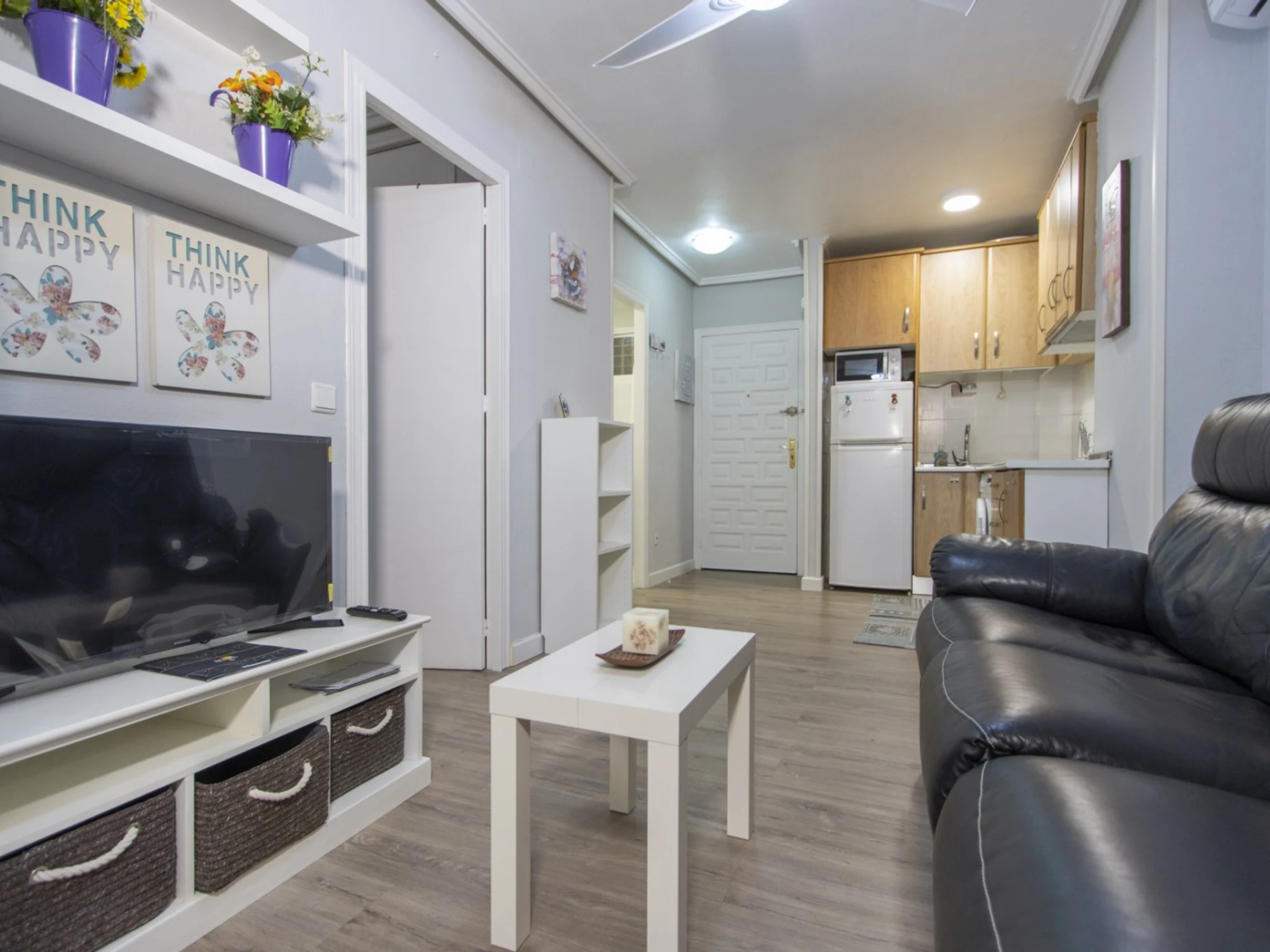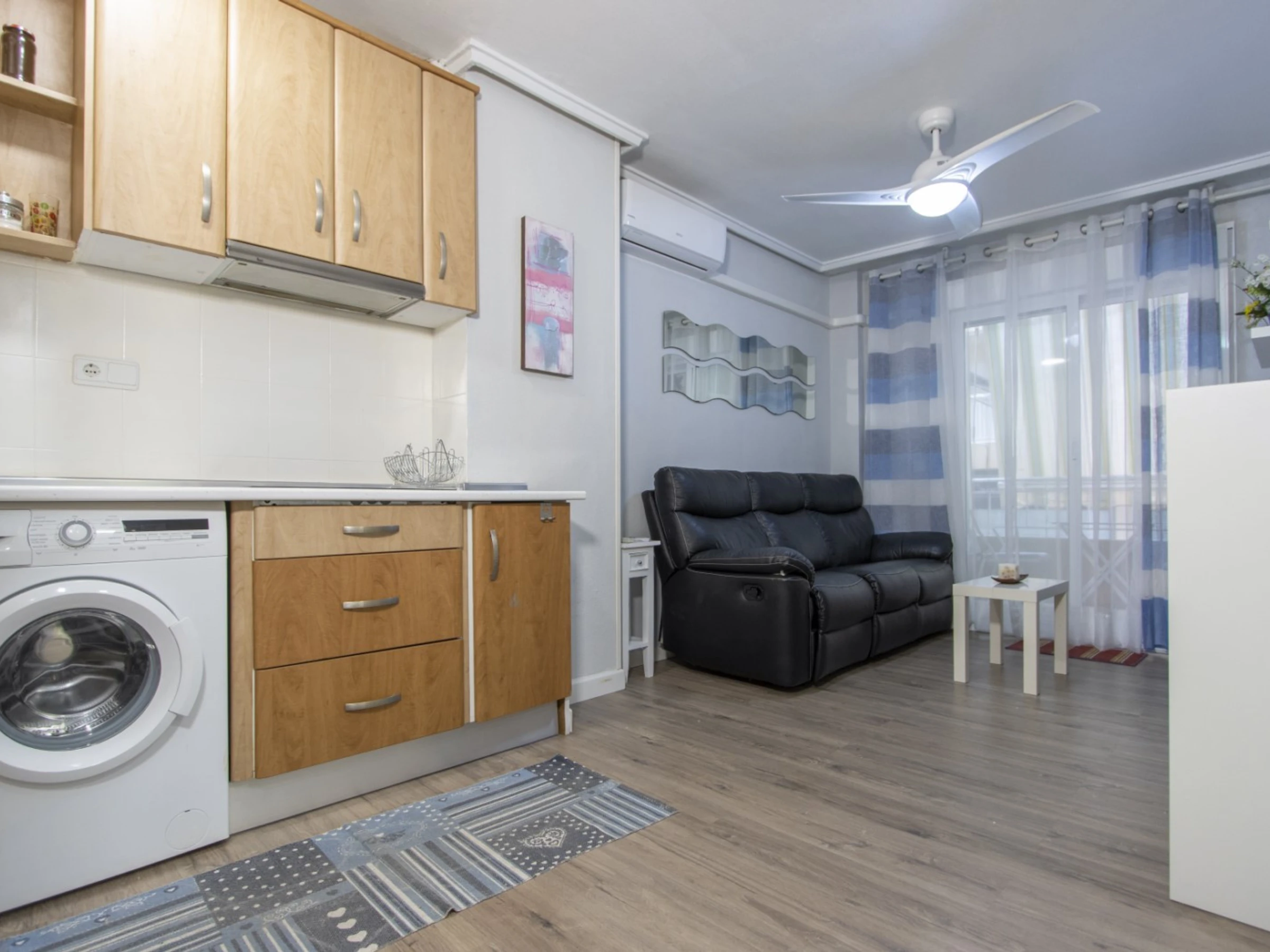 Wir vermieten ein gemütliches Apartment mit einem Schlafzimmer in einem Gebiet mit entwickelter Infrastruktur und nur wenige Gehminuten vom Meer und Strand entfernt! Die 32 m2 große Wohnung besteht aus einem Wohnzimmer, einem Schlafzimmer, einer Küche im amerikanischen Stil, einem Badezimmer und einem Balkon. Die Wohnung hat alles, was Sie für einen angenehmen Aufenthalt und Erholung brauchen: Möbel, Haushaltsgeräte, Geschirr, Bettwäsche und Handtücher. Der Salon ist mit Klimaanlage ausgestattet, der Balkon hat Sommermöbel und einen Sonnenschirm. TV Spanisch, drahtloses Internet. Das Gebiet verfügt über eine gut ausgebaute Infrastruktur. Im Umkreis von 200 Metern gibt es viele Cafés und Bars. Zum Netzsupermarkt „Consum“ 100 Meter, zur 24-Stunden-Apotheke 150 Meter. Das Meer und der beliebte Stadtstrand von Del Cura sind nur 350 Meter entfernt! Übernachtungsmöglichkeit - bis zu zwei Personen (keine Tiere!). Rauchen ist nur auf dem Balkon erlaubt!