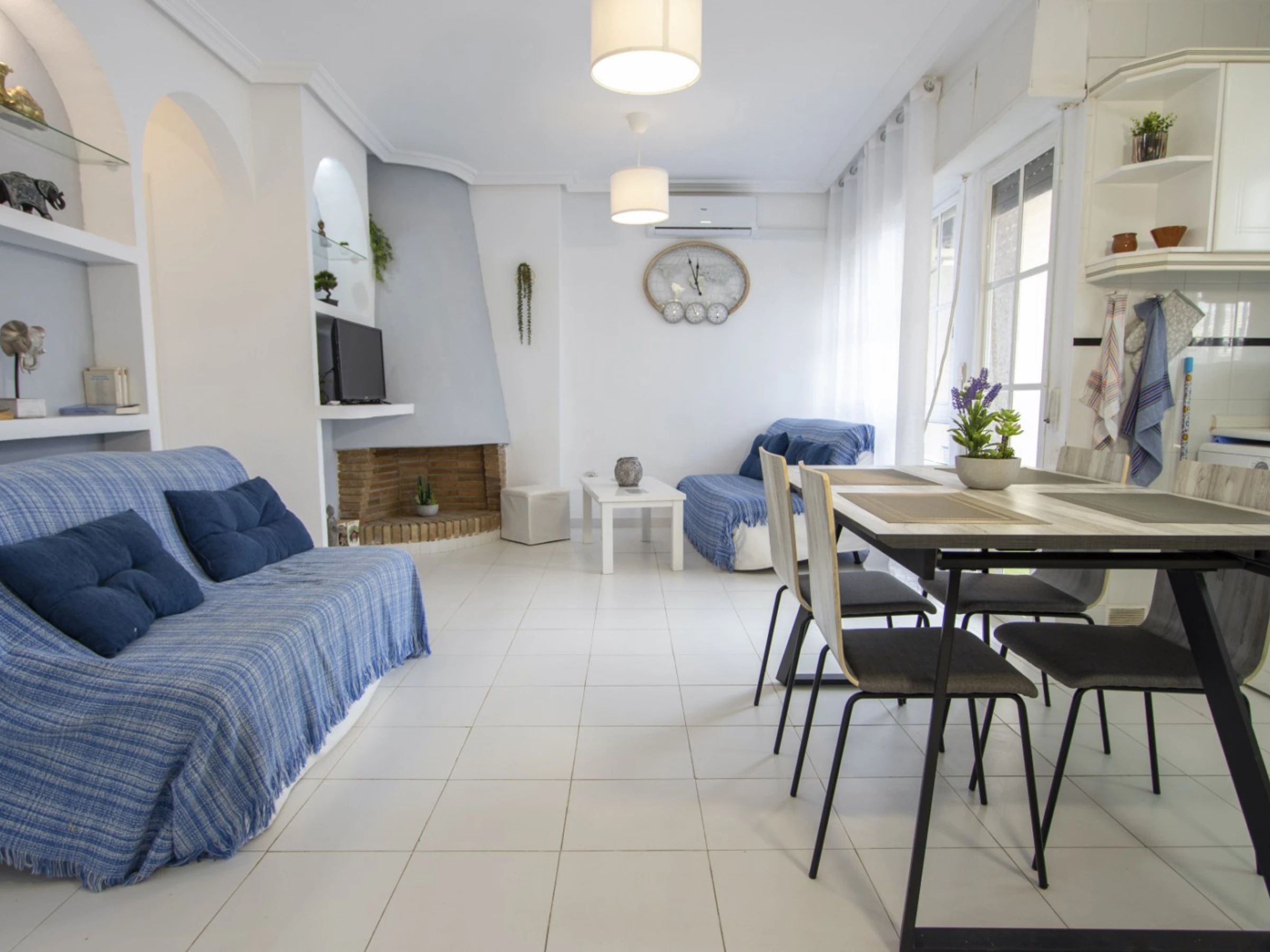Wir bieten zur touristischen Miete eine Maisonette in einer Urbanisation mit Swimmingpool an. Die Wohnung von 50 m2 besteht aus einem Wohnzimmer mit echtem Kamin, drei Schlafzimmern, einer amerikanischen Küche, zwei Badezimmern, einem Balkon und einer Terrasse mit Grill. Es ist alles vorhanden, was man zum Wohnen und Erholen braucht: Möbel, elektrische Haushaltsgeräte (inkl. Kaffeemaschine), Geschirr, Bettwäsche und Handtücher. Der Salon und eines der Schlafzimmer sind klimatisiert. TV Spanisch, drahtloses Internet. In der Nähe des Hauses gibt es immer Platz zum Parken eines Autos. Das Gebiet verfügt über eine gut ausgebaute Infrastruktur. Der Supermarkt Mercadona ist 300 m entfernt. Die nächsten Restaurants befinden sich 200 m entfernt. Der beliebte Strand von La Mata ist etwa einen Kilometer entfernt. Übernachtungsmöglichkeit - bis zu 8 Personen (keine Tiere!). Das Rauchen ist nur auf der Terrasse erlaubt!