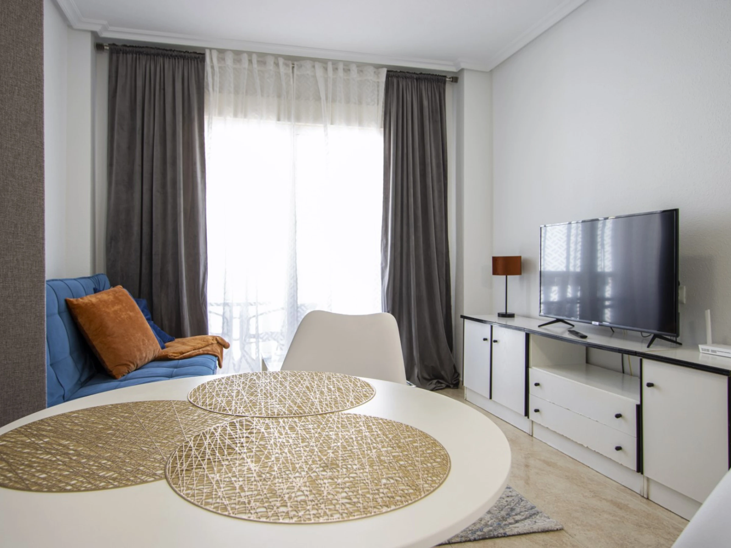 Wir bieten eine gemütliche, helle Wohnung mit einem Schlafzimmer zur touristischen Vermietung an, nur wenige Gehminuten vom Meer und Strand entfernt! Die 39 m2 große Wohnung besteht aus einem Wohnzimmer, 1 Schlafzimmer, einer Küche im amerikanischen Stil, einem Badezimmer und einem Balkon. Die Wohnung ist mit allem ausgestattet, was man zum Wohnen und Erholen braucht: Möbel, Haushaltsgeräte (inkl. Kaffeemaschine), Geschirr, Bettwäsche und Handtücher. Der Balkon ist mit Gartenmöbeln ausgestattet. Im Hauptraum gibt es eine Klimaanlage. TV Spanisch, drahtloses Internet. Das Gebiet verfügt über eine gut ausgebaute Infrastruktur: Der Supermarkt „Konsum“ und das russische Geschäft „Kalinka“ sind 250 Meter entfernt. Viele Bars und Restaurants erreichen Sie bequem zu Fuß. Das Meer und der beliebte Stadtstrand von Del Cura sind nur 150 Meter entfernt! Übernachtungsmöglichkeit - bis zu 4 Personen (keine Tiere!). Rauchen ist nur auf dem Balkon erlaubt!